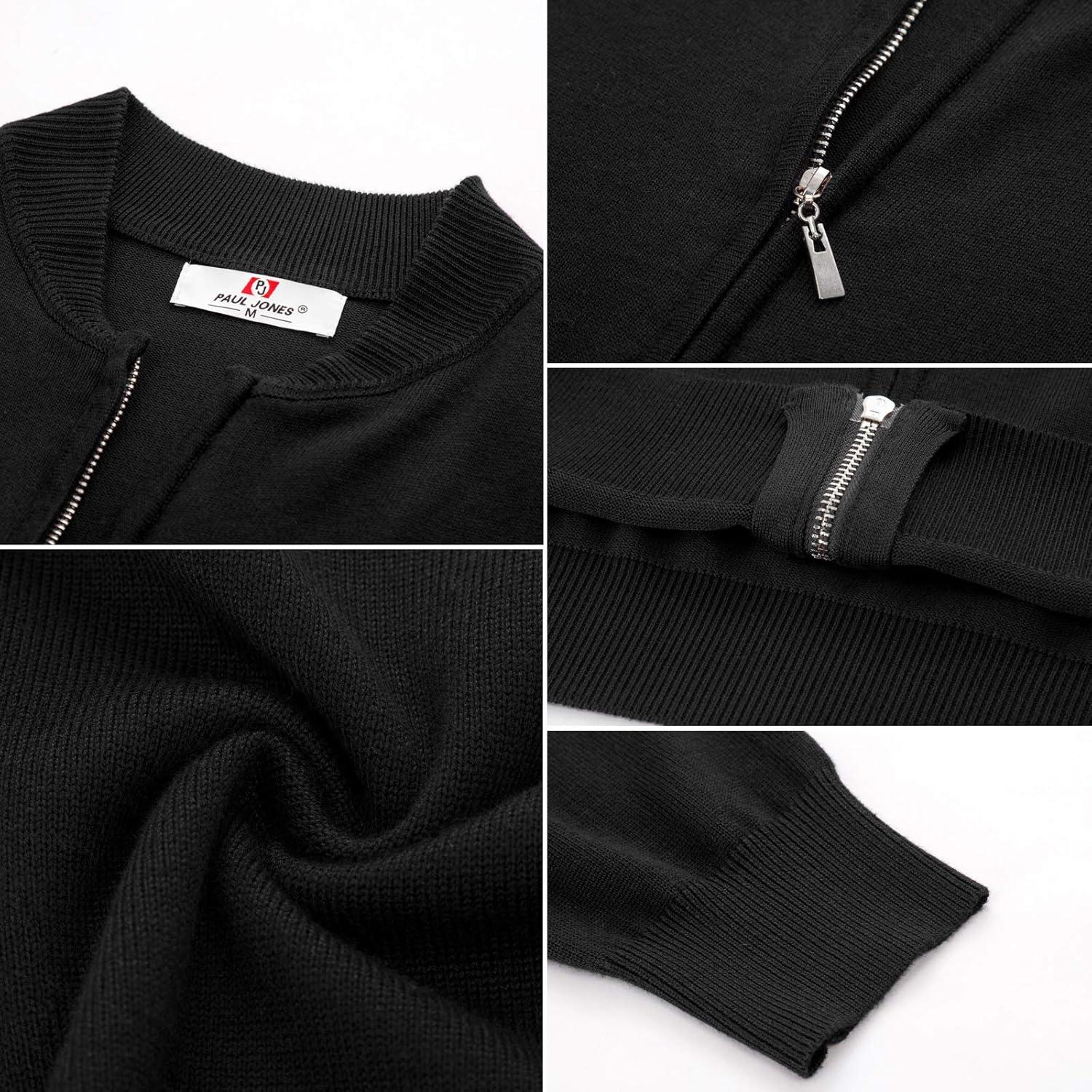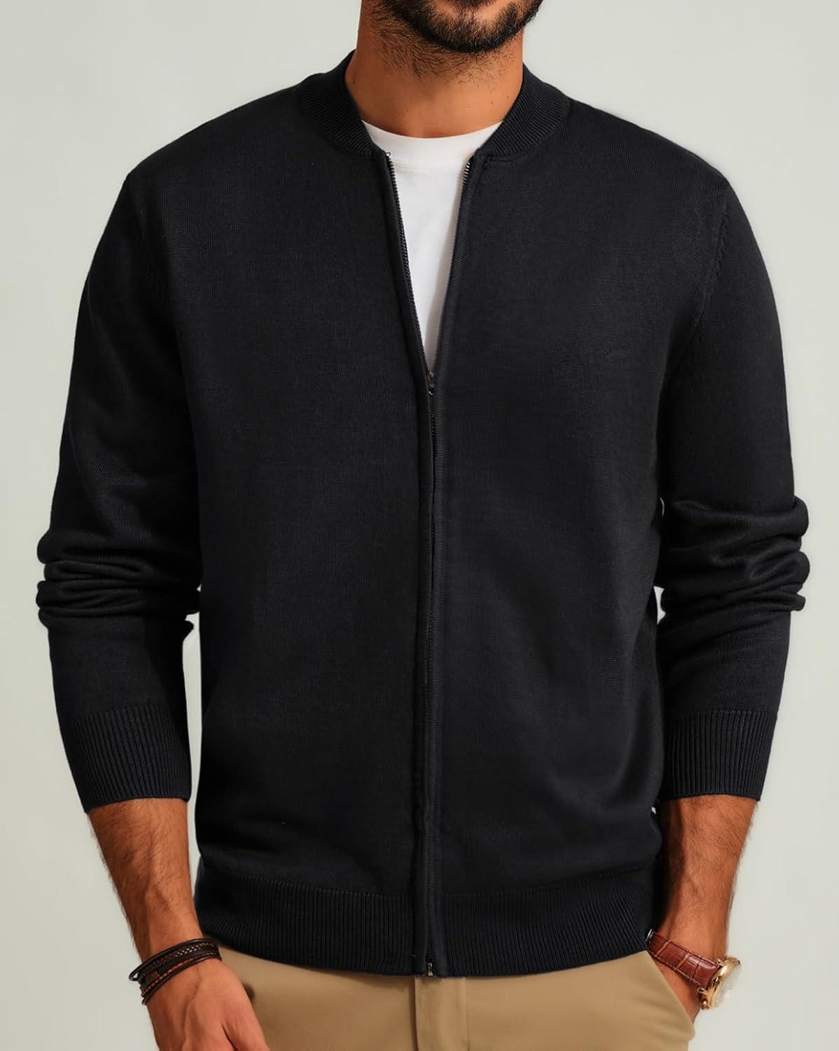 Men’s Casual Full Zip Cardigan Sweater Slim Fit Stand Collar Sweater Jacket(Black)