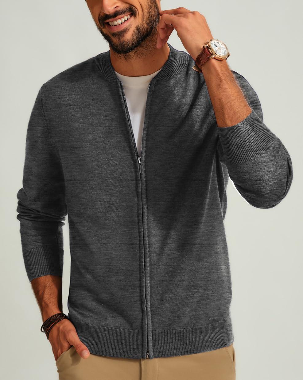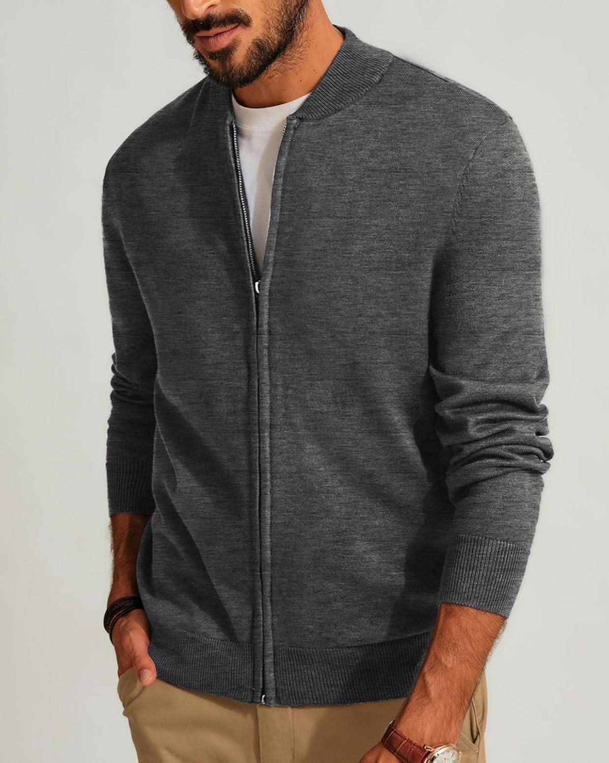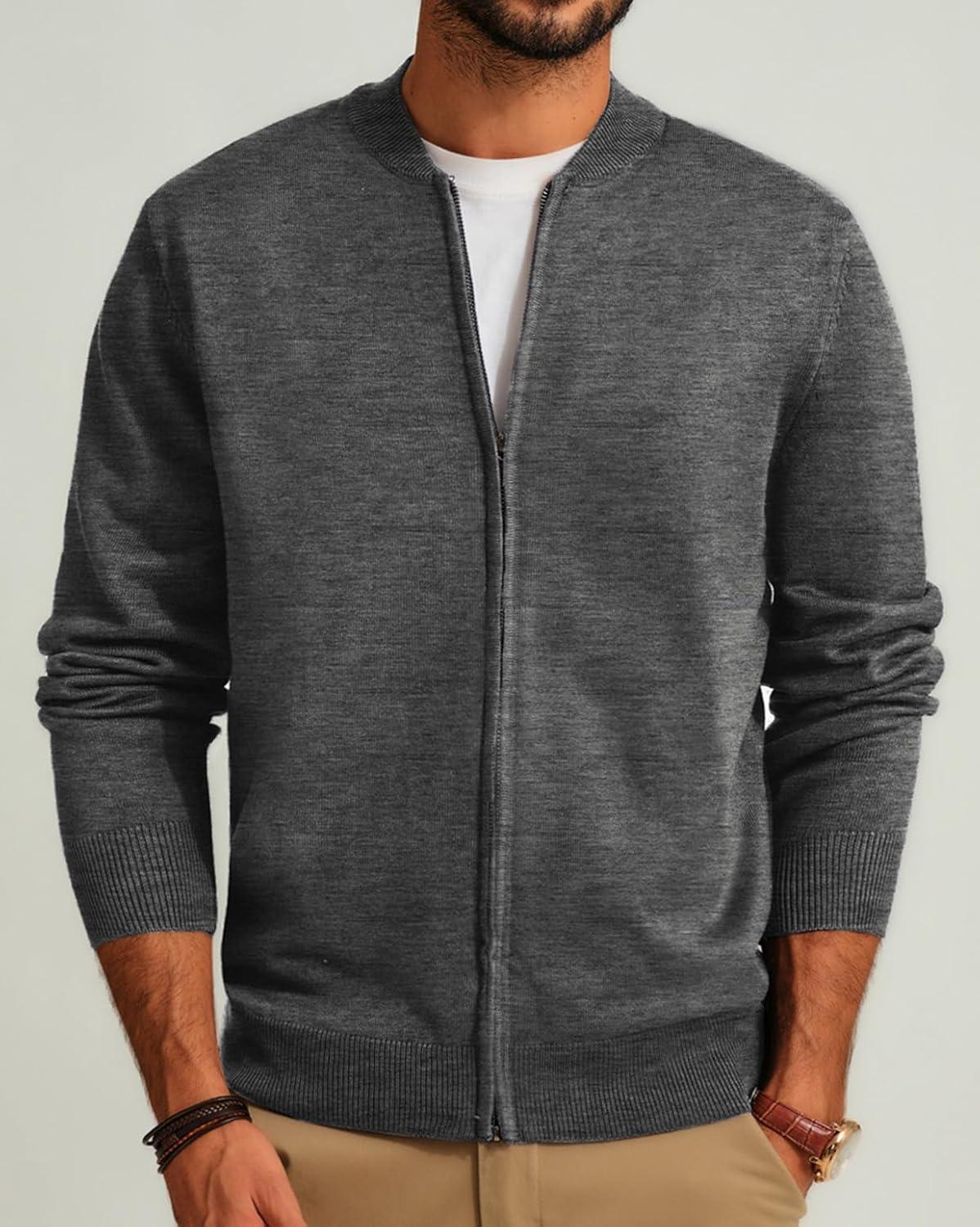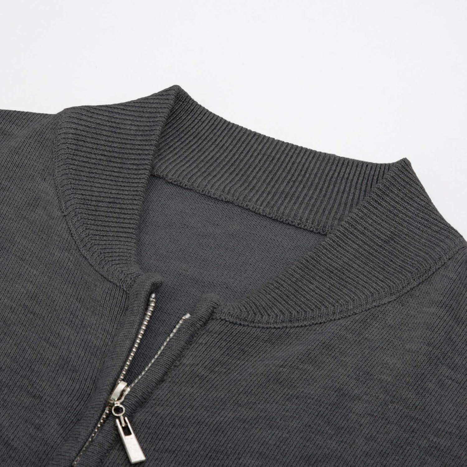 Men’s Casual Full Zip Cardigan Sweater Slim Fit Stand Collar Sweater Jacket(Dark Grey)