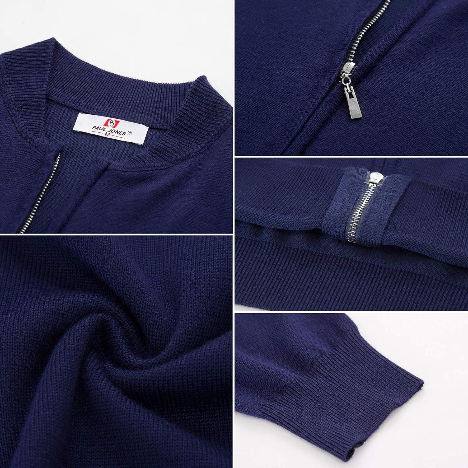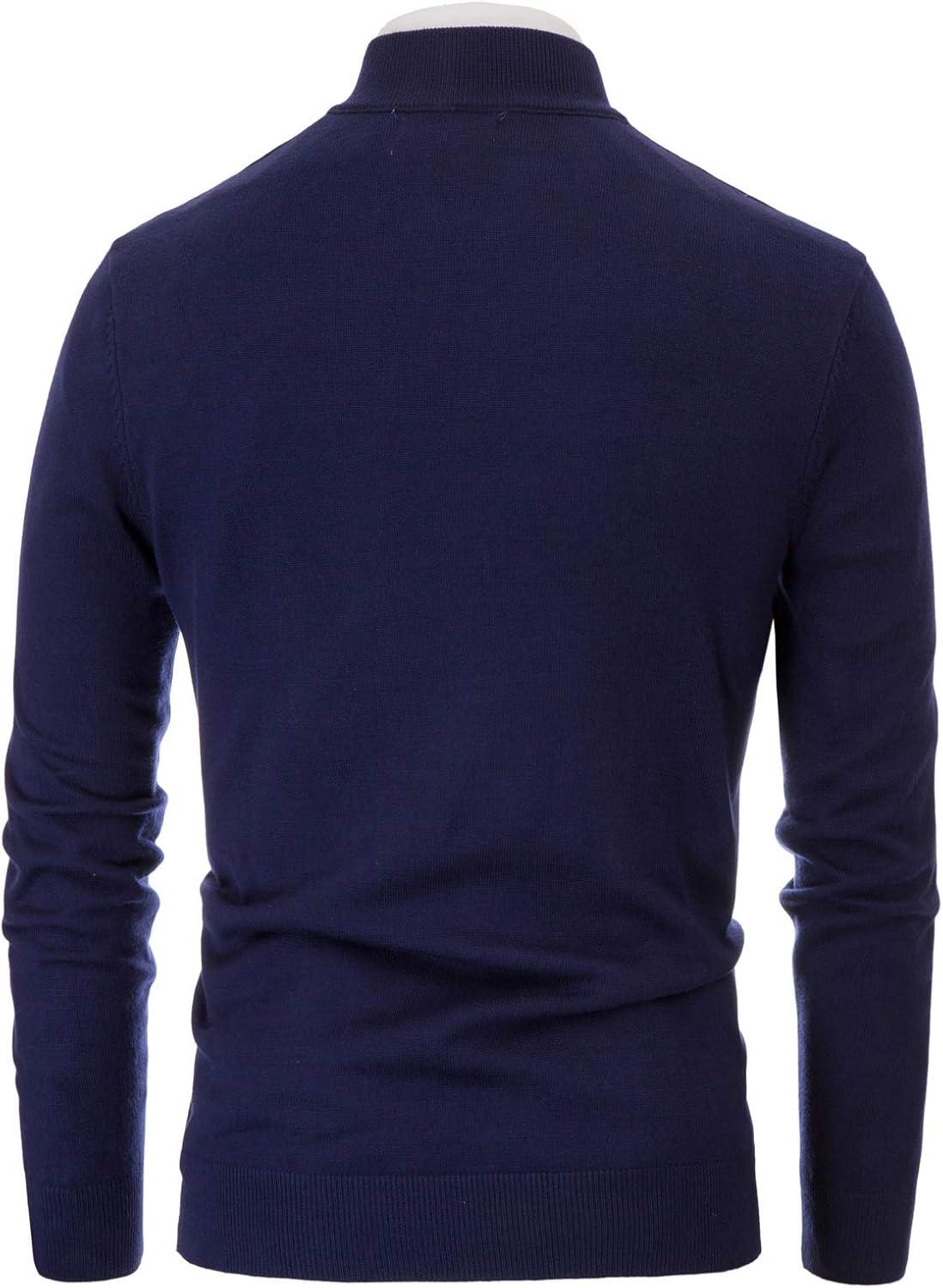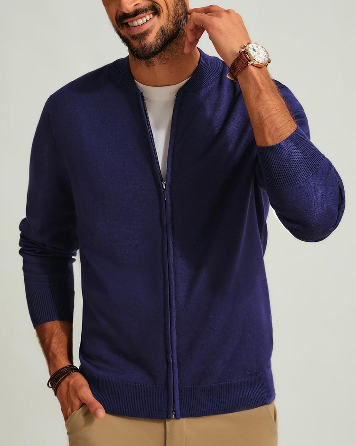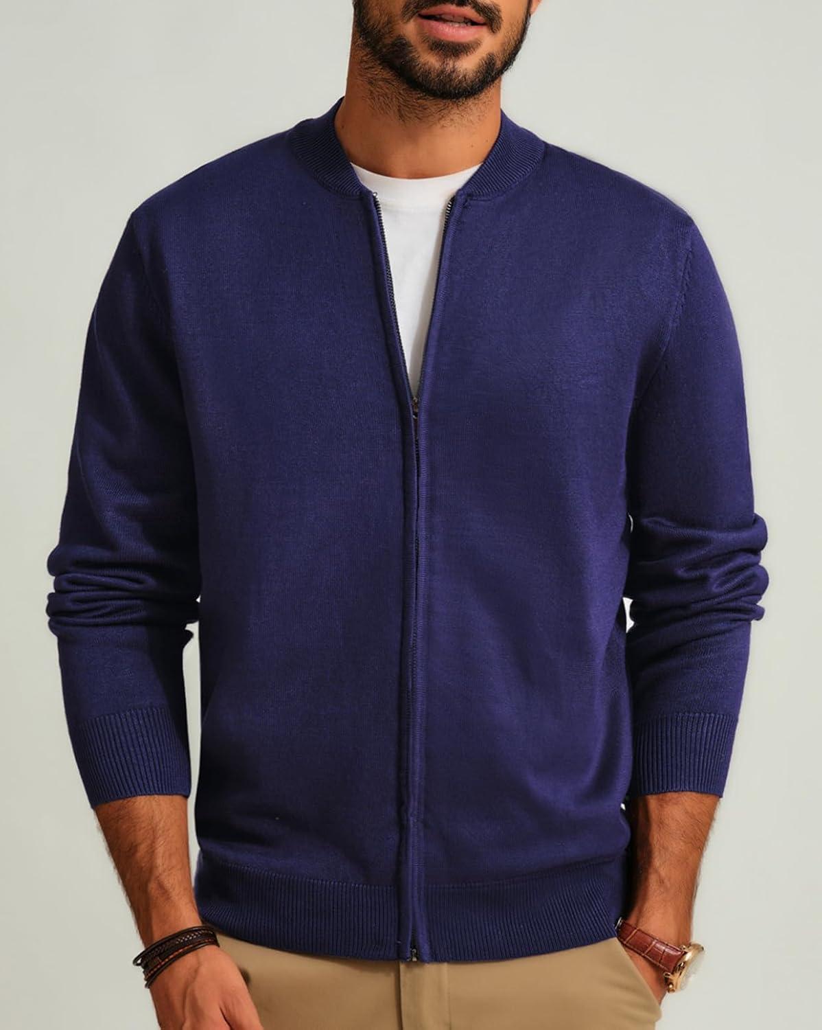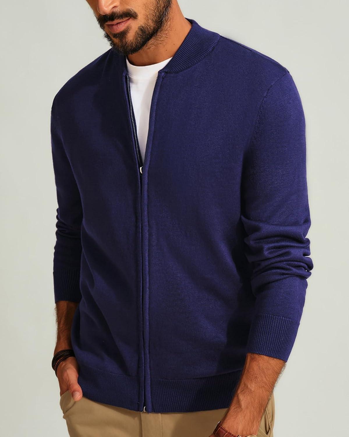 Men’s Casual Full Zip Cardigan Sweater Slim Fit Stand Collar Sweater Jacket(Navy)