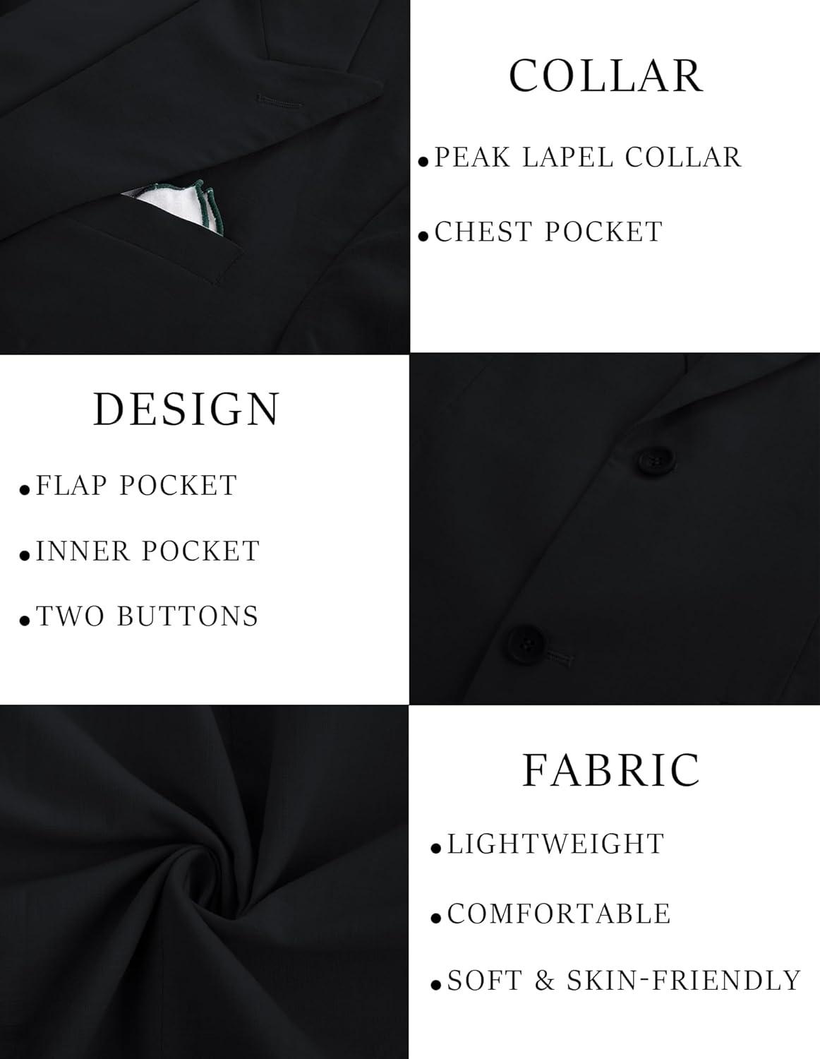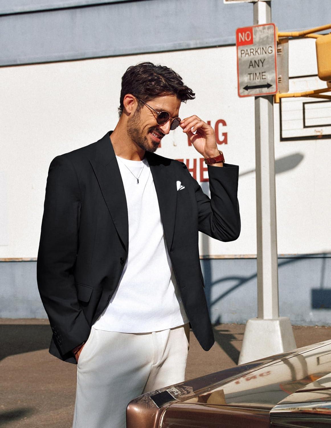 PJ PAUL JONES Blazer for Men Casual Cotton-Linen Sport Coat Lightweight 2 Button Lined Blazer Jacket(Black)