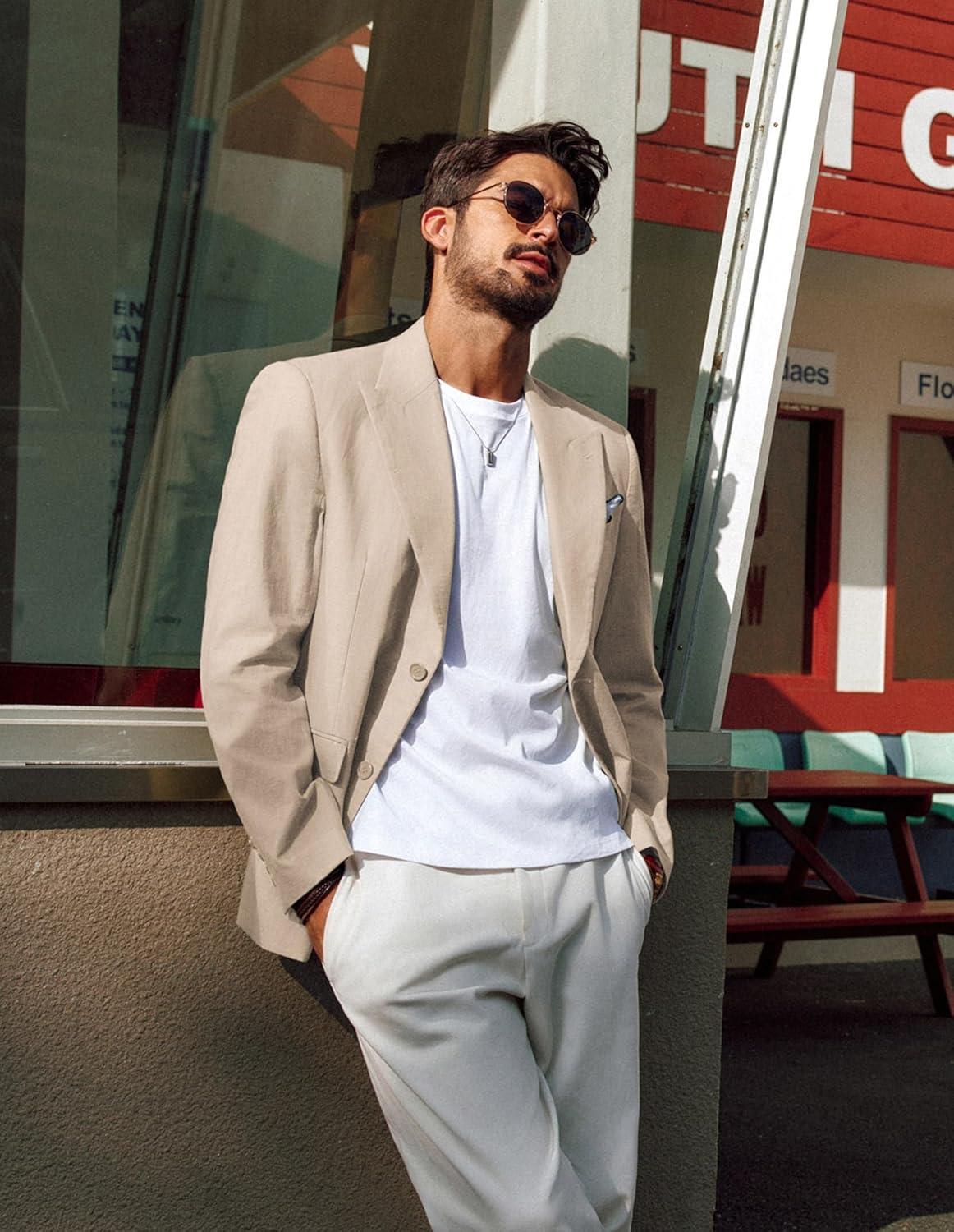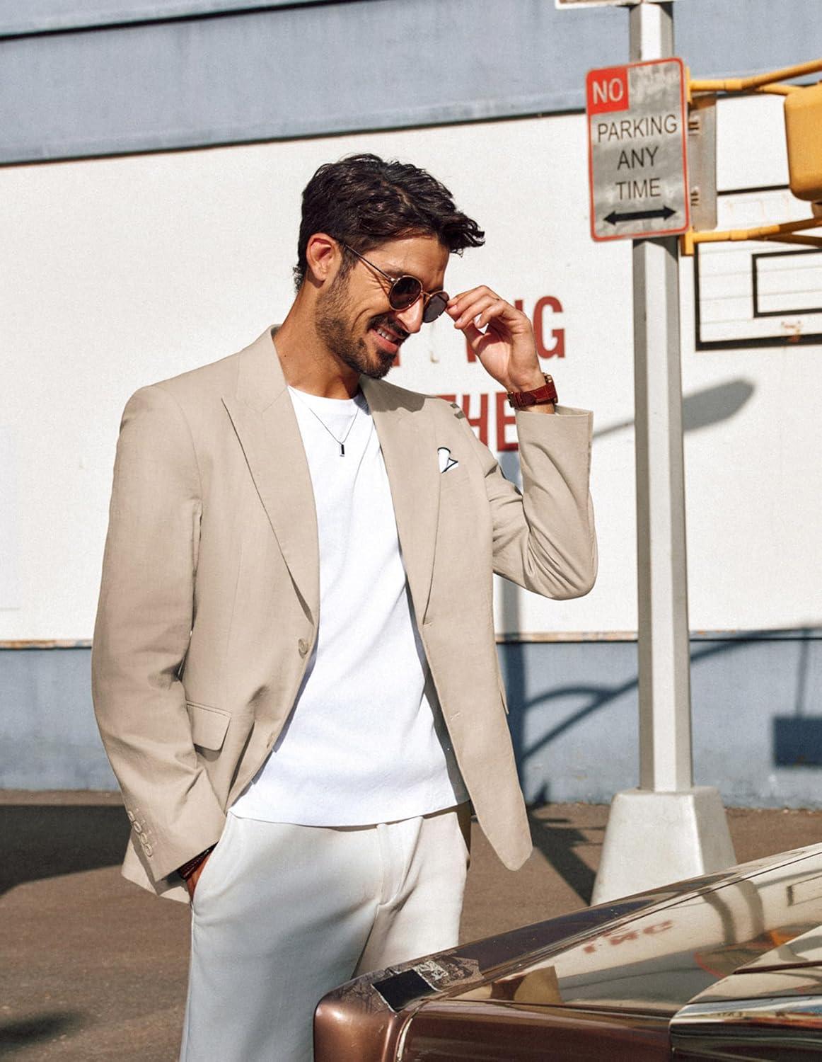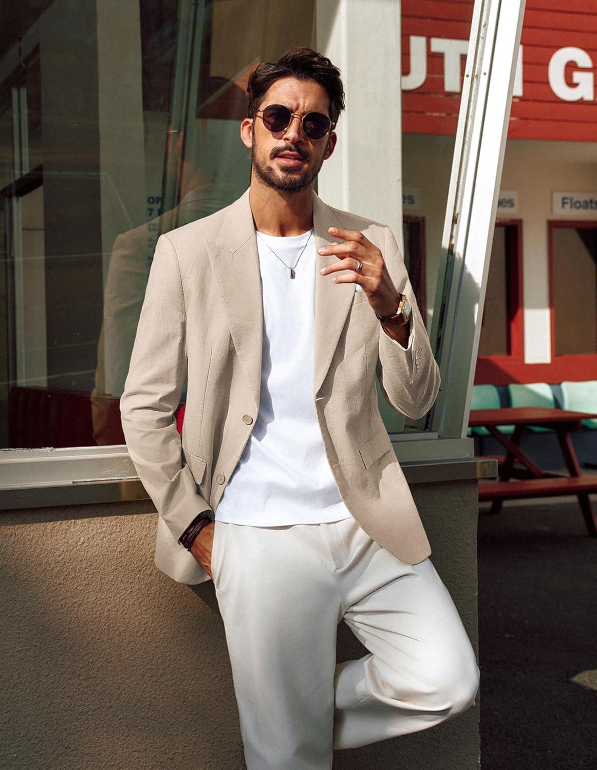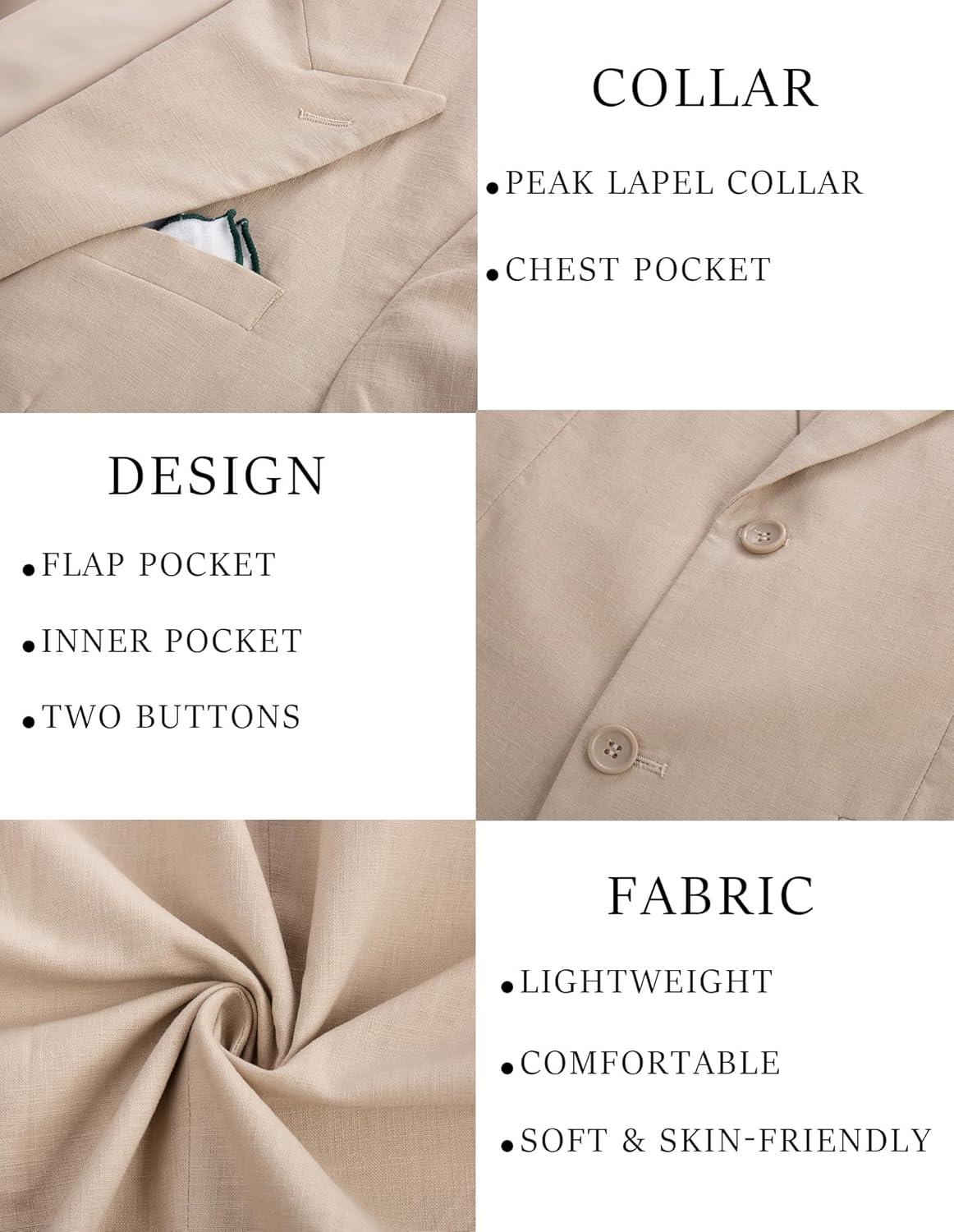 PJ PAUL JONES Blazer for Men Casual Cotton-Linen Sport Coat Lightweight 2 Button Lined Blazer Jacket(Light Khaki)
