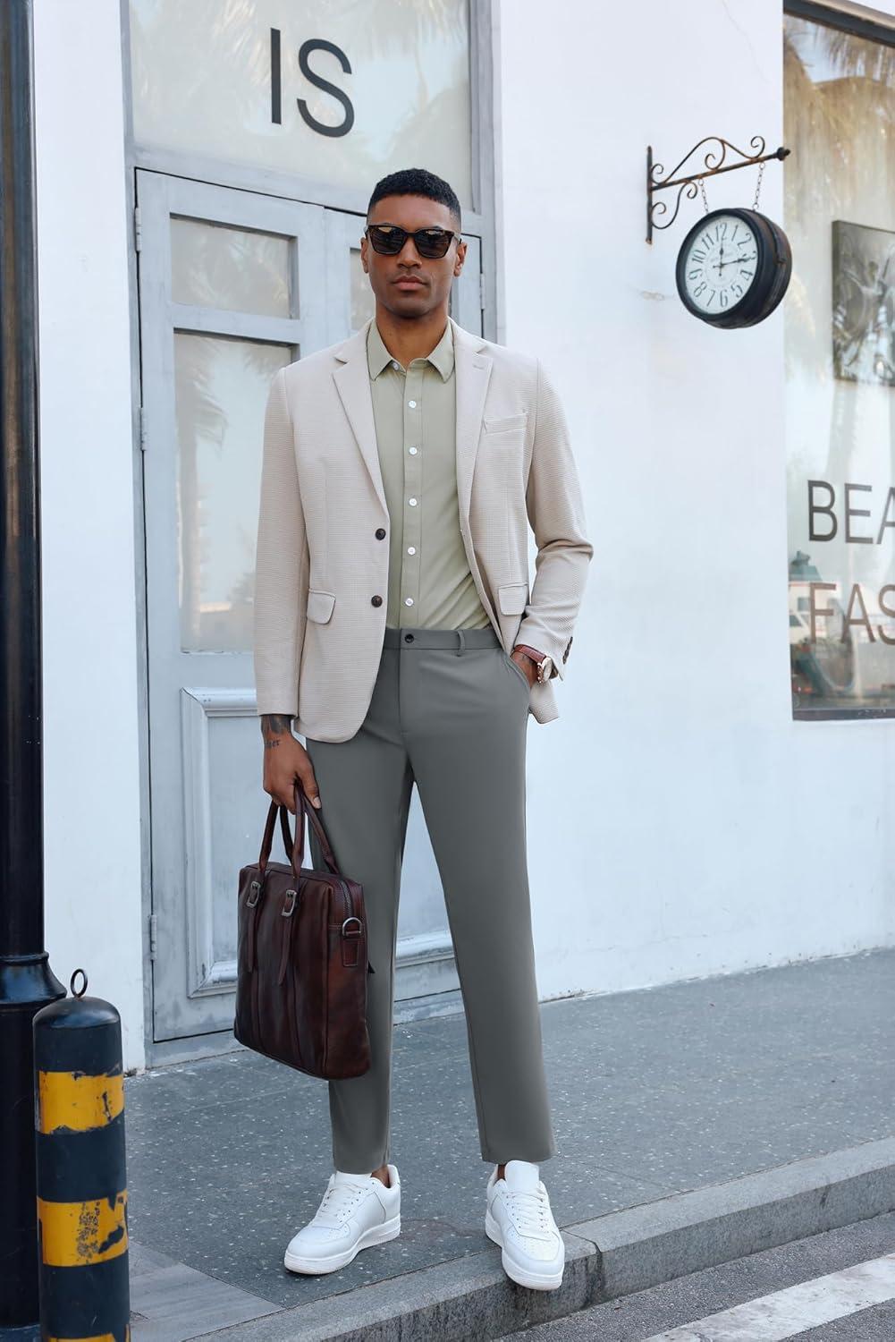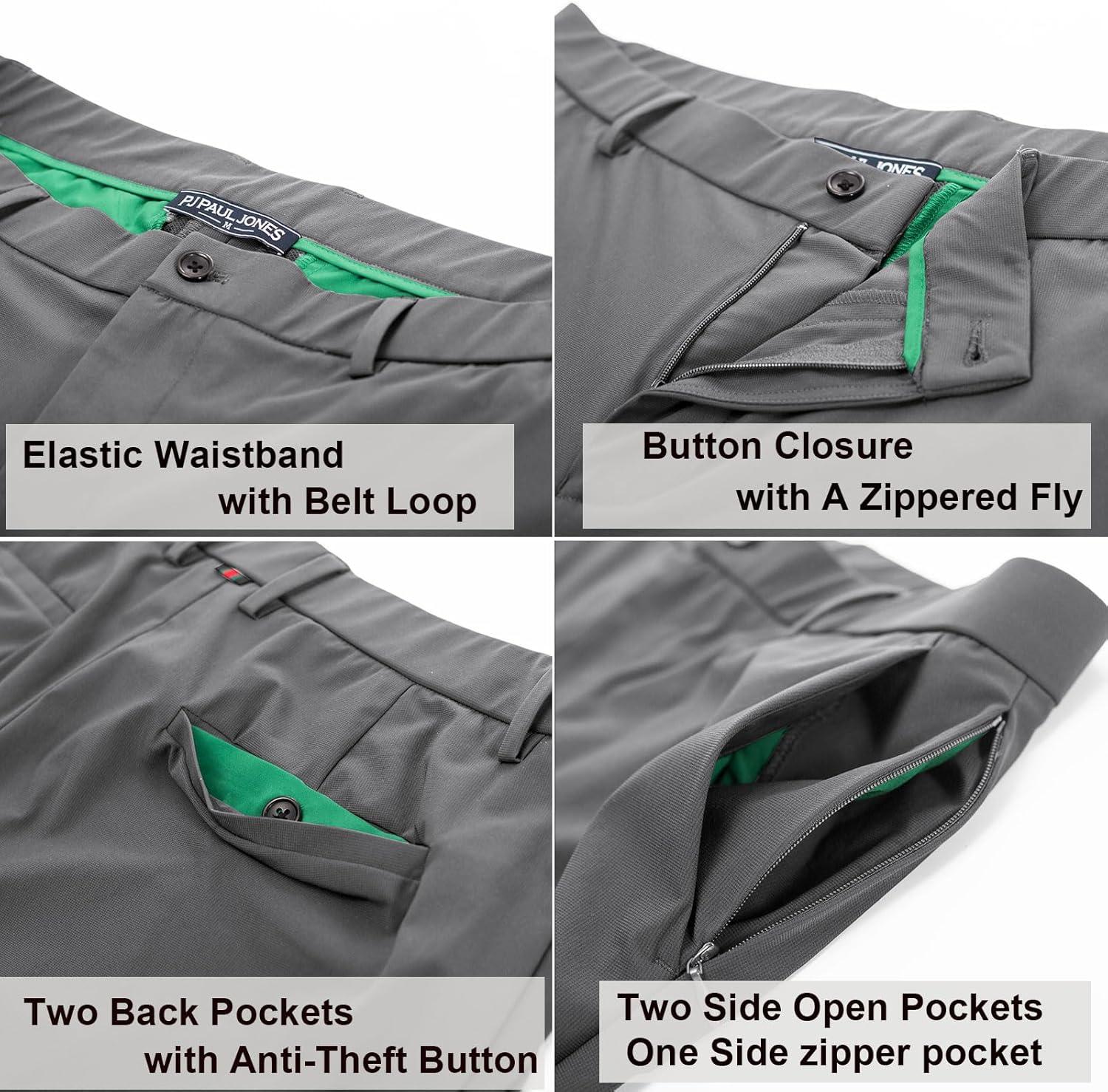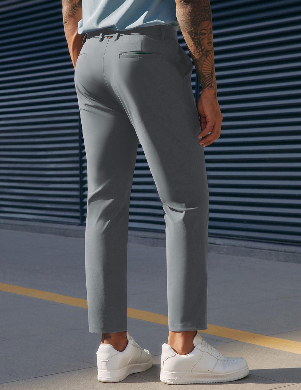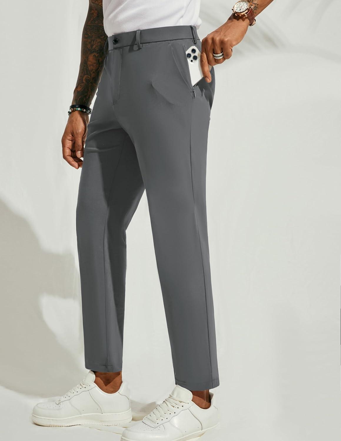 PJ PAUL JONES Men 4 Way Stretch Golf Pants Casual Slim Fit Cropped Tapered Dress Pants Lightweight Business Trousers(Dark Grey)