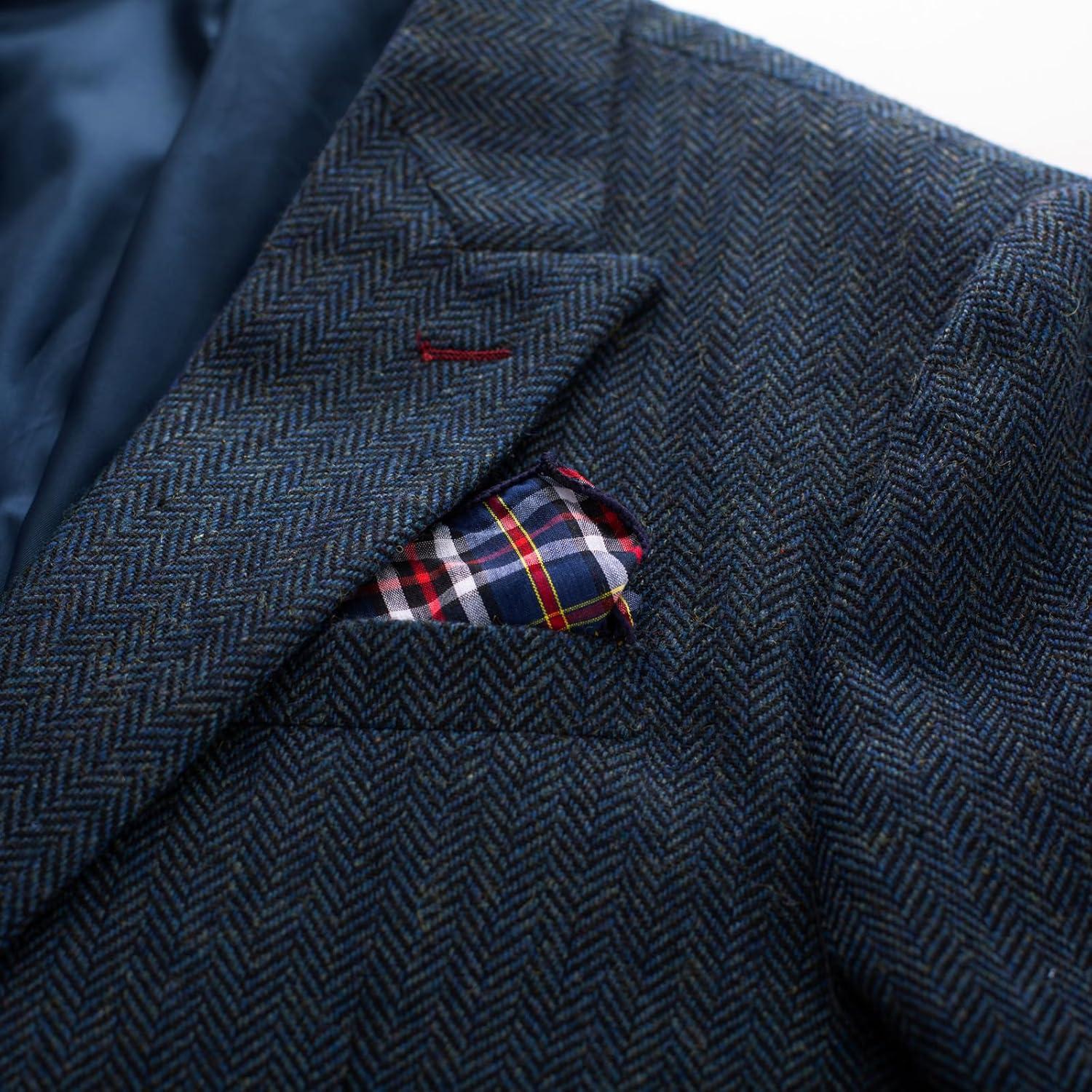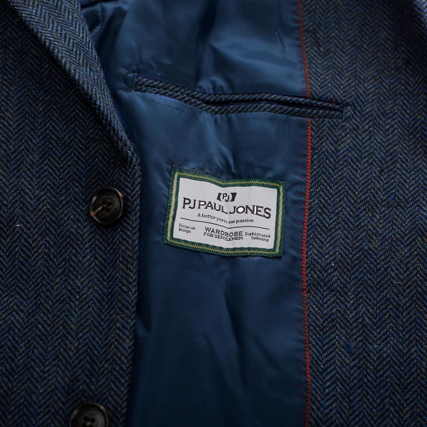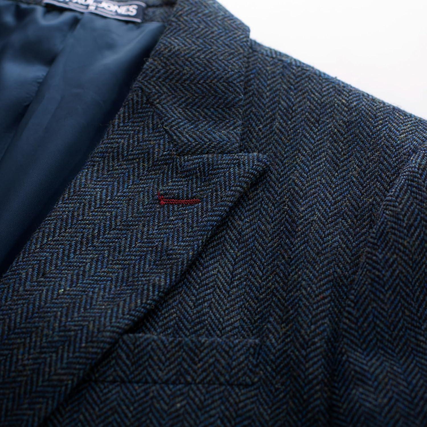 PJ PAUL JONES Men Tweed Blazer Wool Herringbone Sport Coat Jacket Vintage Blazers Suit Jackets(Dark Blue Herringbone)