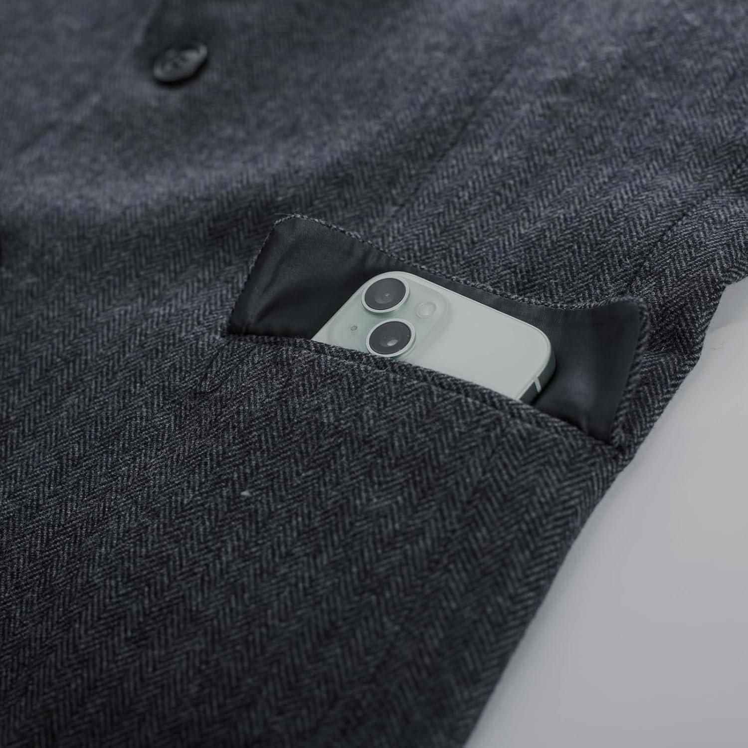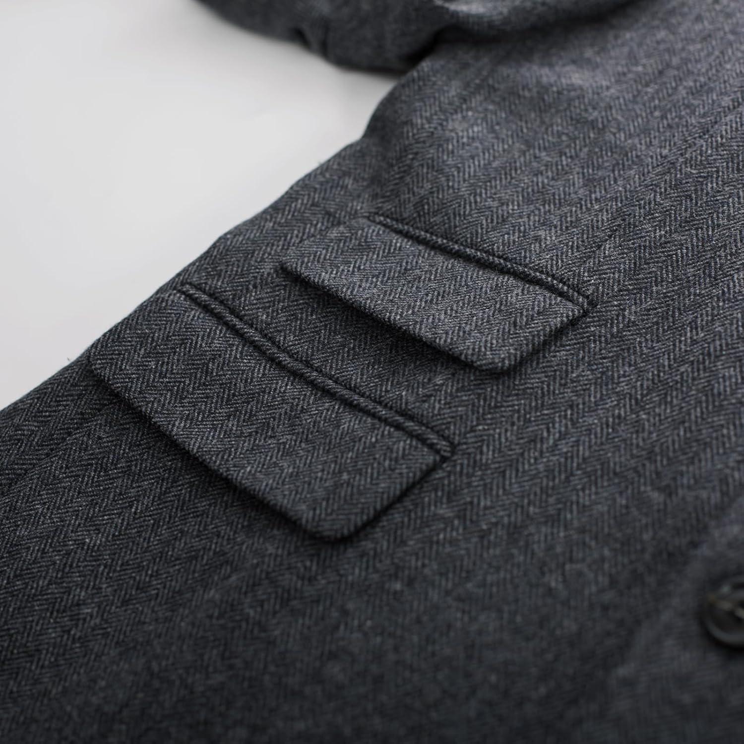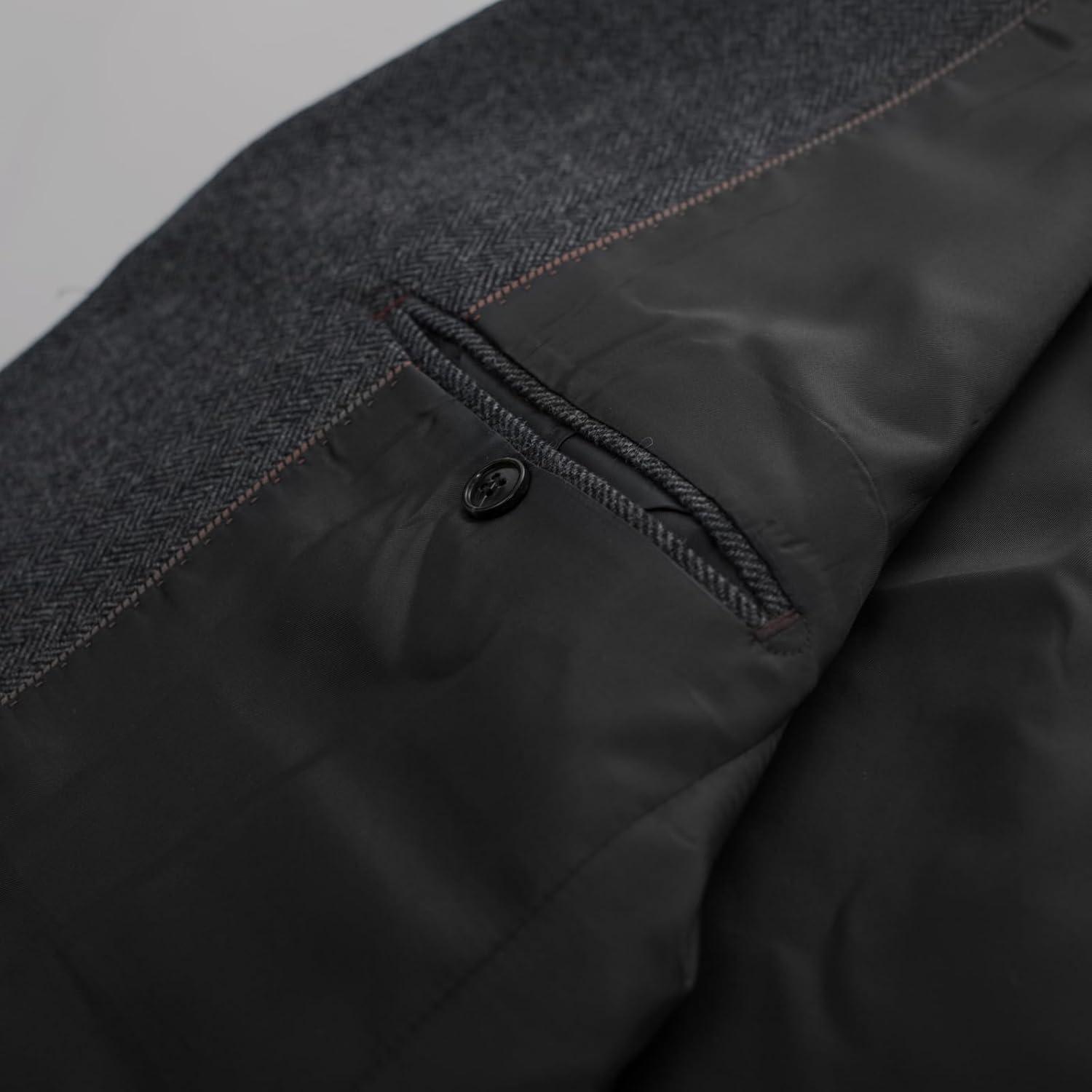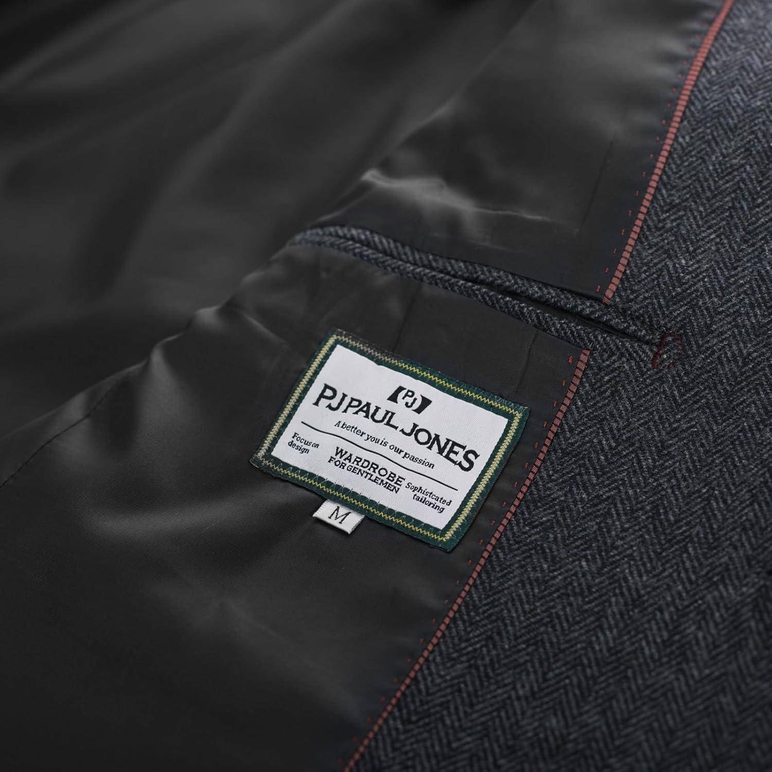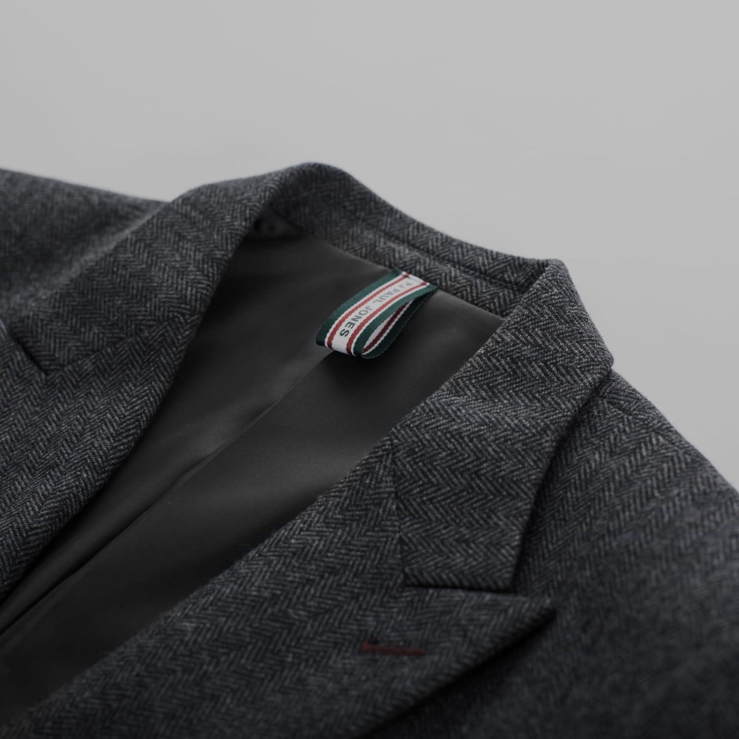 PJ PAUL JONES Men Tweed Blazer Wool Herringbone Sport Coat Jacket Vintage Blazers Suit Jackets(Dark Grey Herringbone)