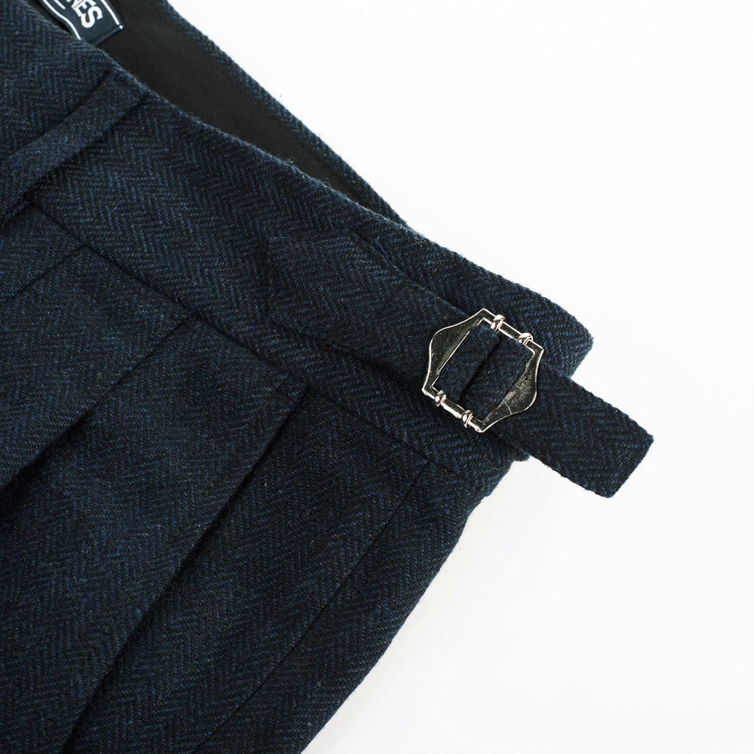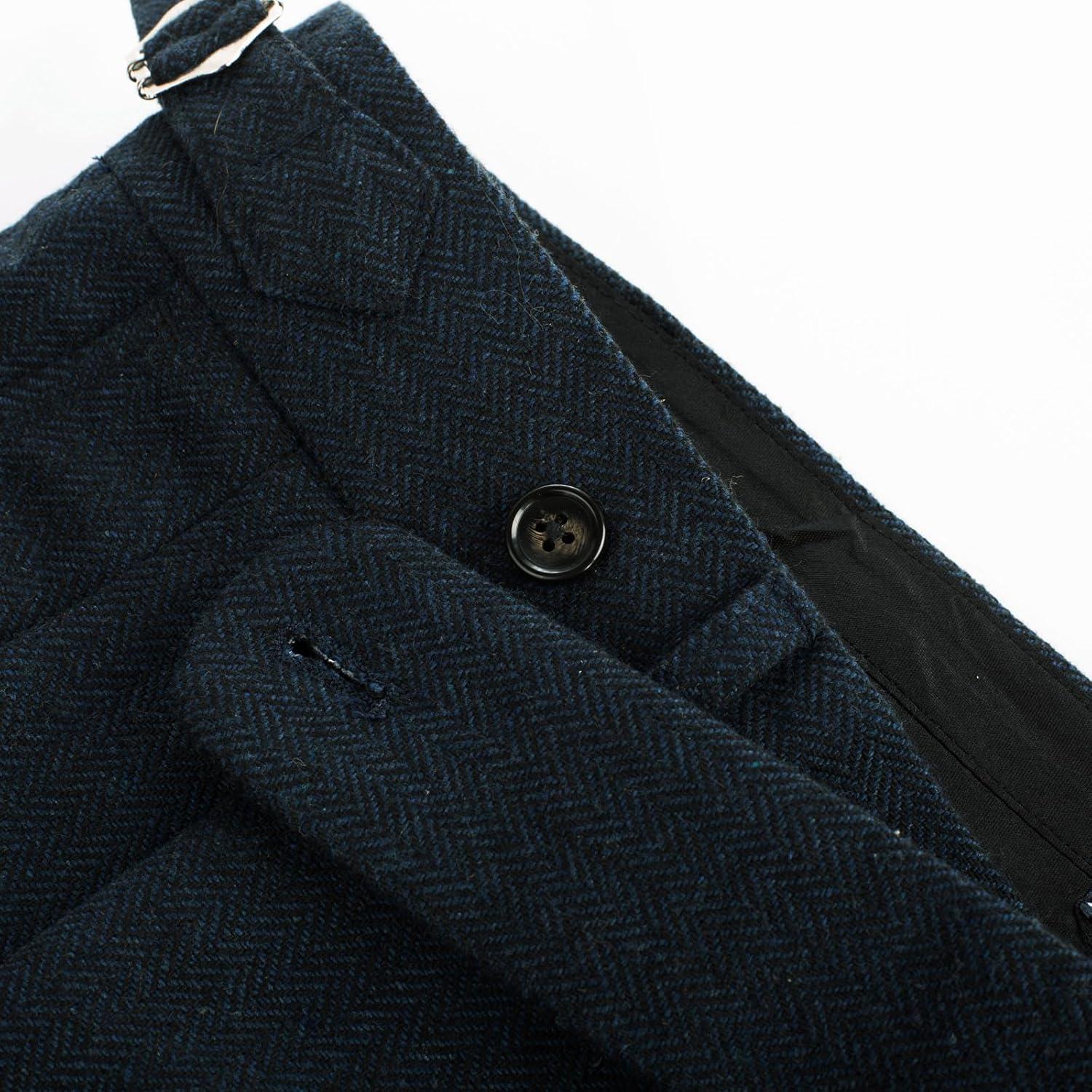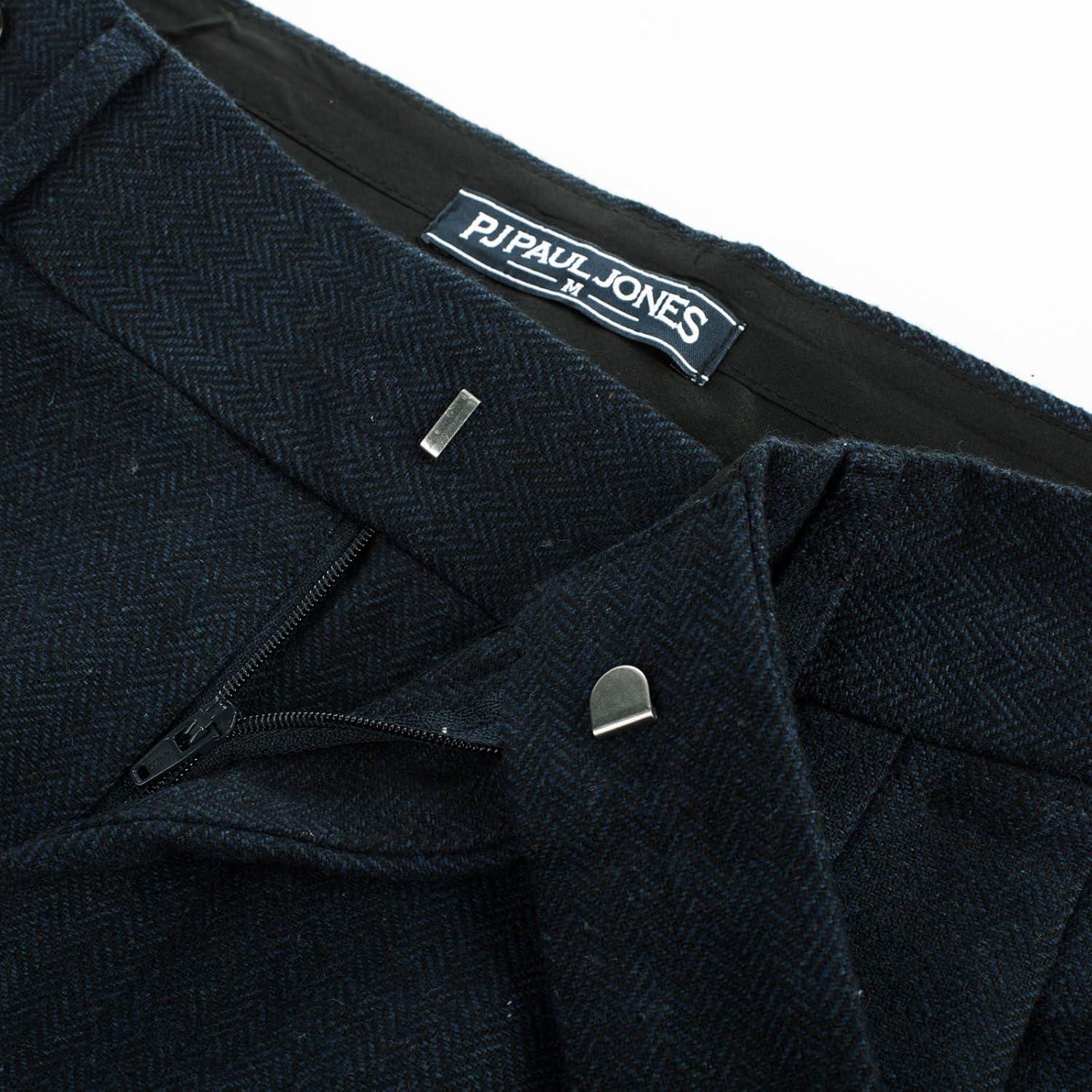 PJ PAUL JONES Men Vintage Tweed Pants Herringbone Pleated Suit Trousers(Navy)