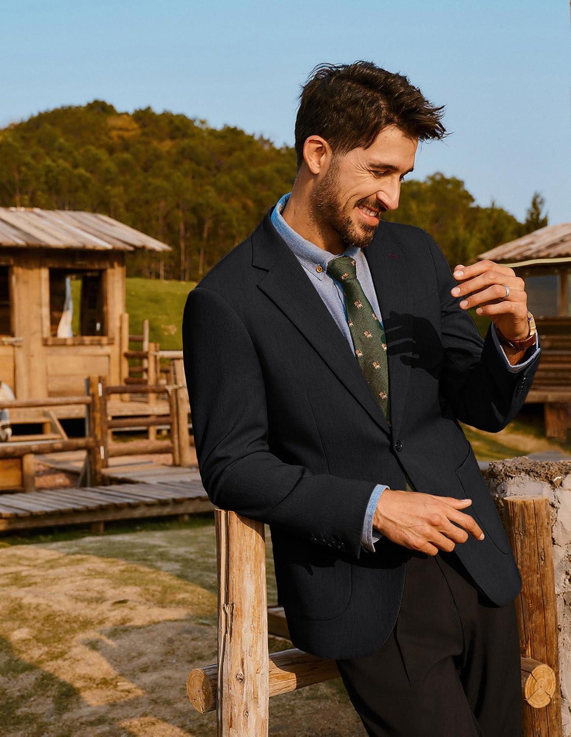 PJ PAUL JONES Mens Blazer Casual Two Button Sport Coats Notched Lapel Solid Suit Jackets(Black)