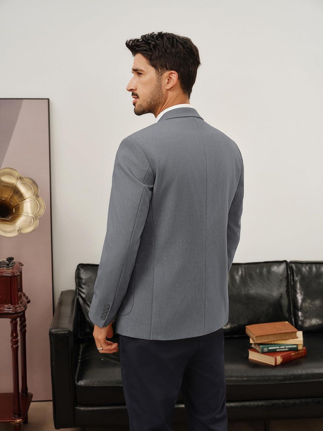 PJ PAUL JONES Mens Blazer Casual Two Button Sport Coats Notched Lapel Solid Suit Jackets(Grey)
