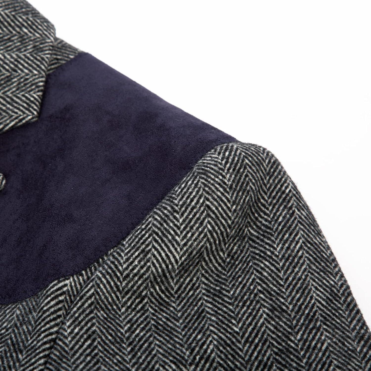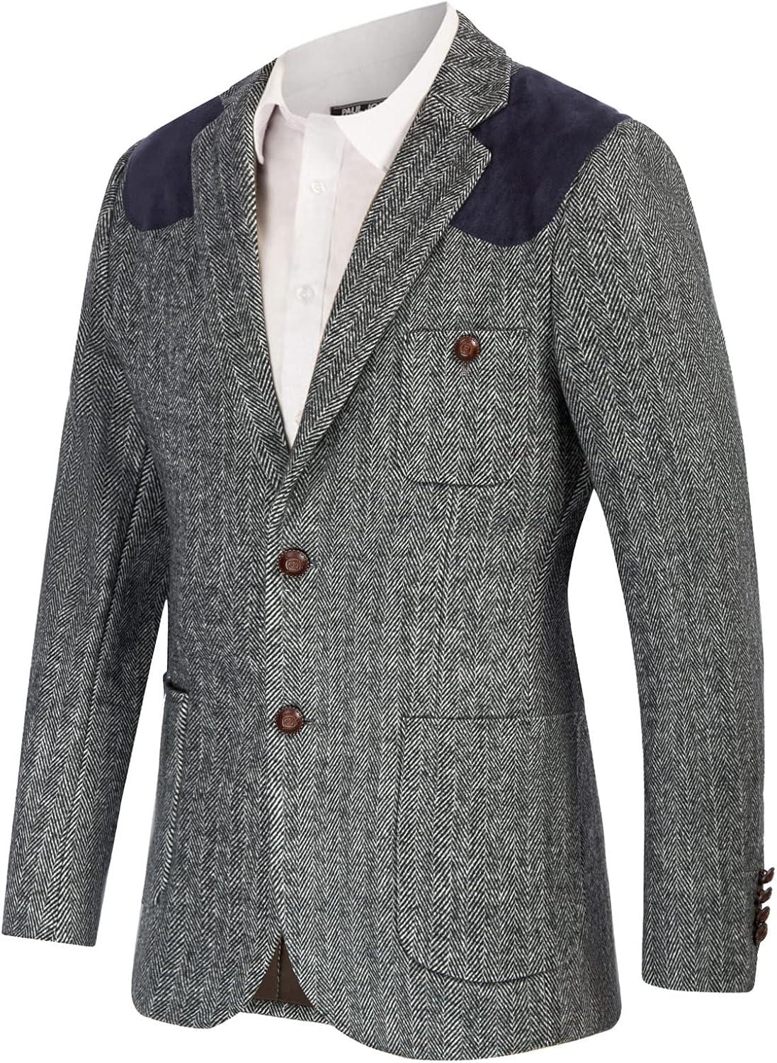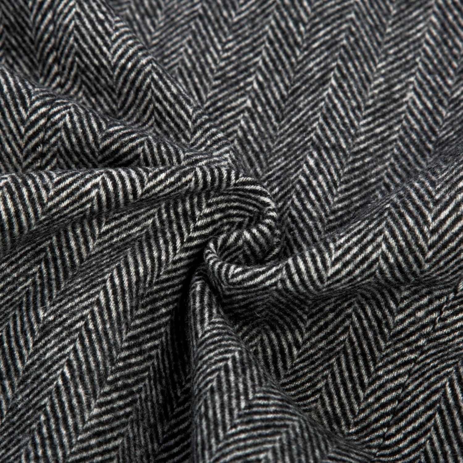 PJ PAUL JONES Men’s Blazer Herringbone Tweed Sport Coats Two Button Wool Blend Formal Jacket(Black)