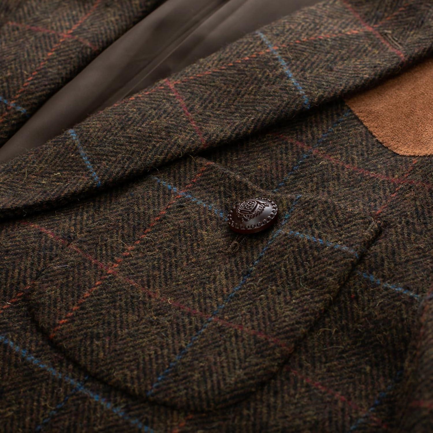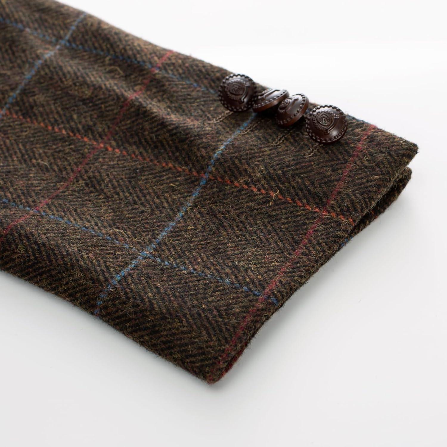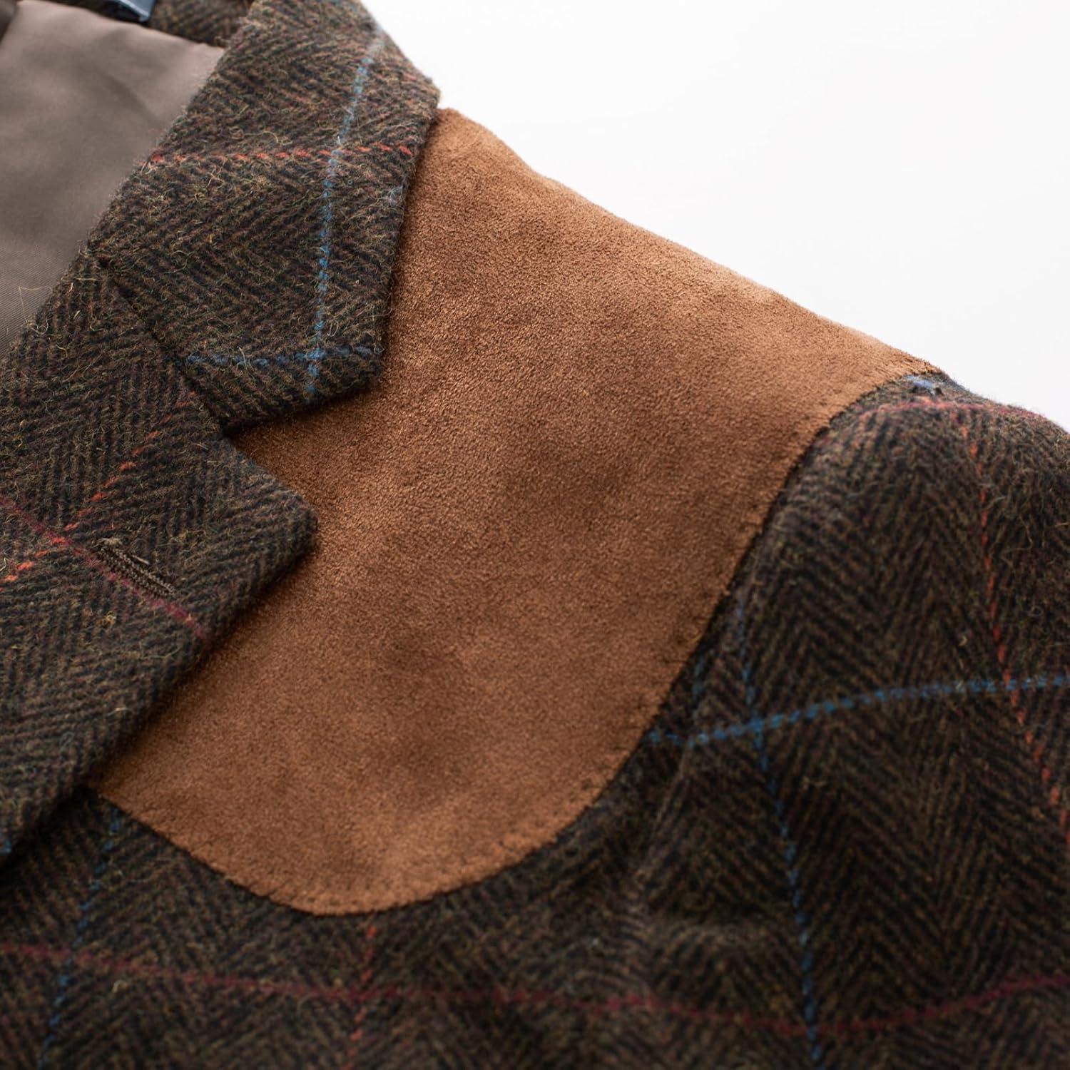 PJ PAUL JONES Men’s Blazer Herringbone Tweed Sport Coats Two Button Wool Blend Formal Jacket(Brown)