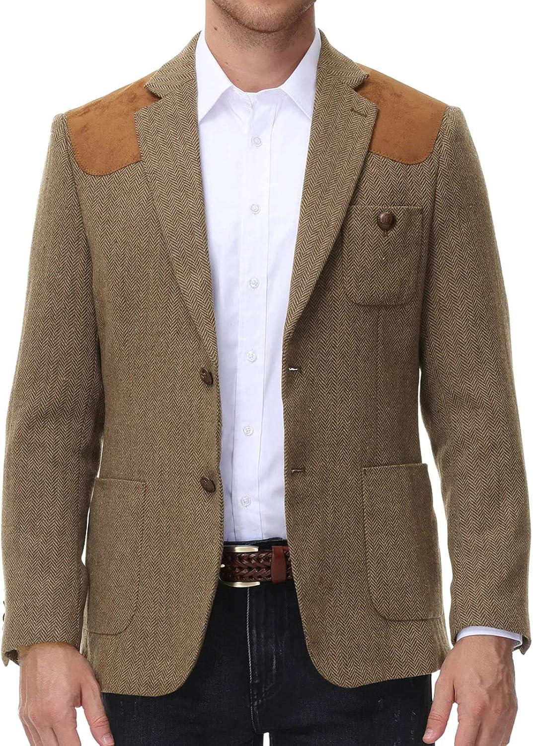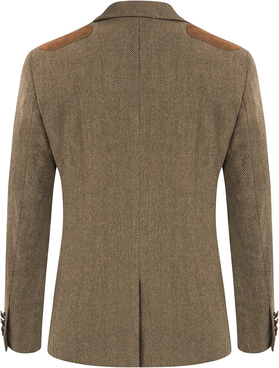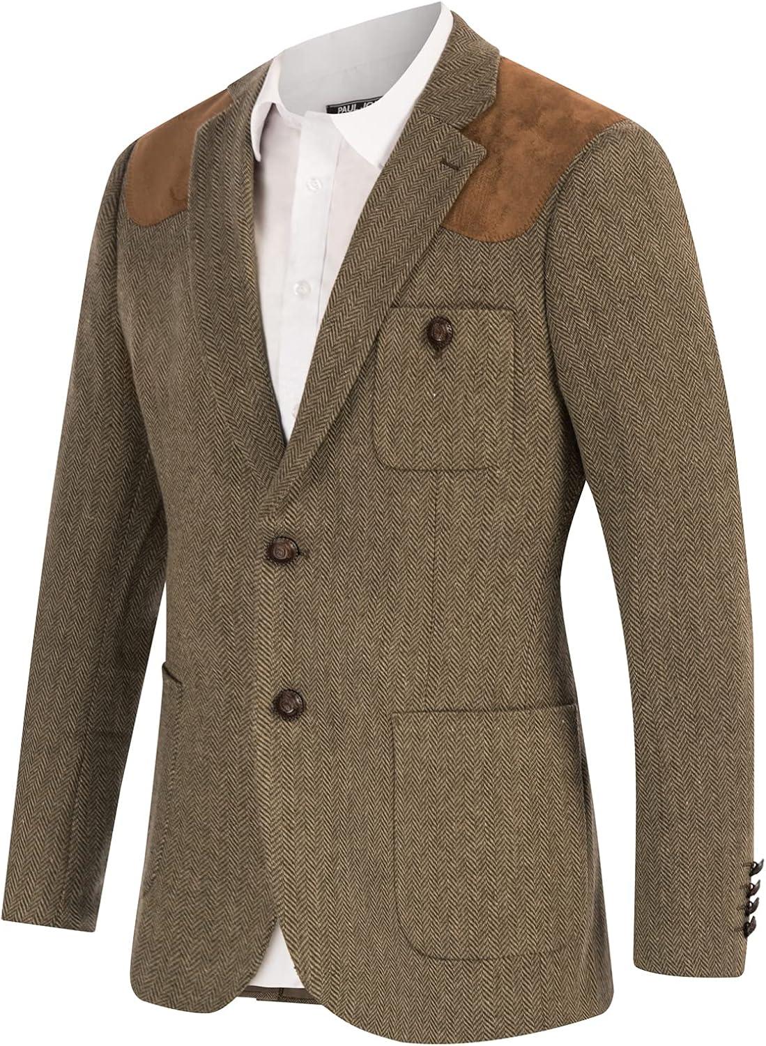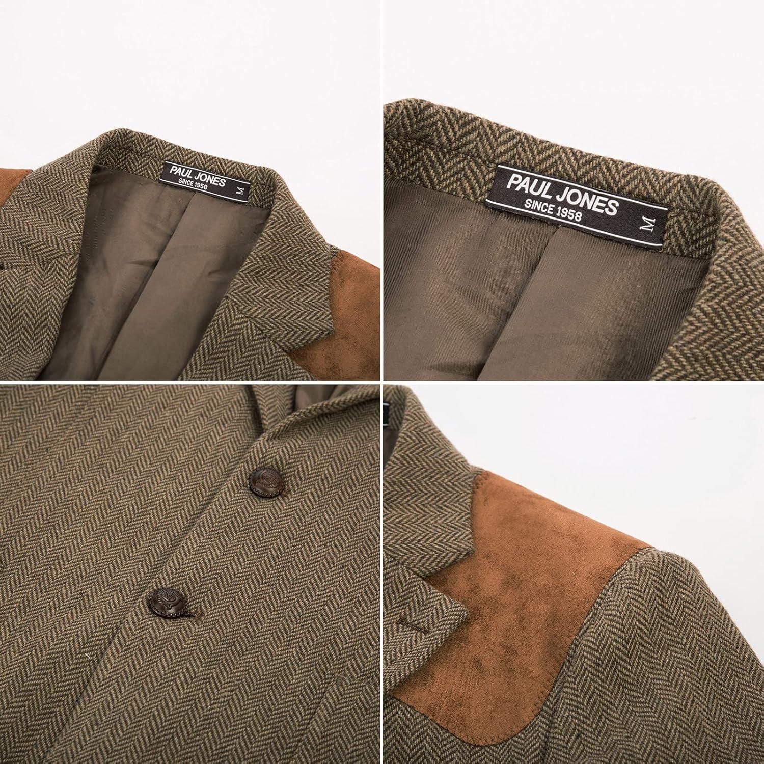 PJ PAUL JONES Men’s Blazer Herringbone Tweed Sport Coats Two Button Wool Blend Formal Jacket(Coffee)