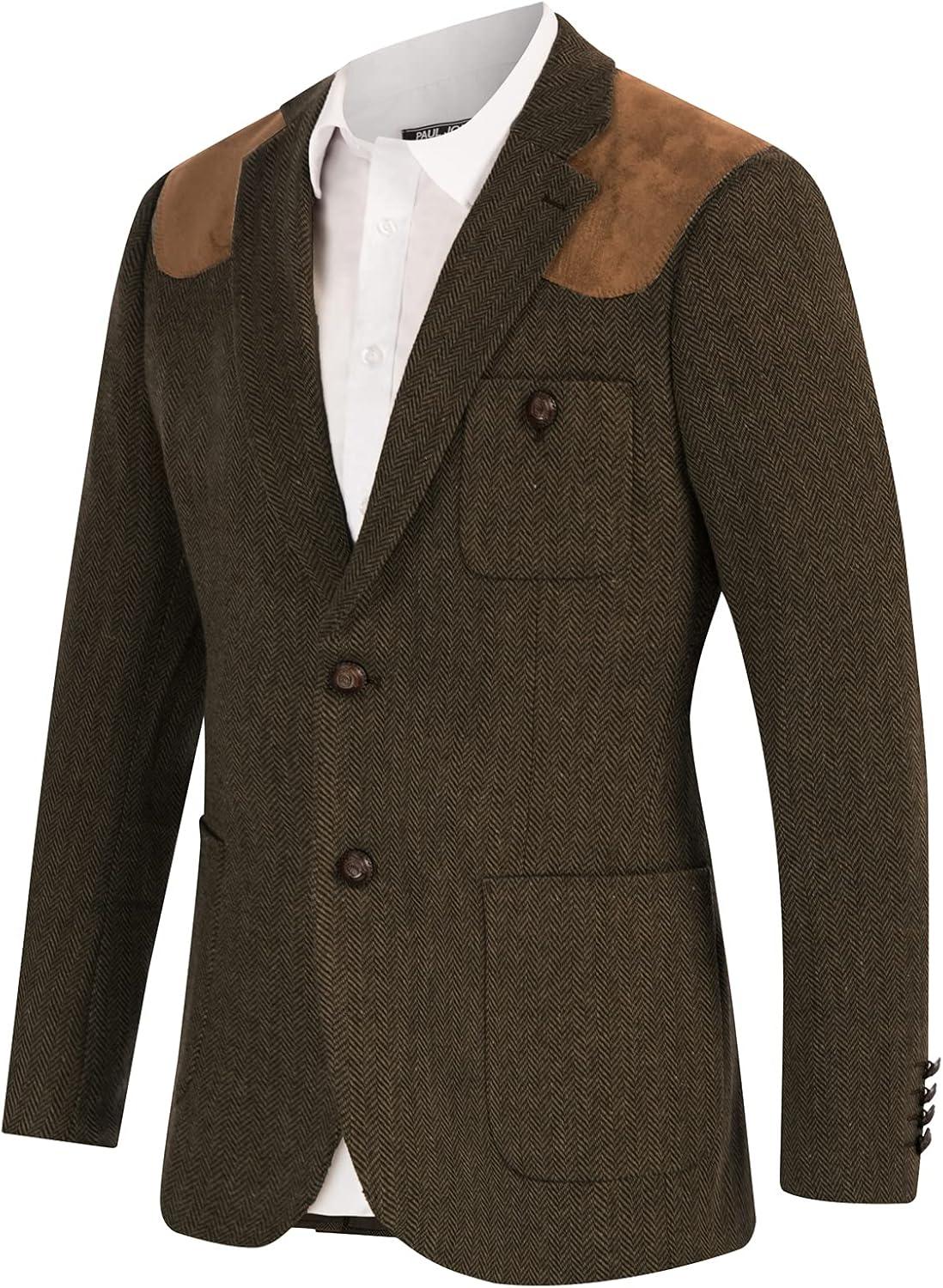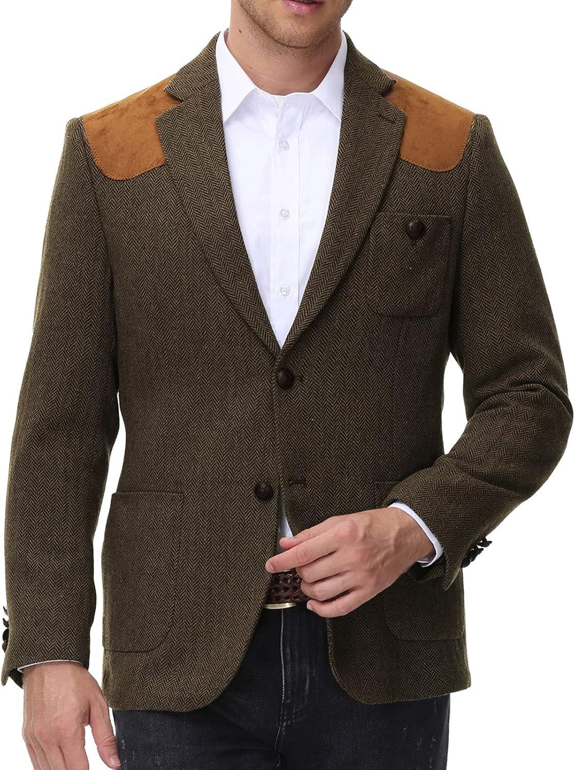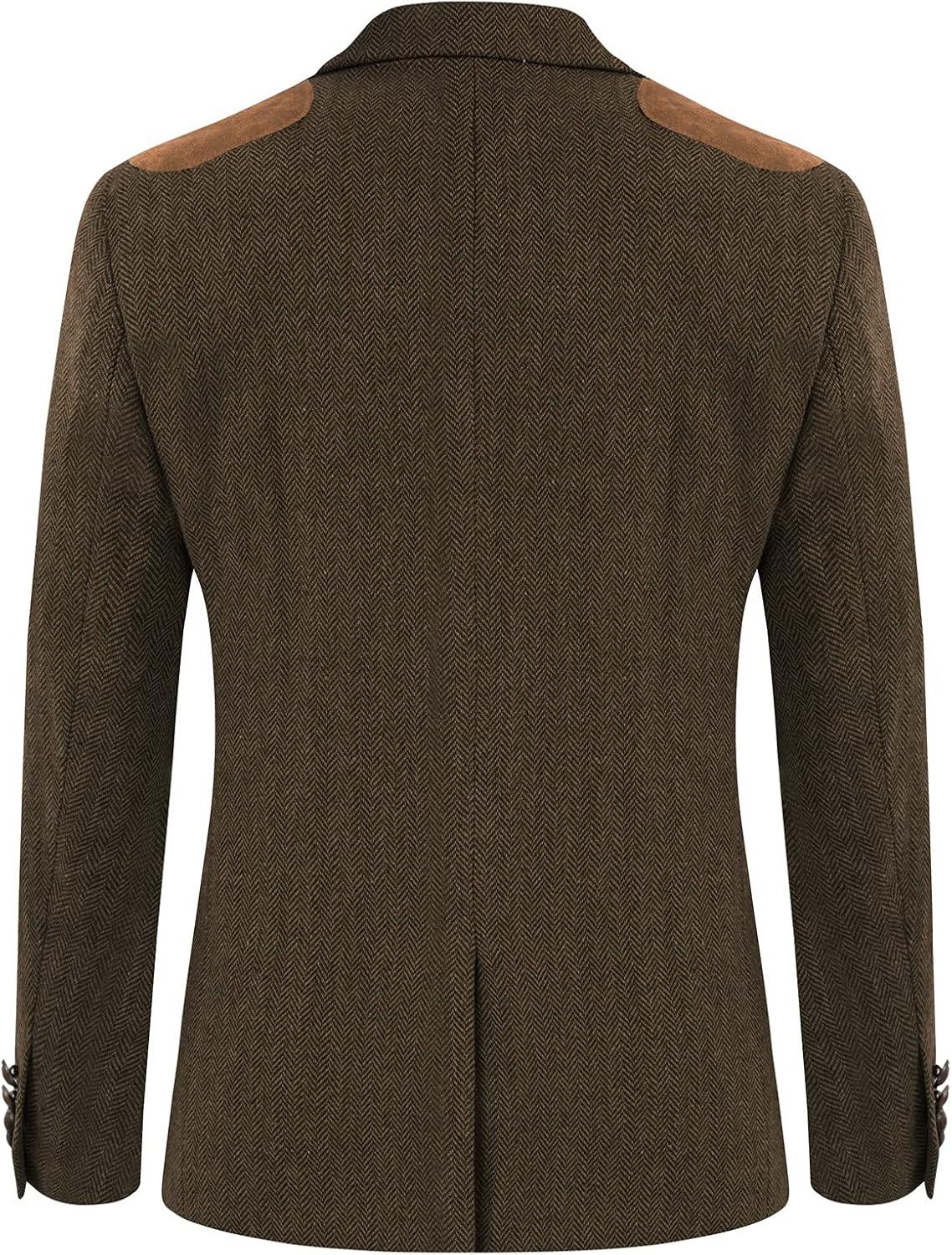 PJ PAUL JONES Men’s Blazer Herringbone Tweed Sport Coats Two Button Wool Blend Formal Jacket(Dark Brown)