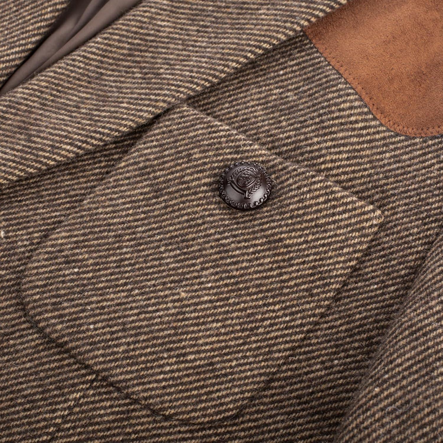 PJ PAUL JONES Men’s Blazer Herringbone Tweed Sport Coats Two Button Wool Blend Formal Jacket(Dark Coffee)