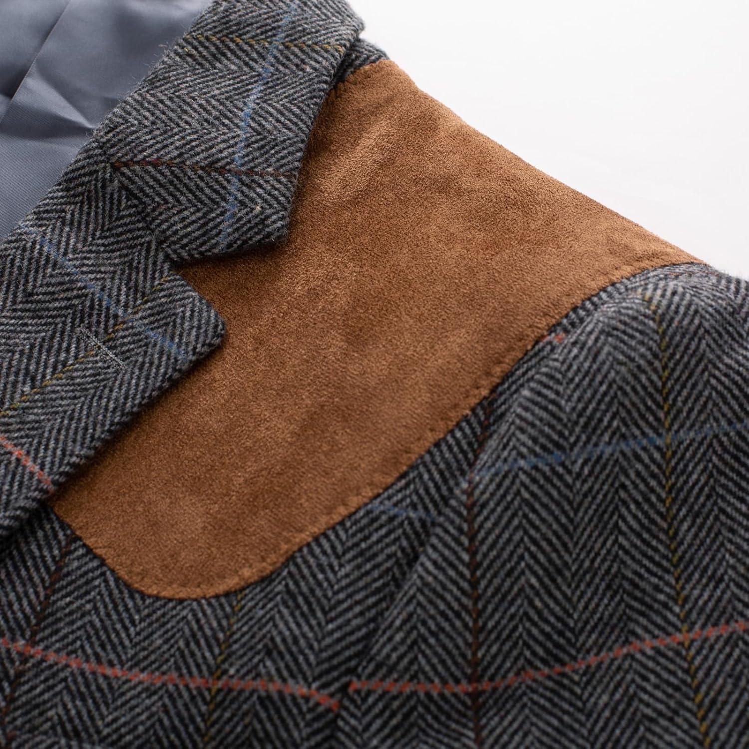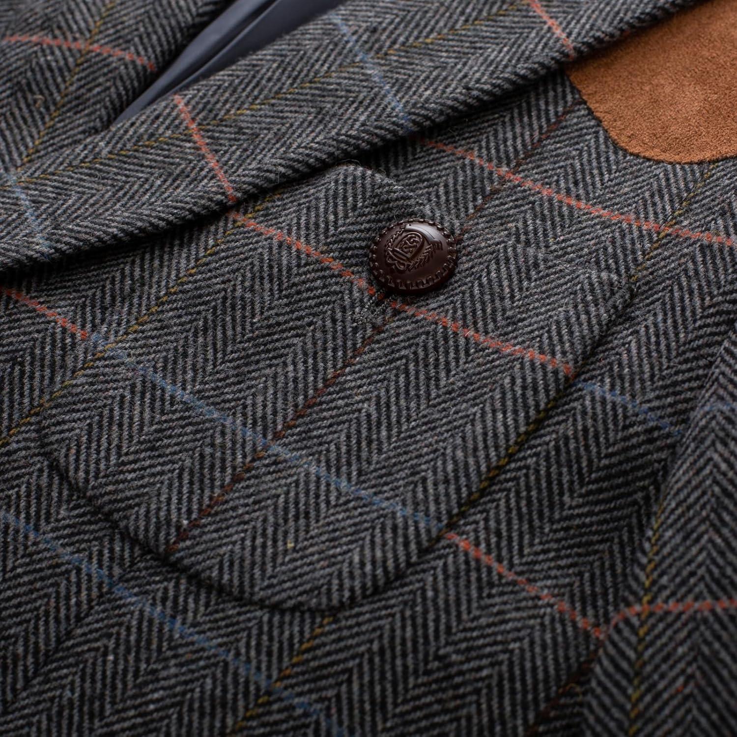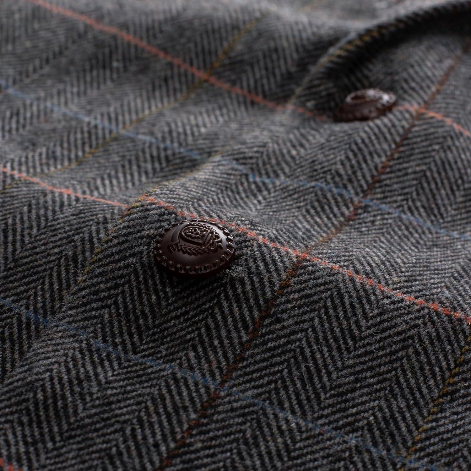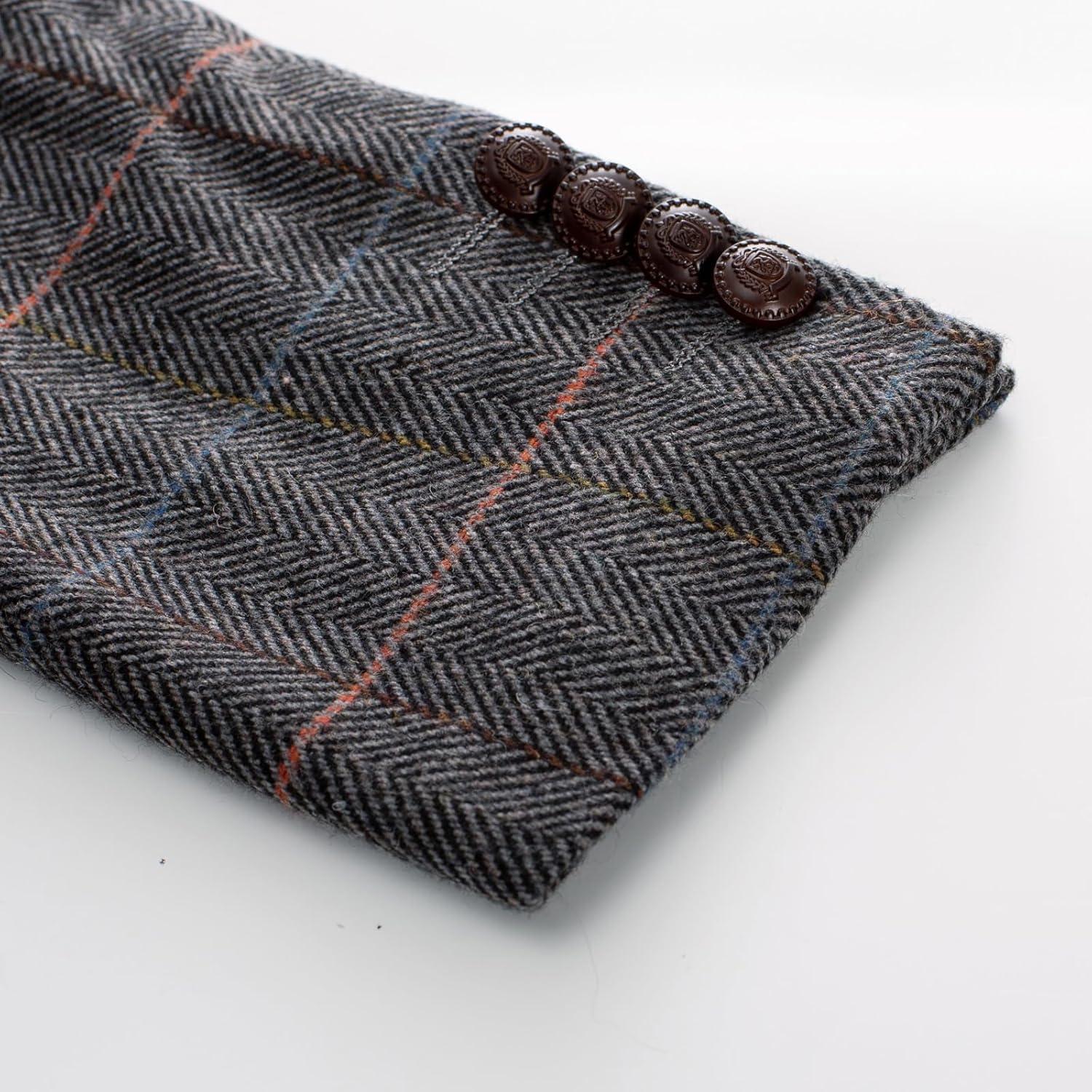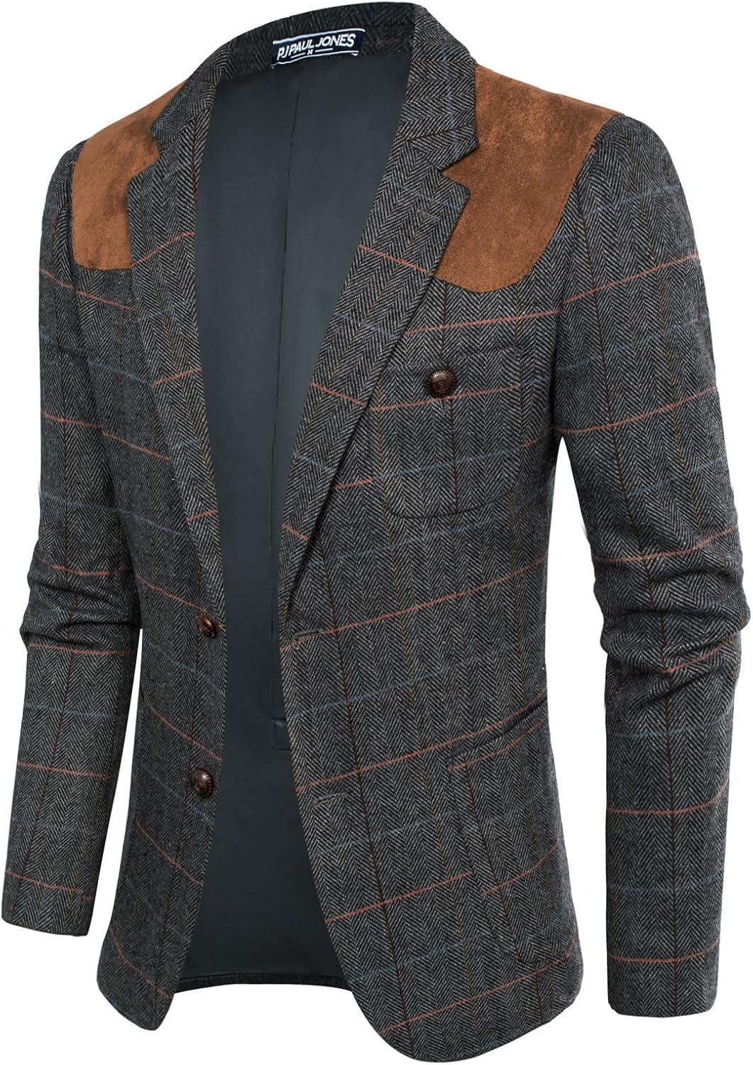PJ PAUL JONES Men’s Blazer Herringbone Tweed Sport Coats Two Button Wool Blend Formal Jacket(Dark Grey)