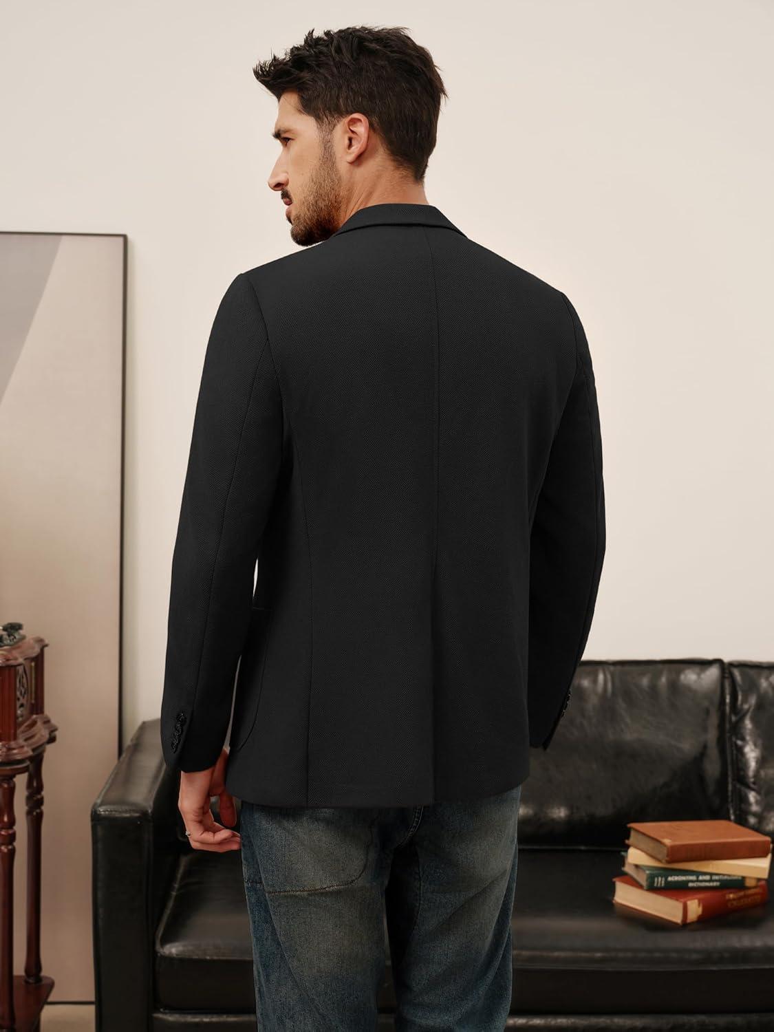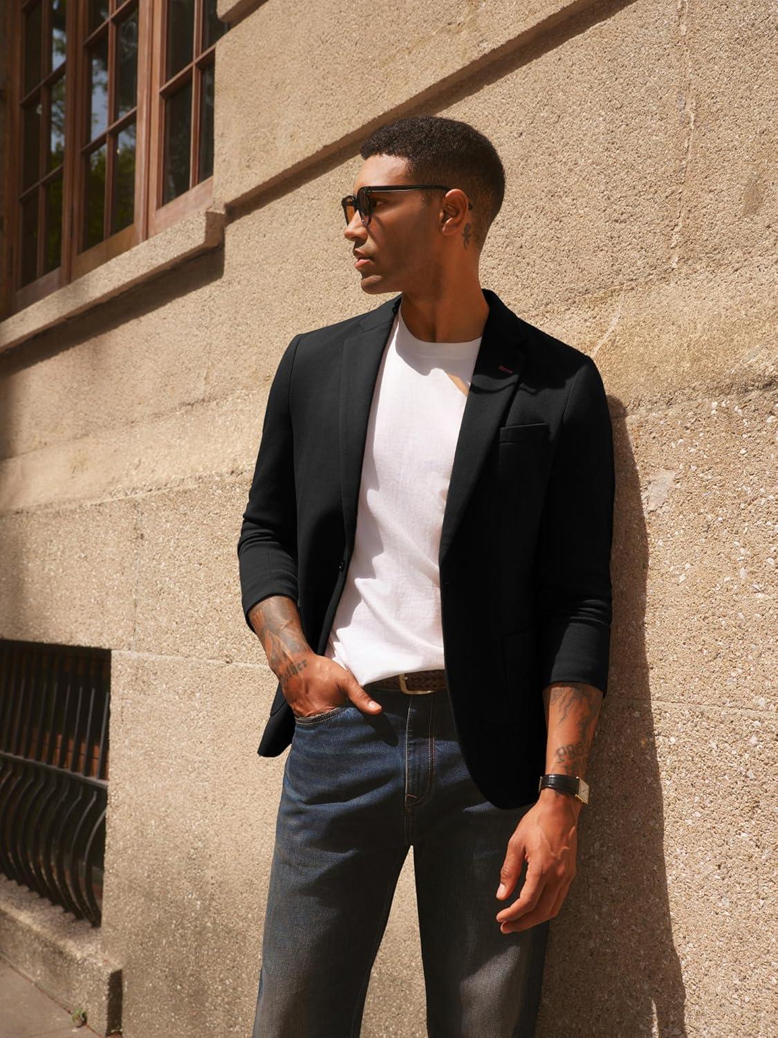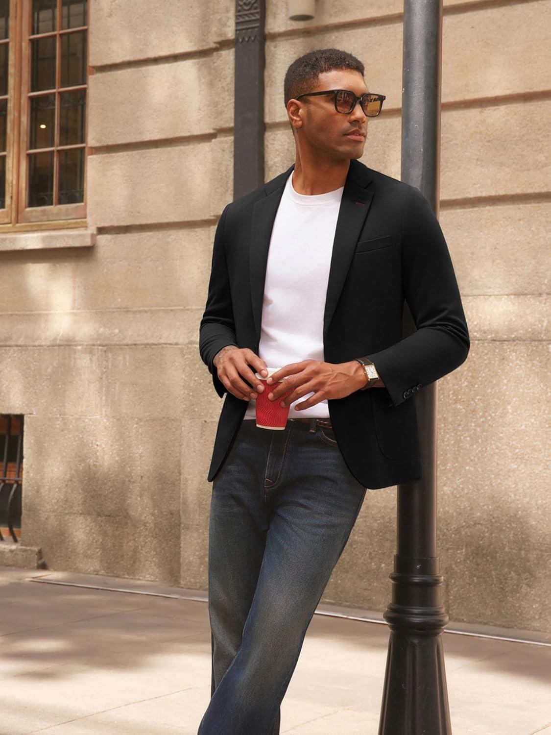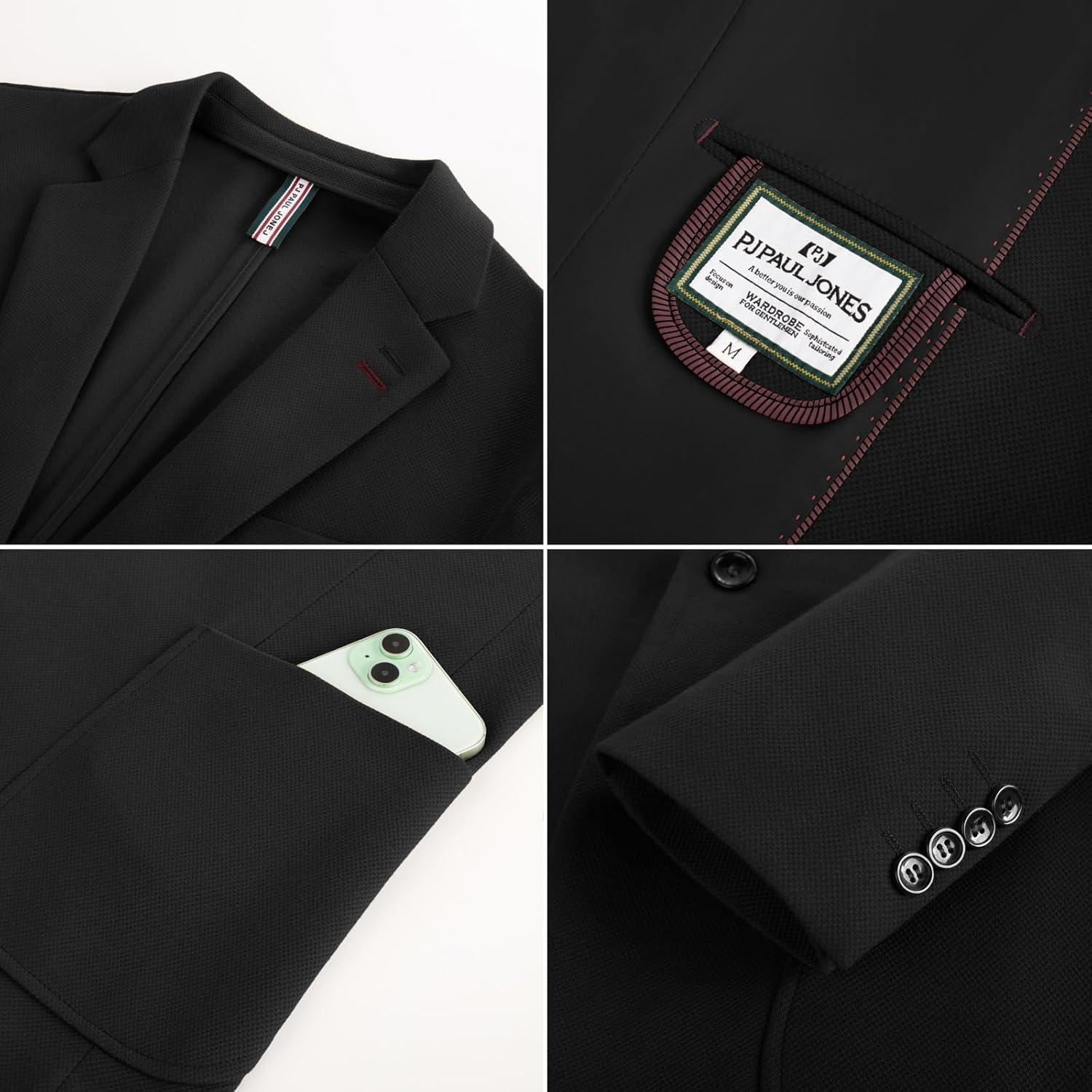 PJ PAUL JONES Mens Blazer Lightweight Knit Sport Coat Casual One Button Suit Jackets(Black)