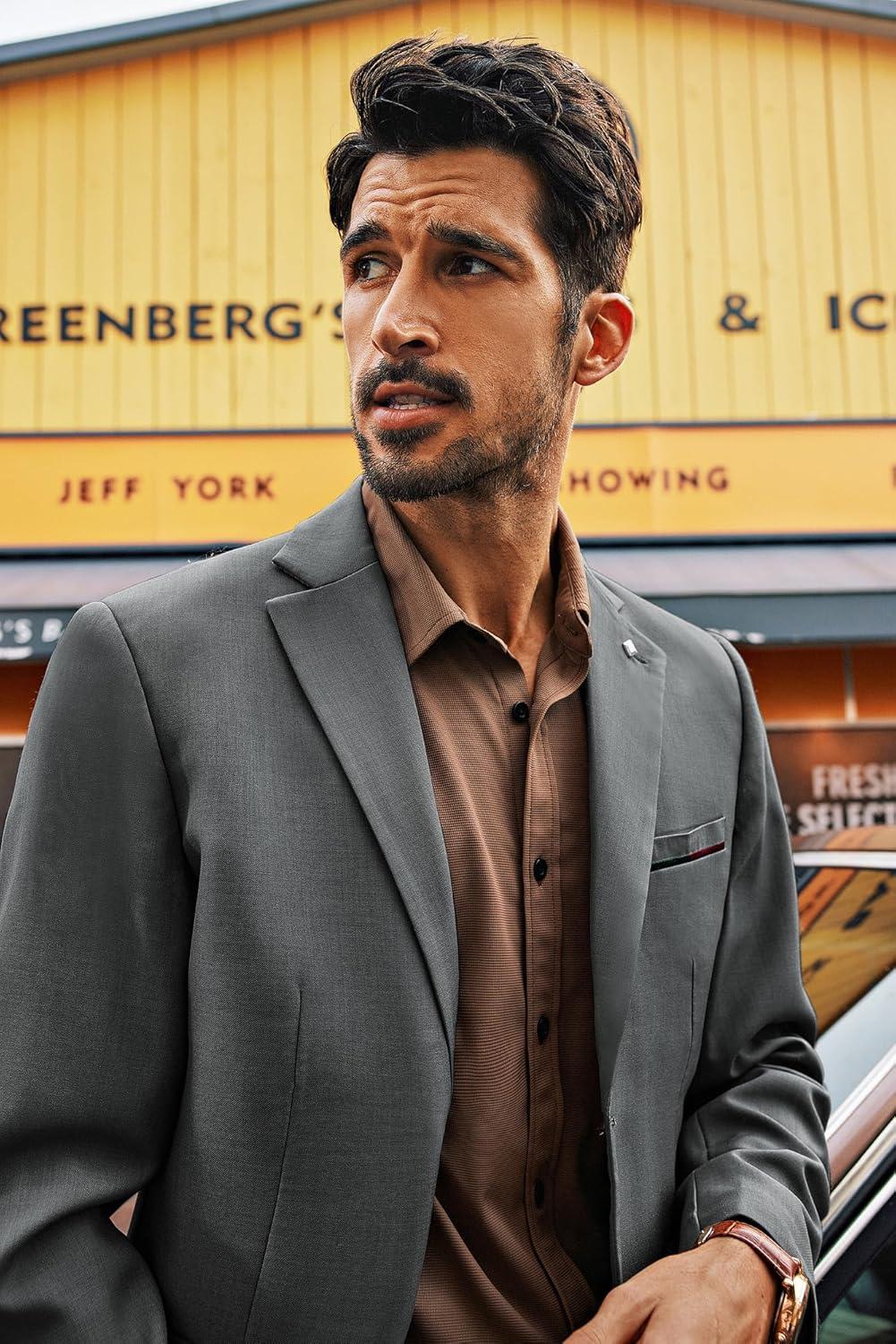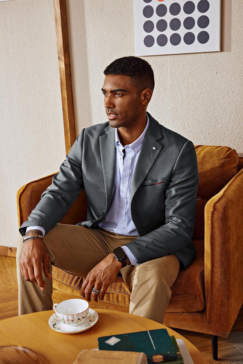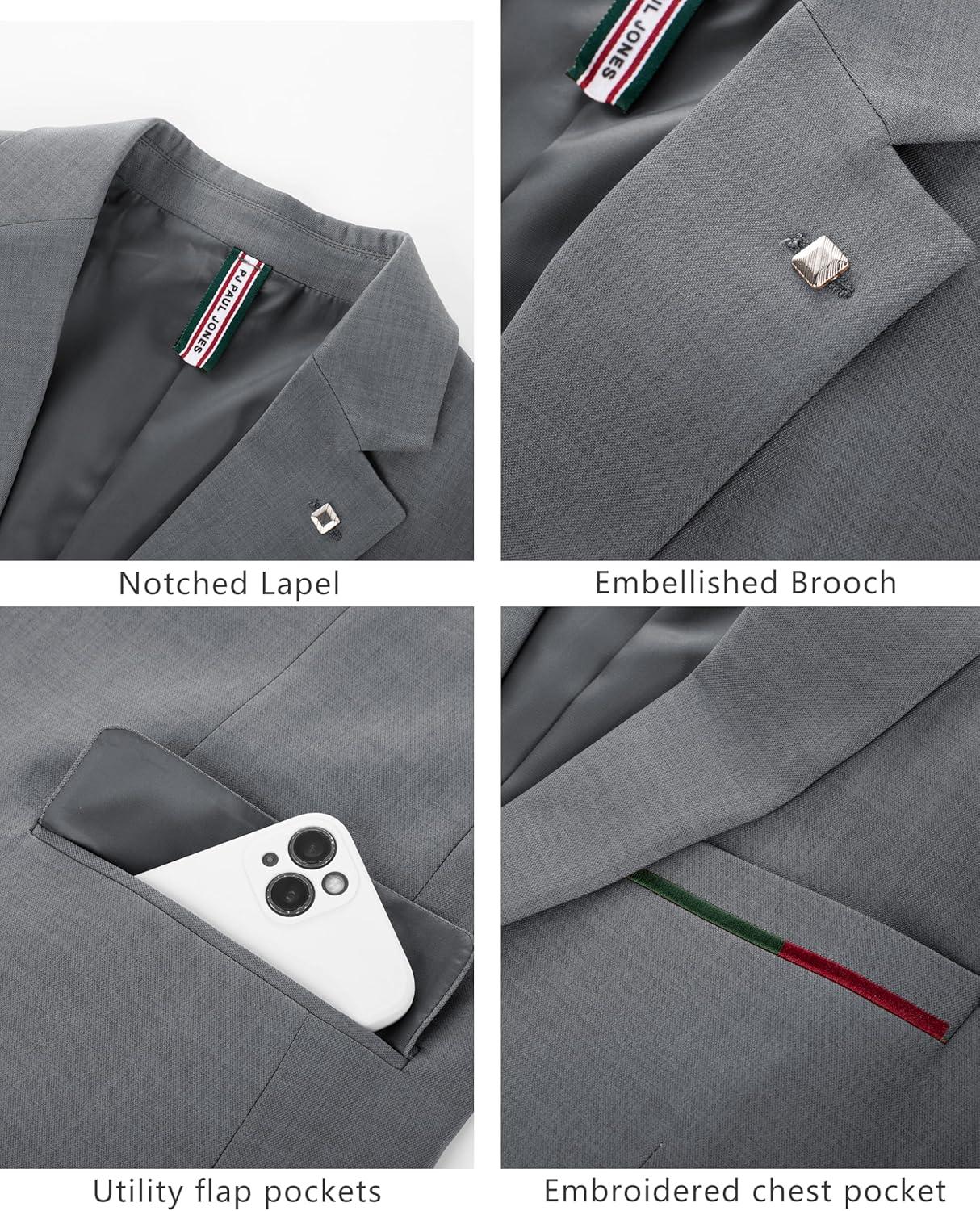 PJ PAUL JONES Mens Blazer Lightweight Sport Coats Casual Two Buttons Notched Lapel Suit Jacket with Removable Brooch(Dark Grey)