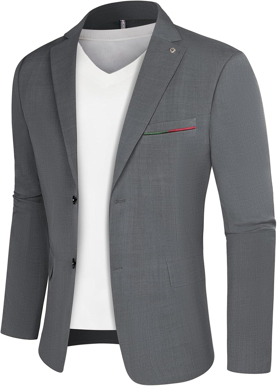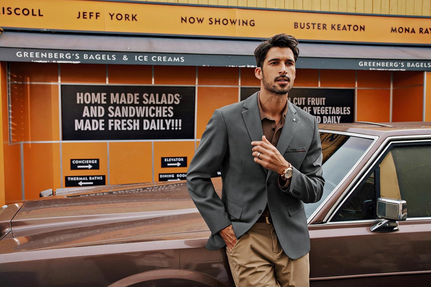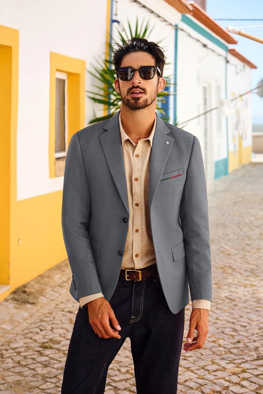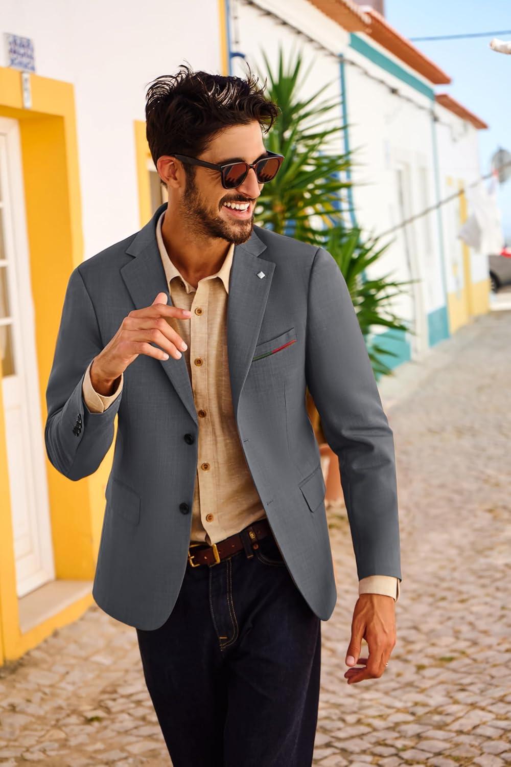 PJ PAUL JONES Mens Blazer Lightweight Sport Coats Casual Two Buttons Notched Lapel Suit Jacket with Removable Brooch(Dark Grey)