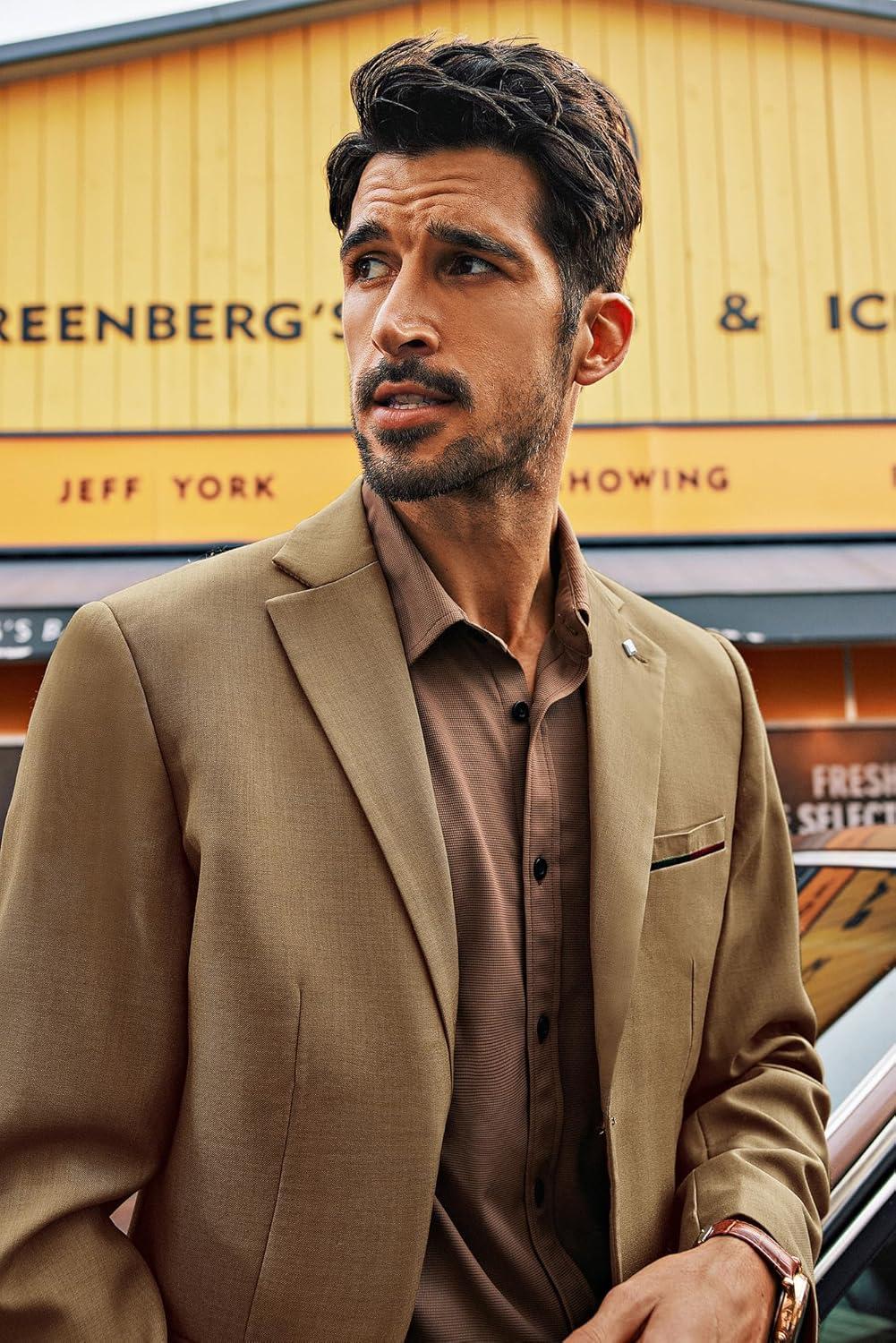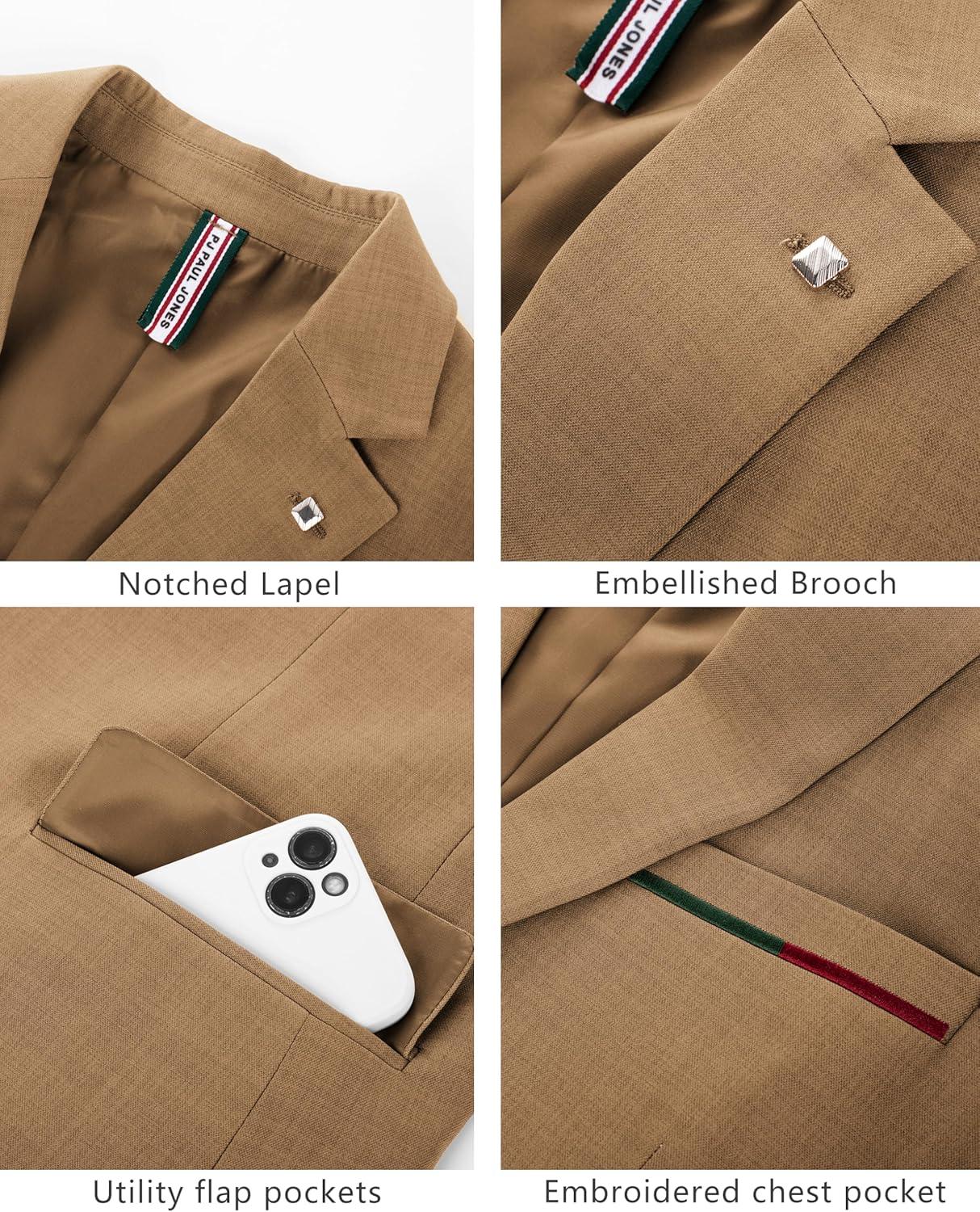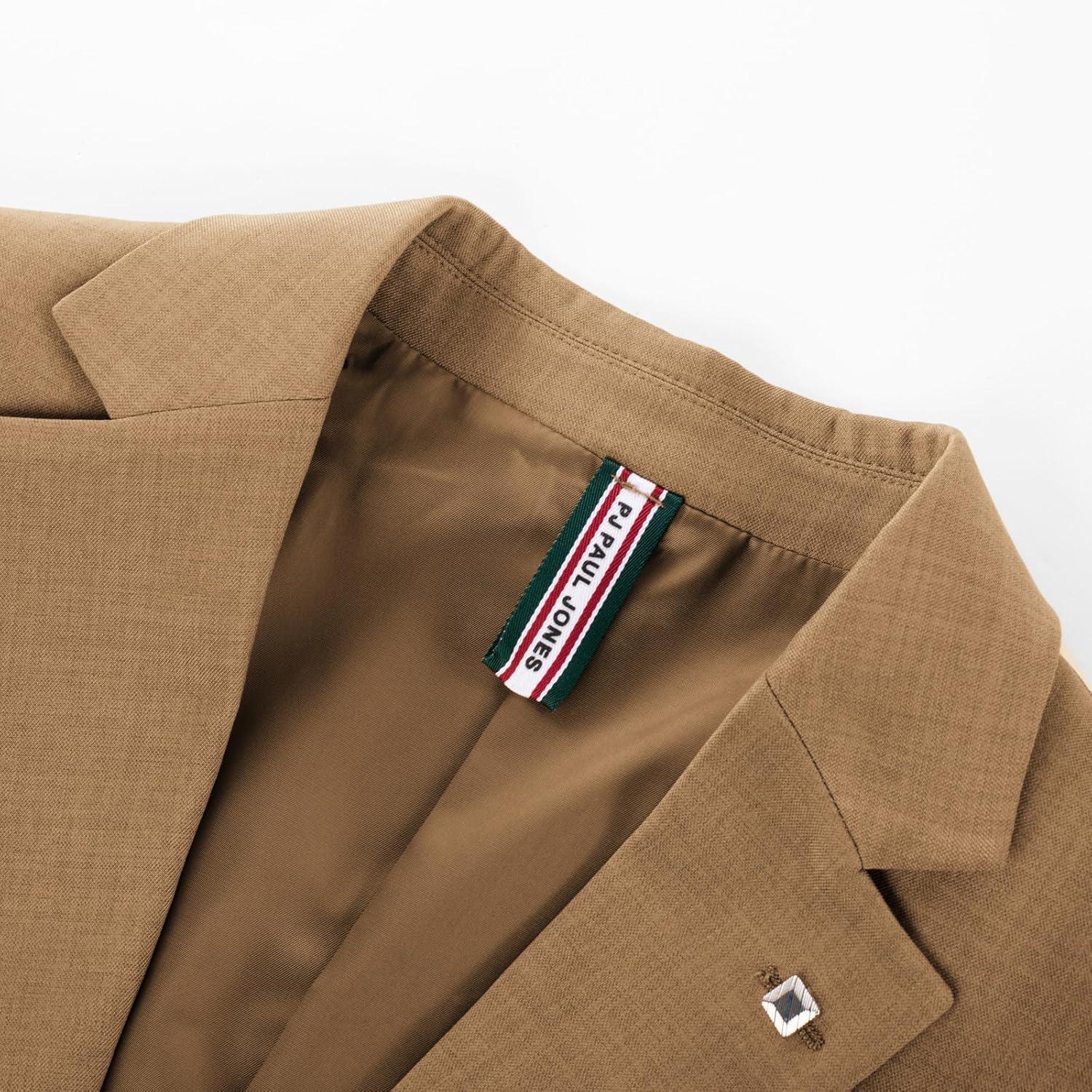 PJ PAUL JONES Mens Blazer Lightweight Sport Coats Casual Two Buttons Notched Lapel Suit Jacket with Removable Brooch(Khaki Coffee)