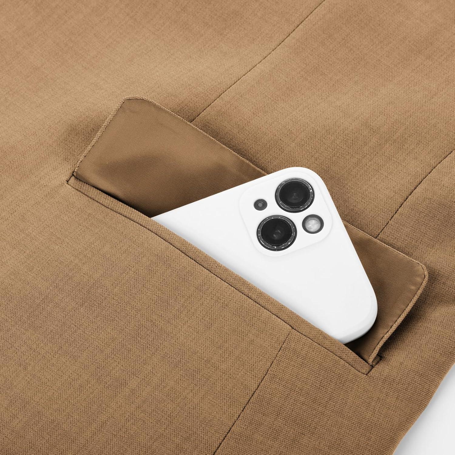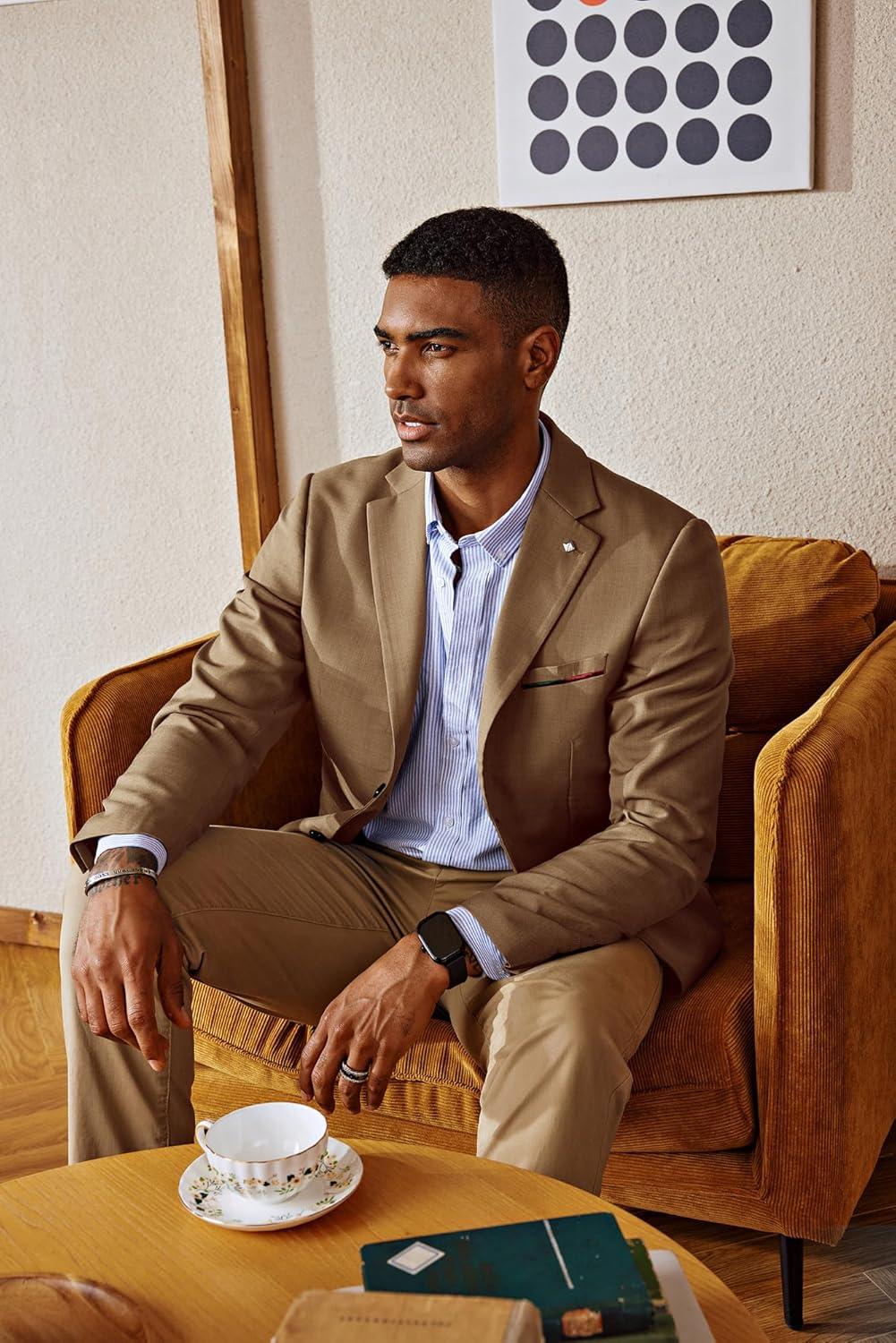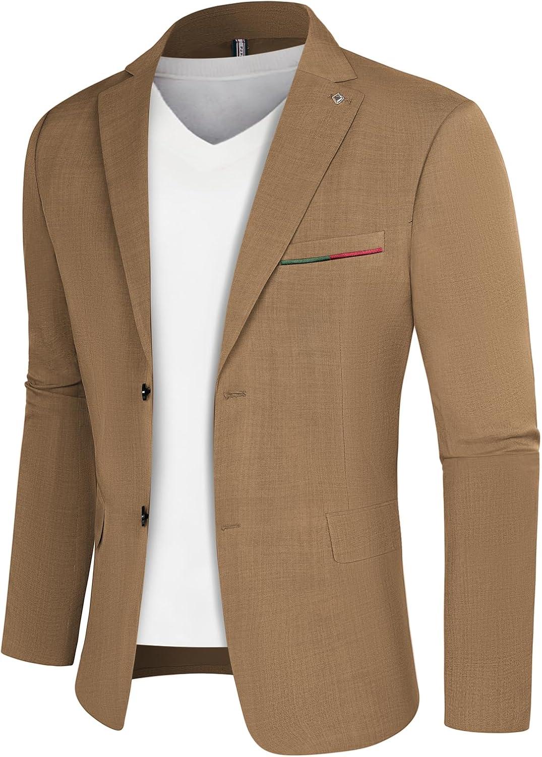 PJ PAUL JONES Mens Blazer Lightweight Sport Coats Casual Two Buttons Notched Lapel Suit Jacket with Removable Brooch(Khaki Coffee)