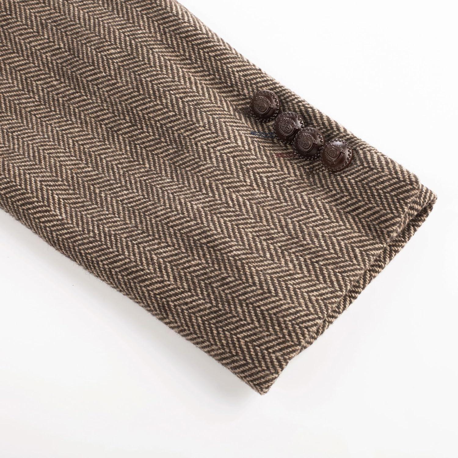 PJ PAUL JONES Mens Blazer Vintage Herringbone Tweed Blazer Two Button Wool Blend Sport Coat with Pocket Square(Coffee+khaki)
