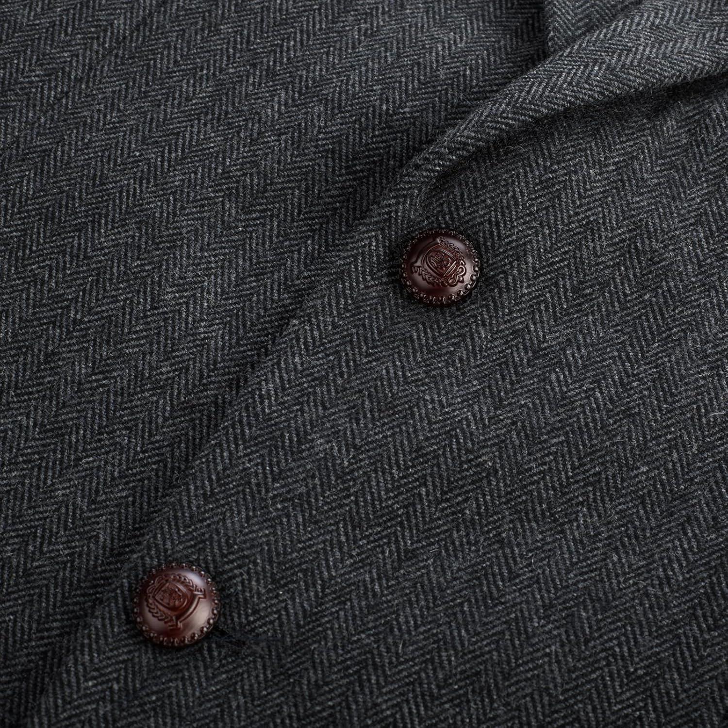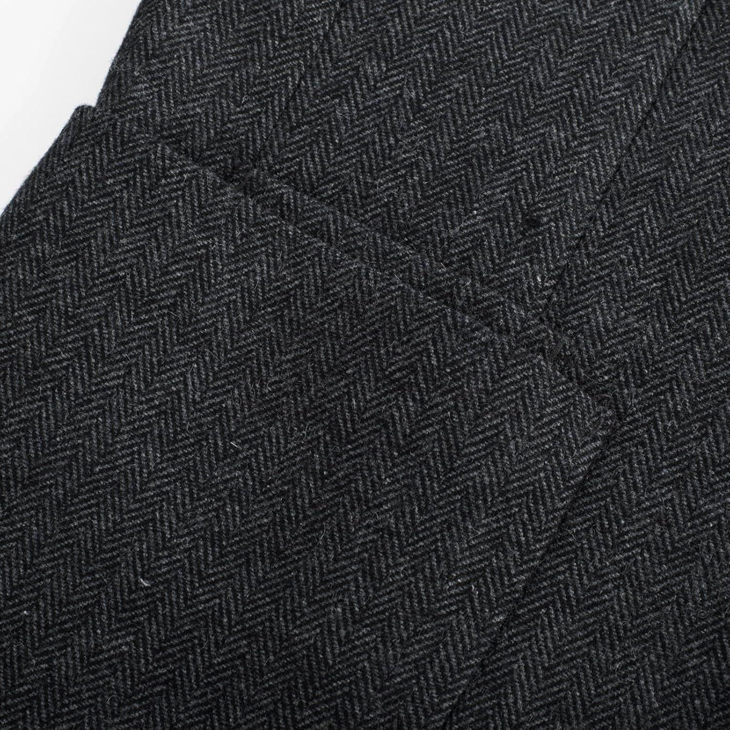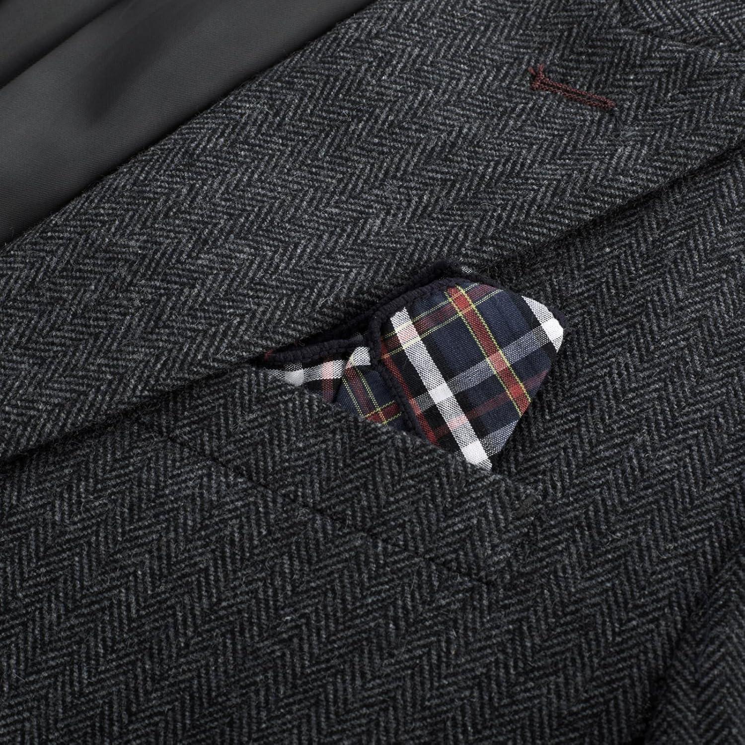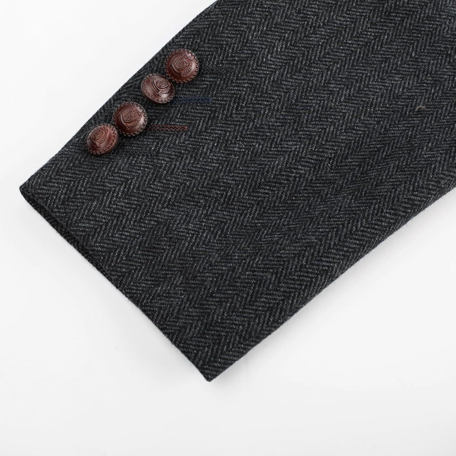 PJ PAUL JONES Mens Blazer Vintage Herringbone Tweed Blazer Two Button Wool Blend Sport Coat with Pocket Square(Dark Grey)