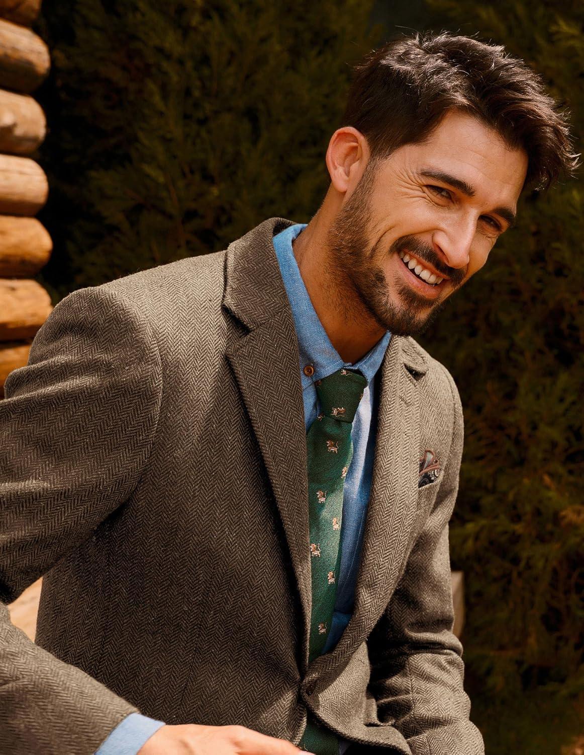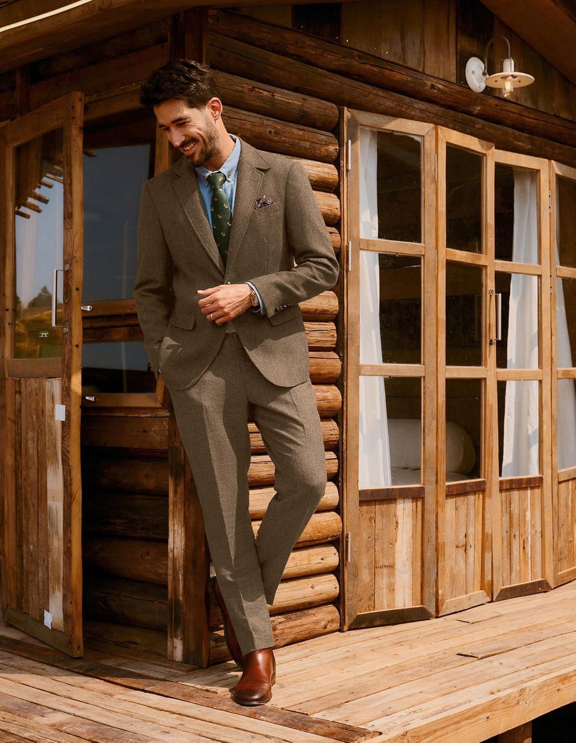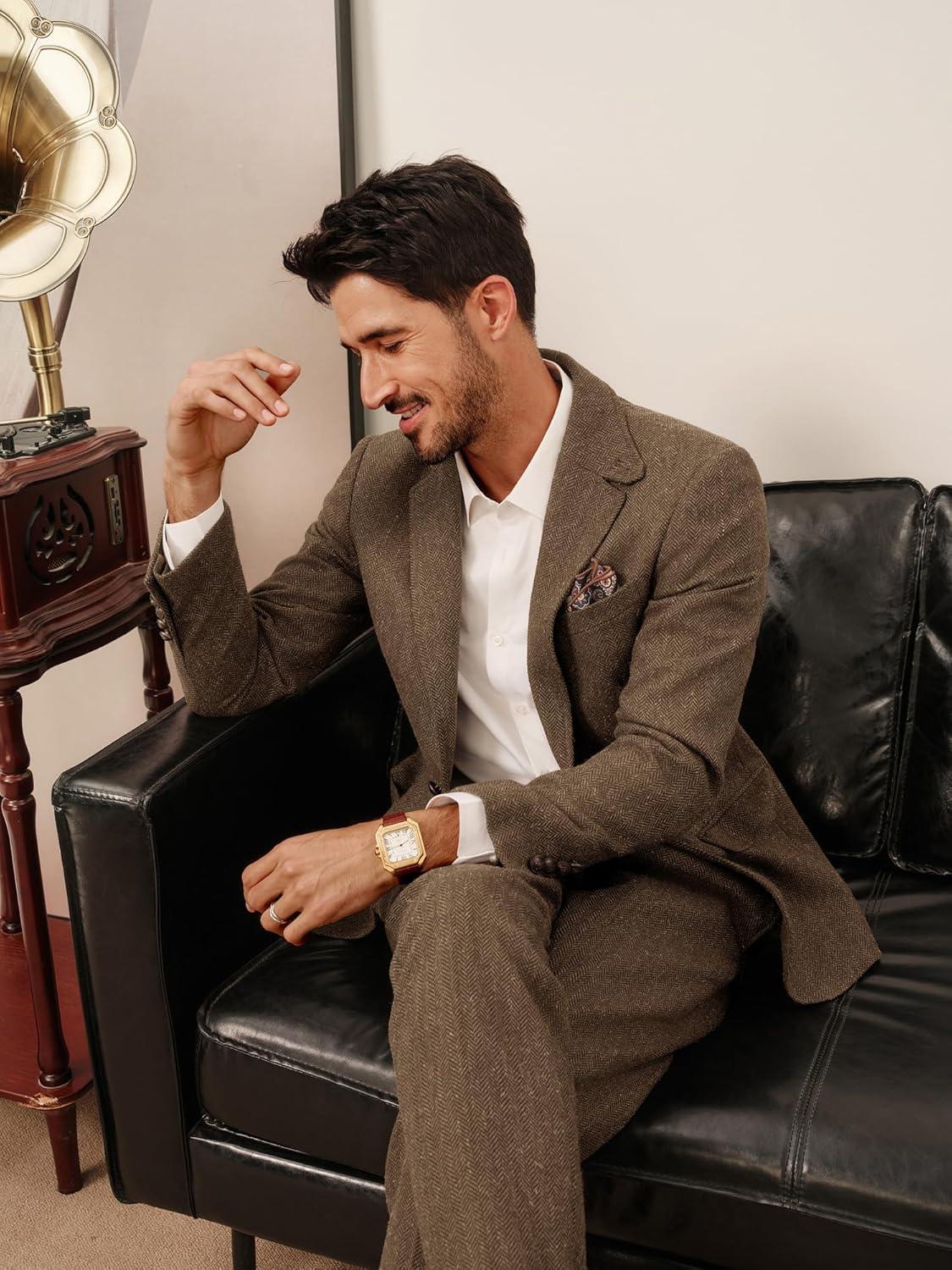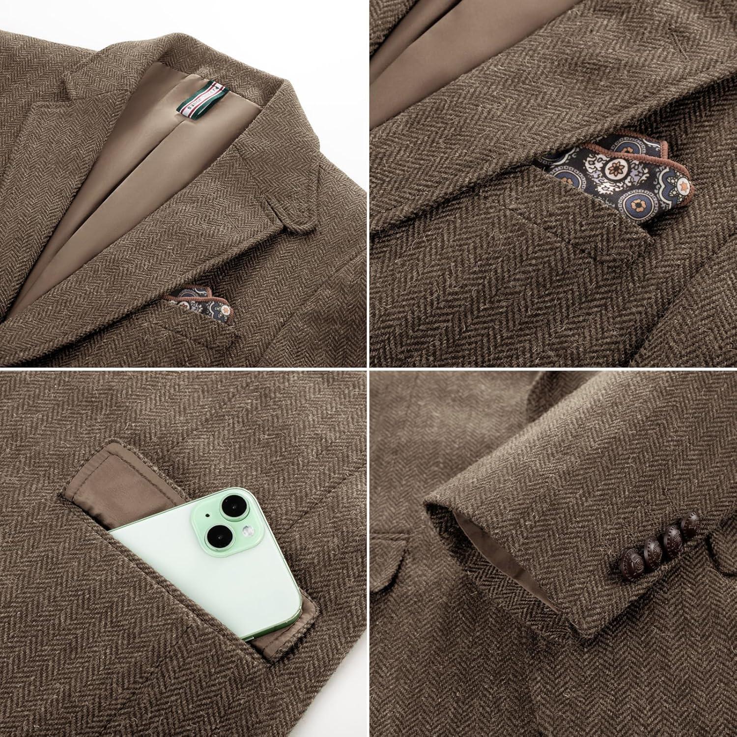 PJ PAUL JONES Mens Blazer Vintage Wool Blend Sport Coat Herringbone Tweed Blazer Suit Jacket with Pocket Square(Khaki)