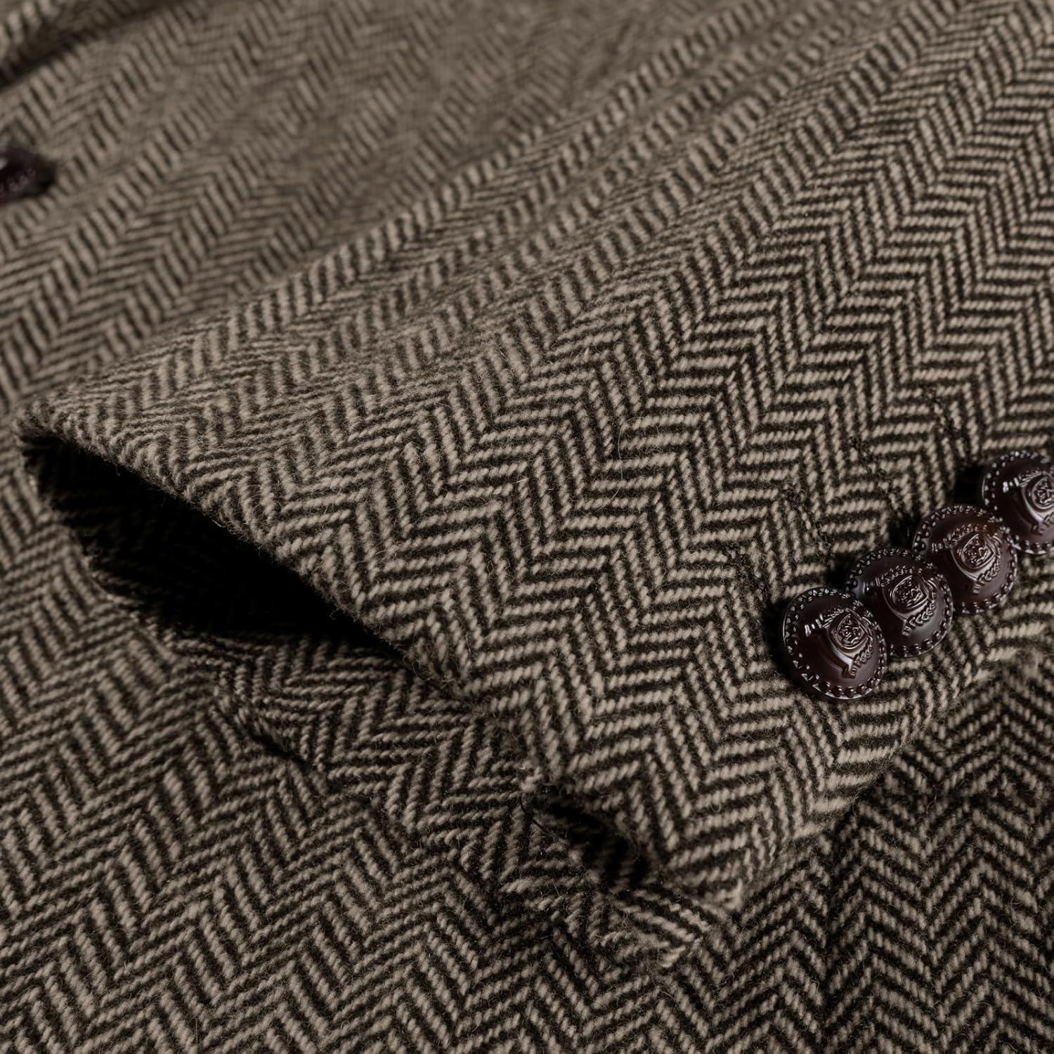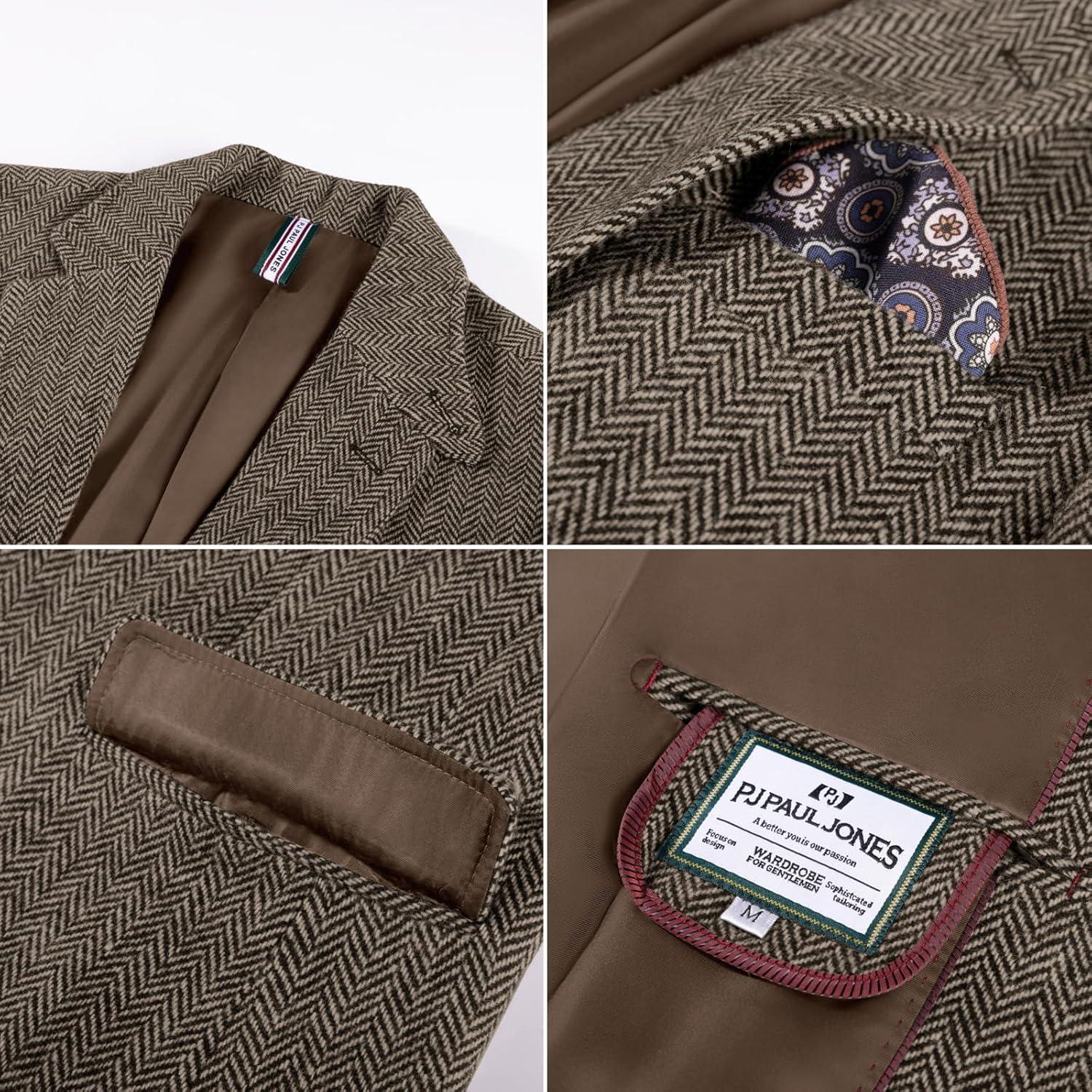 PJ PAUL JONES Mens Blazer Vintage Wool Blend Sport Coat Herringbone Tweed Blazer Suit Jacket with Pocket Square(Light Coffee)