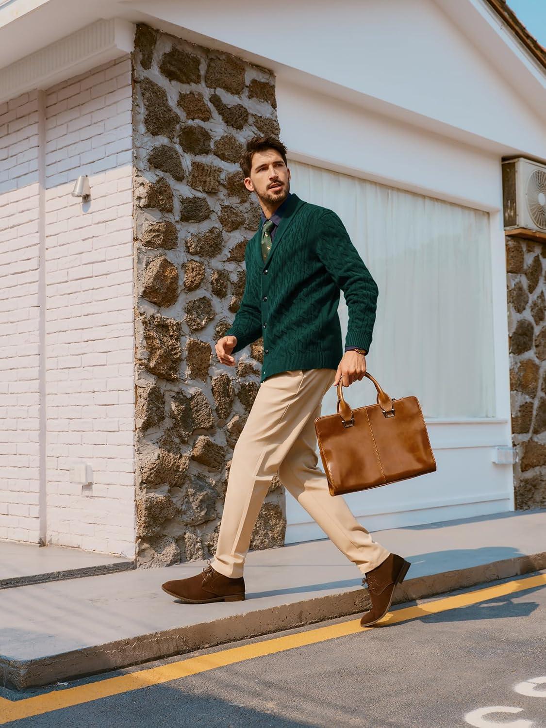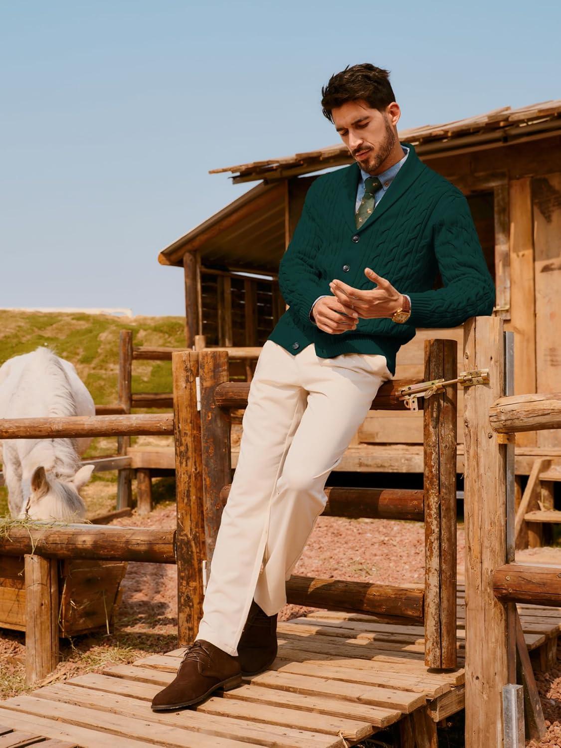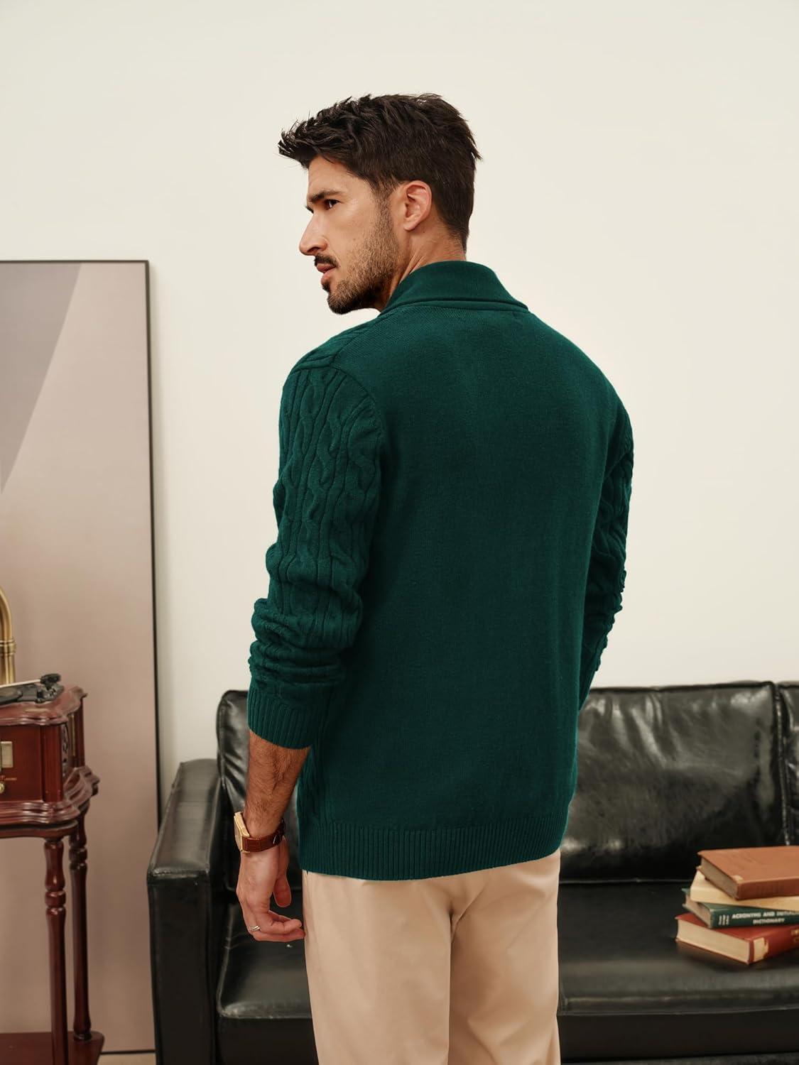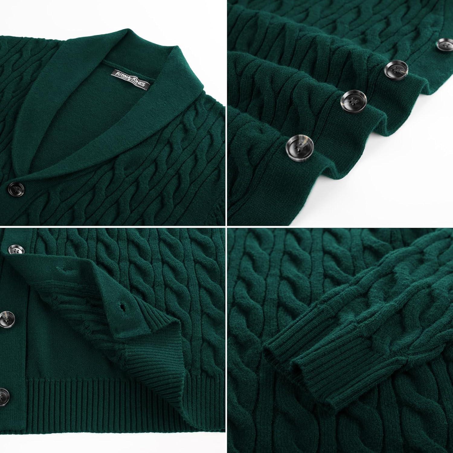 PJ PAUL JONES Mens Cardigan Sweater Cable Knit Sweaters Shawl Collar Texture Solid Cardigans(Dark Green)