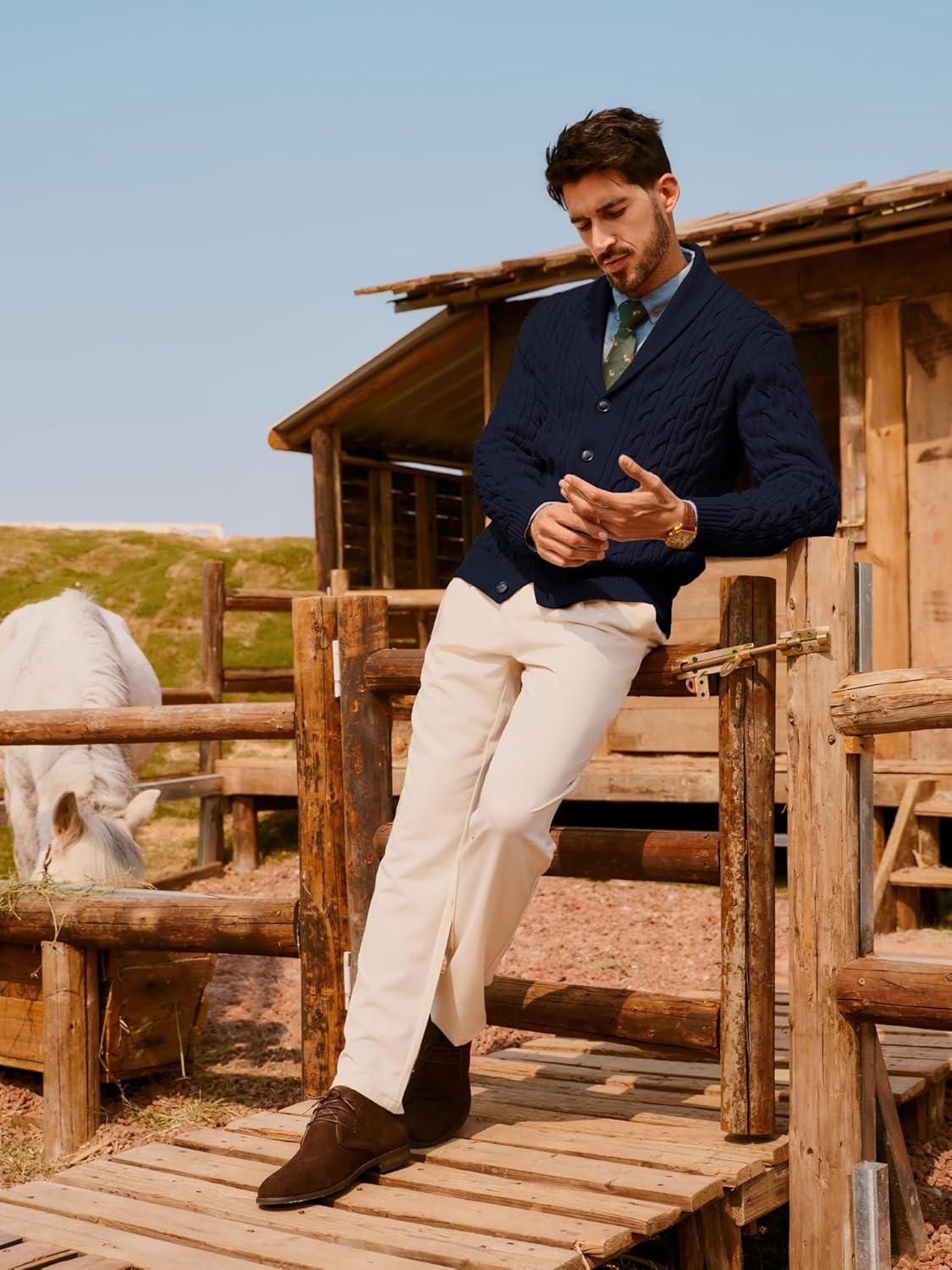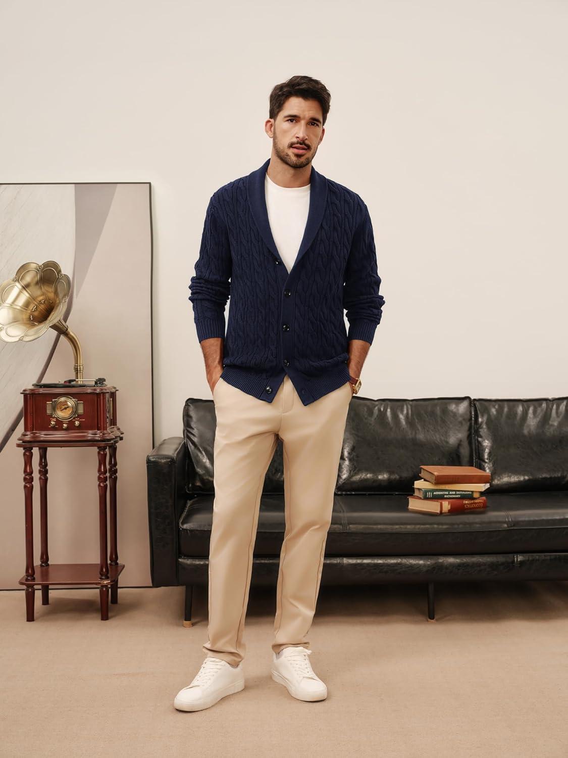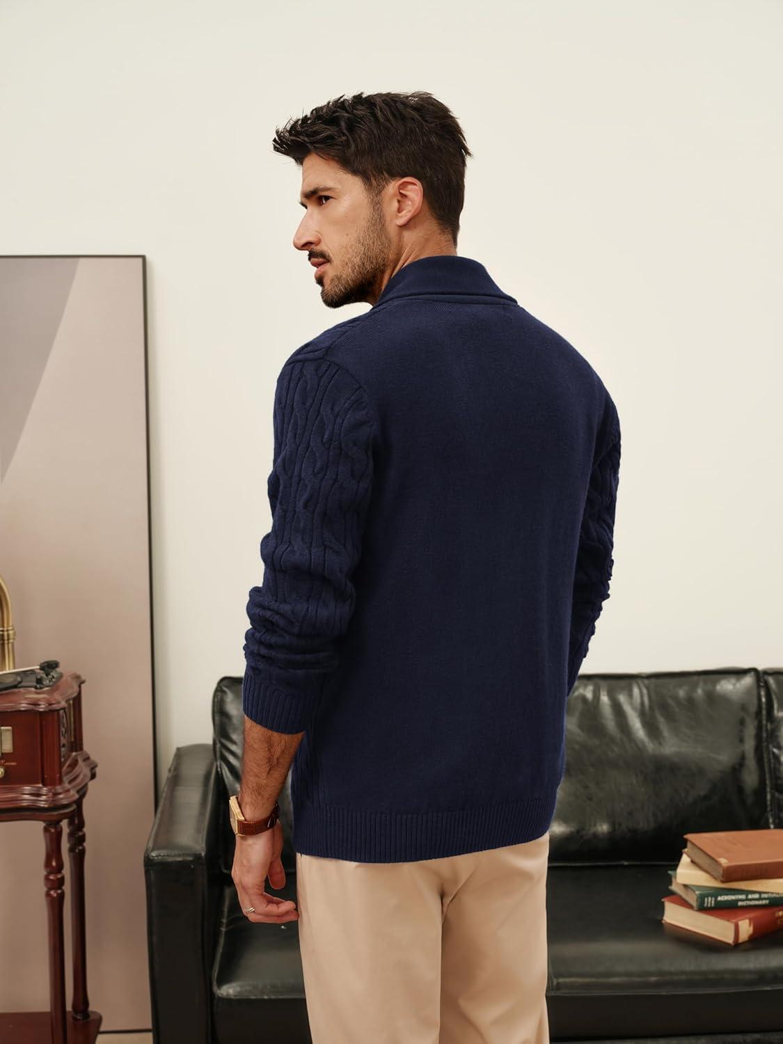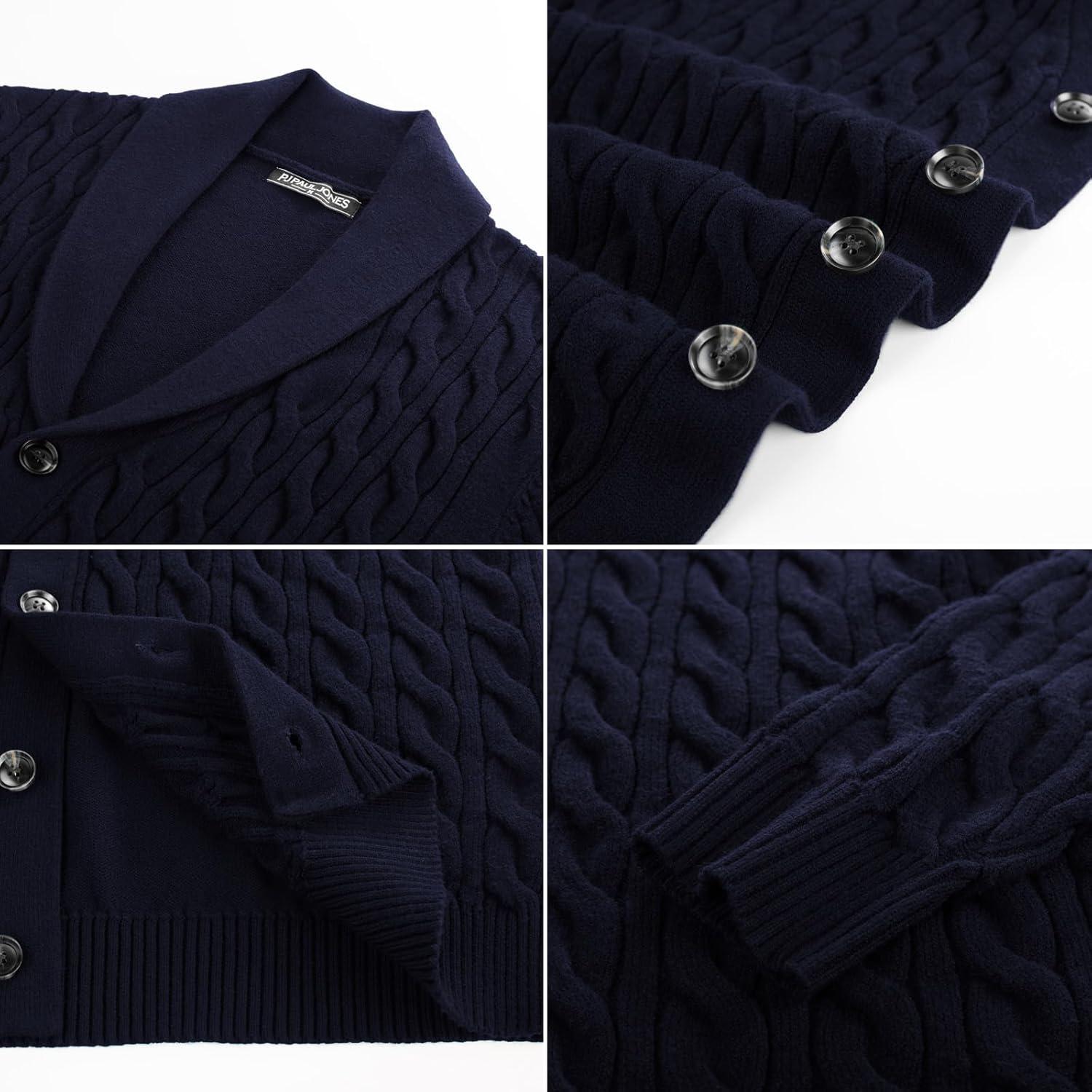 PJ PAUL JONES Mens Cardigan Sweater Cable Knit Sweaters Shawl Collar Texture Solid Cardigans(Navy Blue)