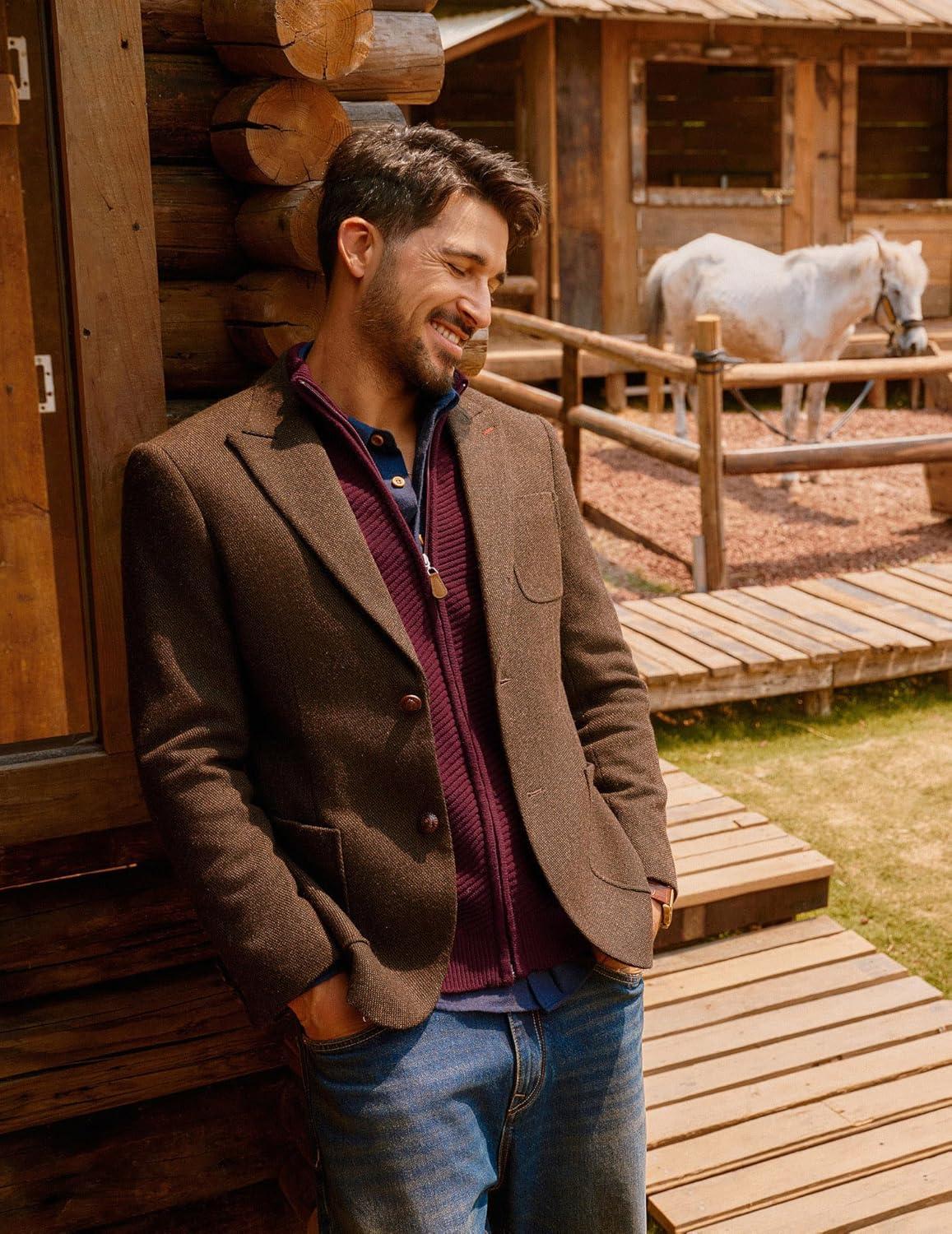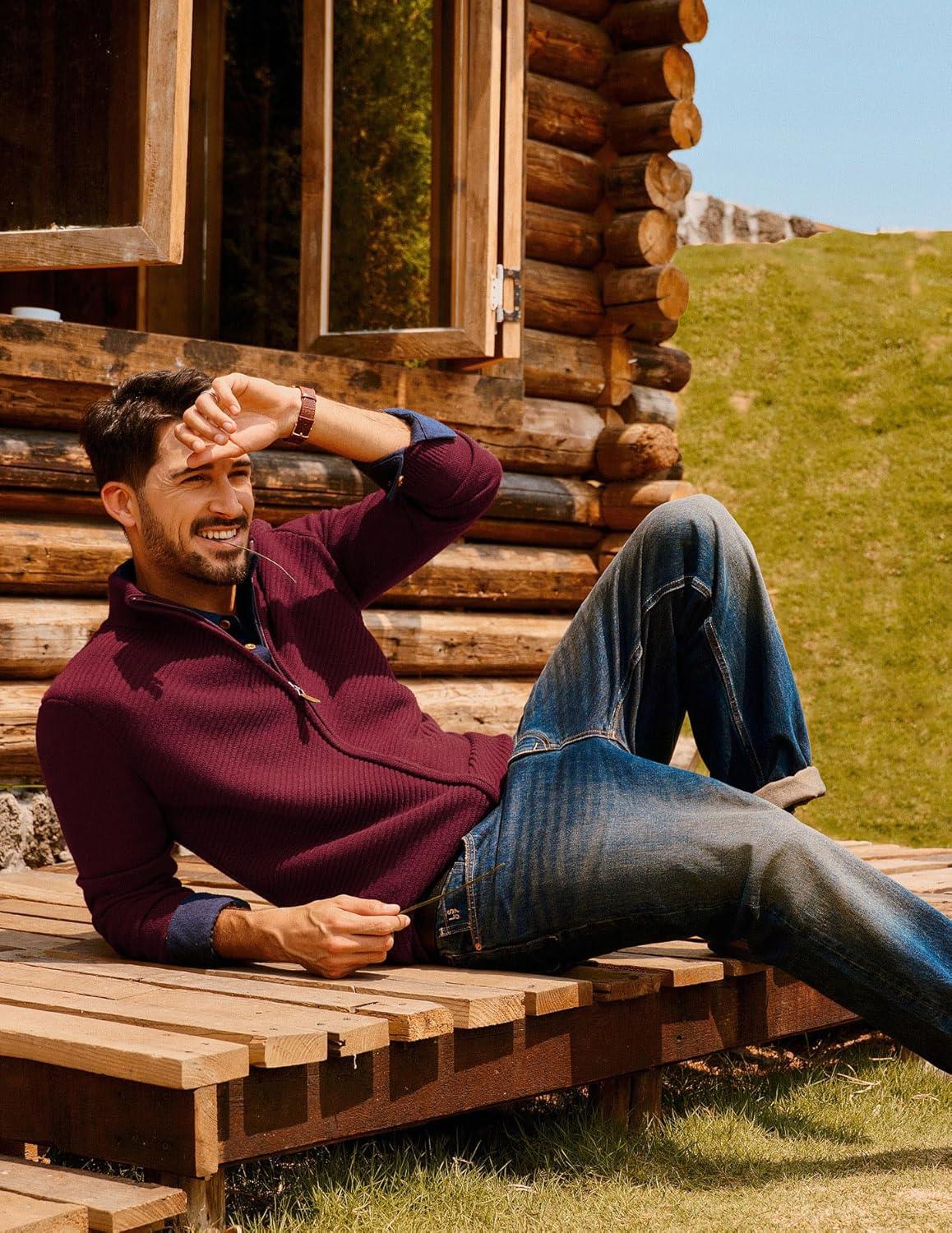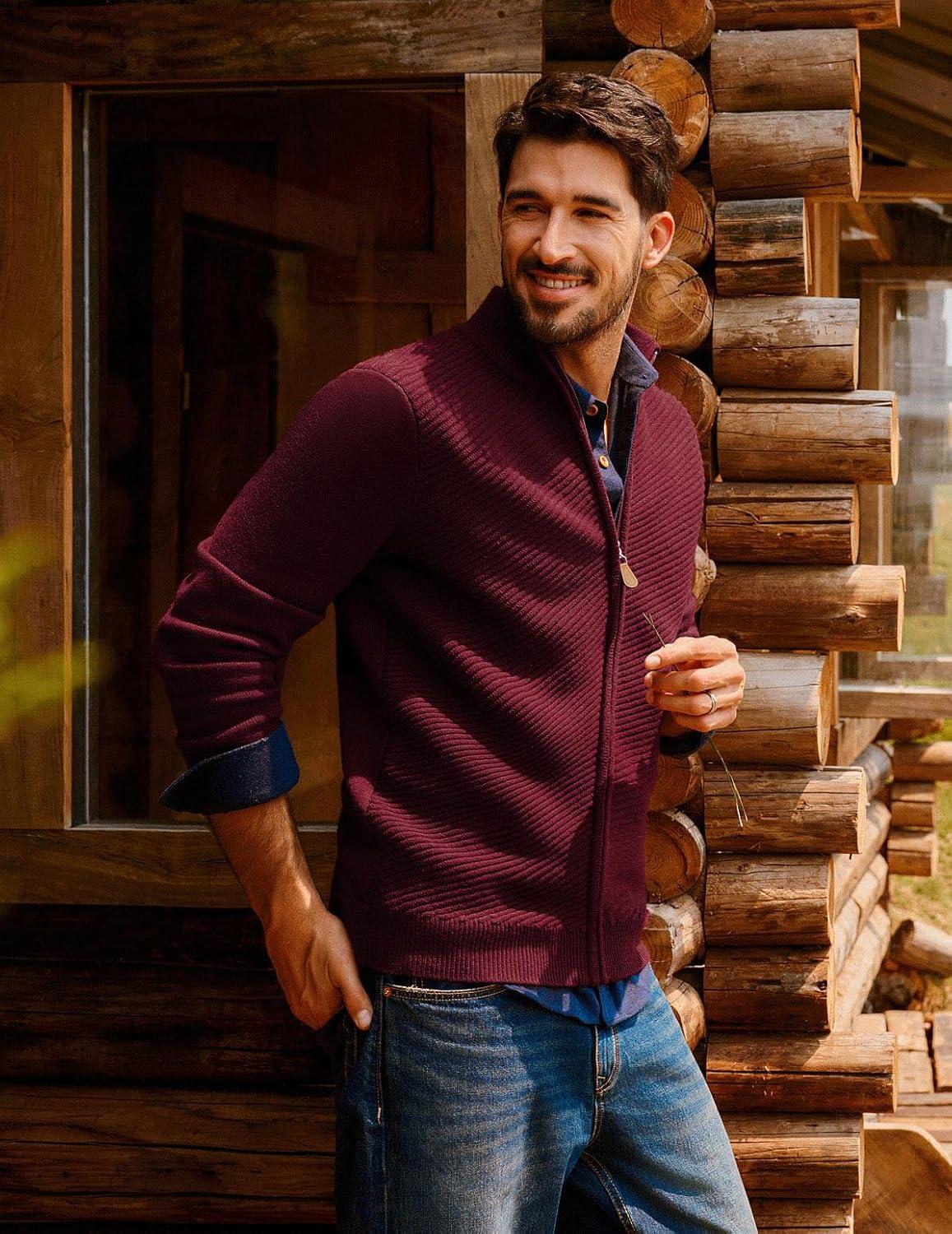 PJ PAUL JONES Mens Cardigan Sweater Full Zip Up Stand Collar Cardigans Fall Casual Knit Sweaters(Wine Red)