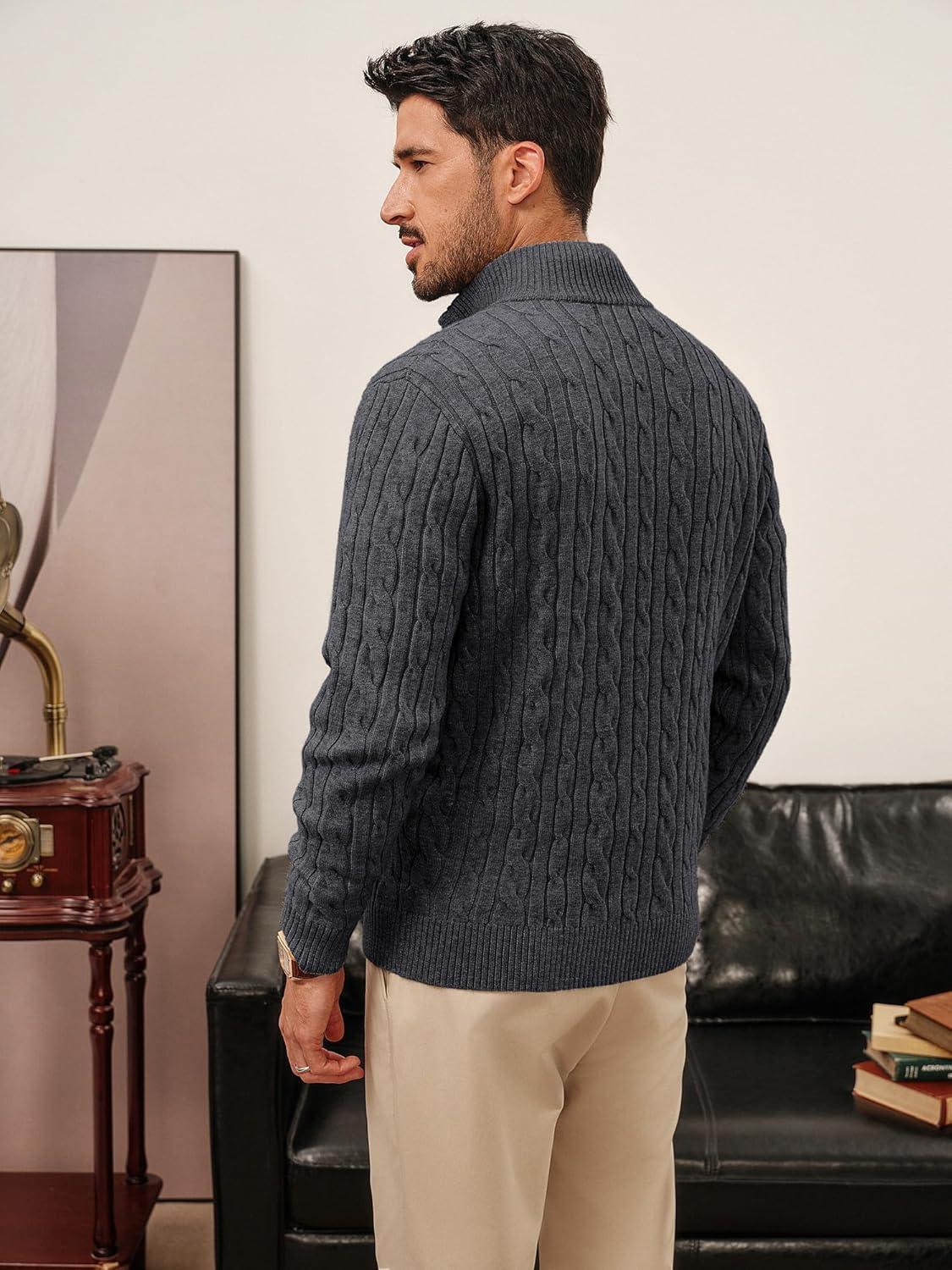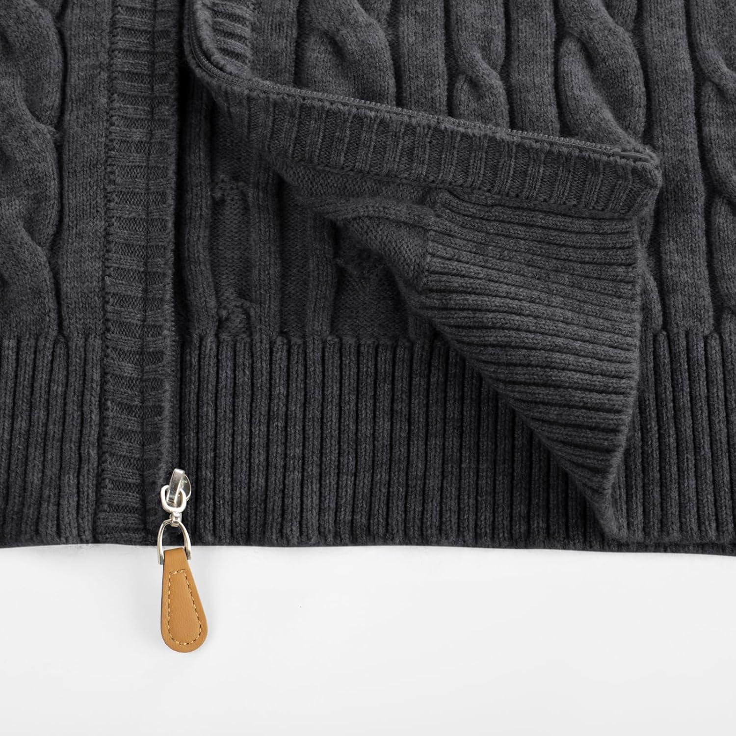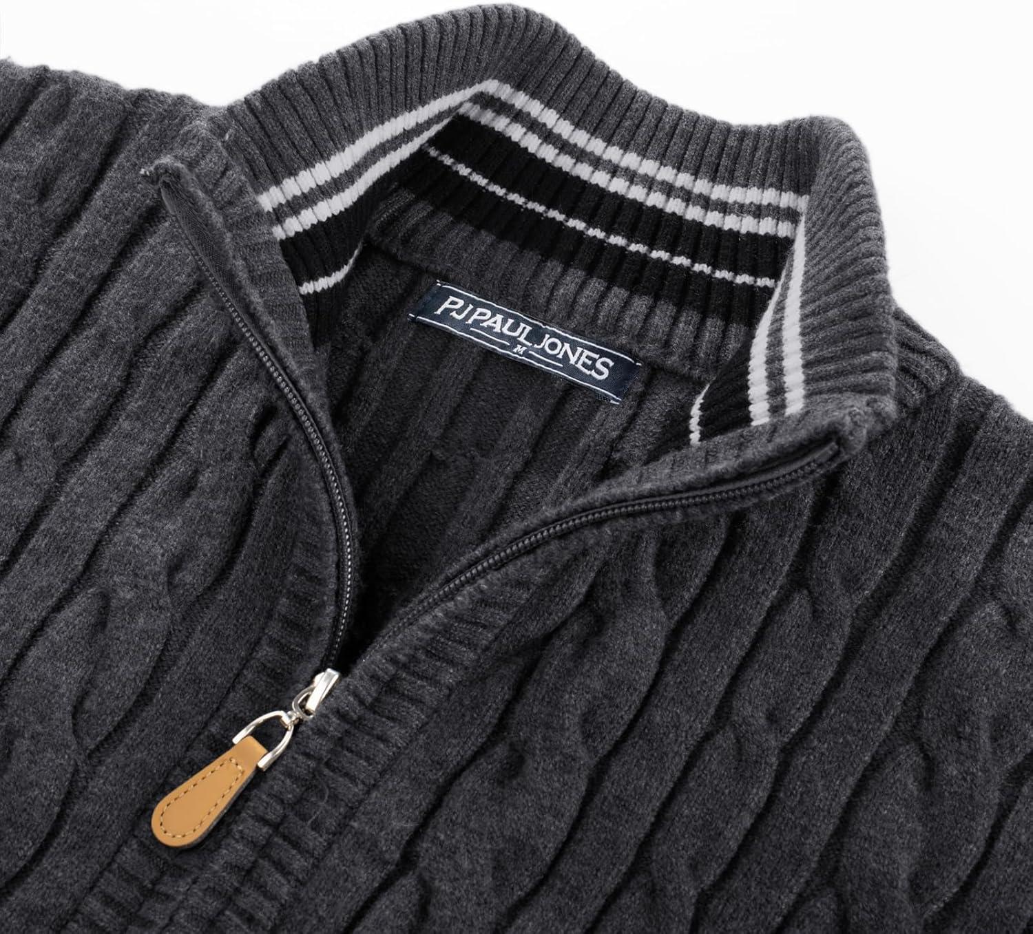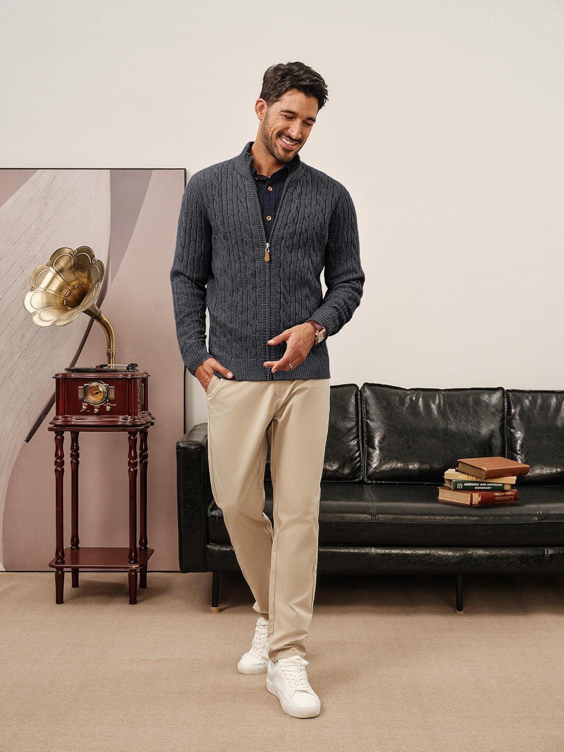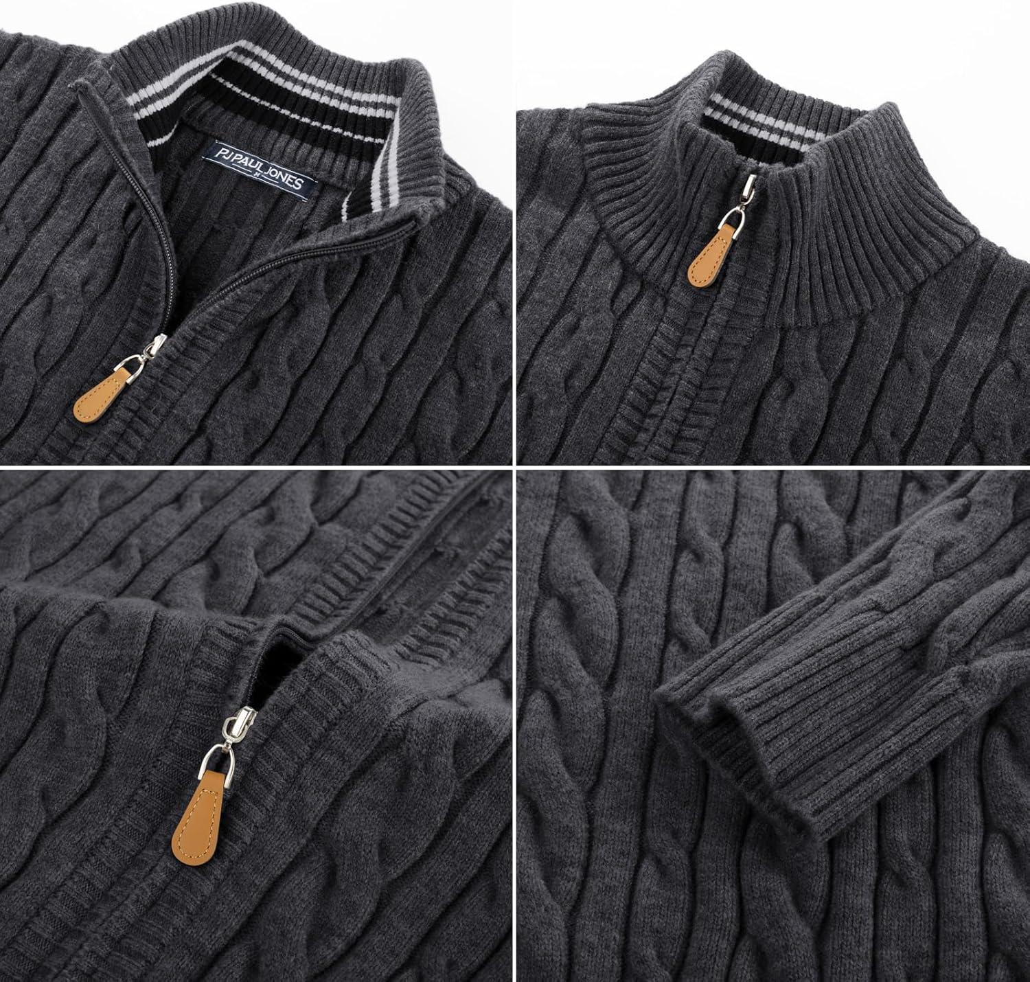 PJ PAUL JONES Mens Cardigan Sweater Full Zip Up Stand Collar Cardigans Long Sleeve Knitted Sweaters(Dark Gray)
