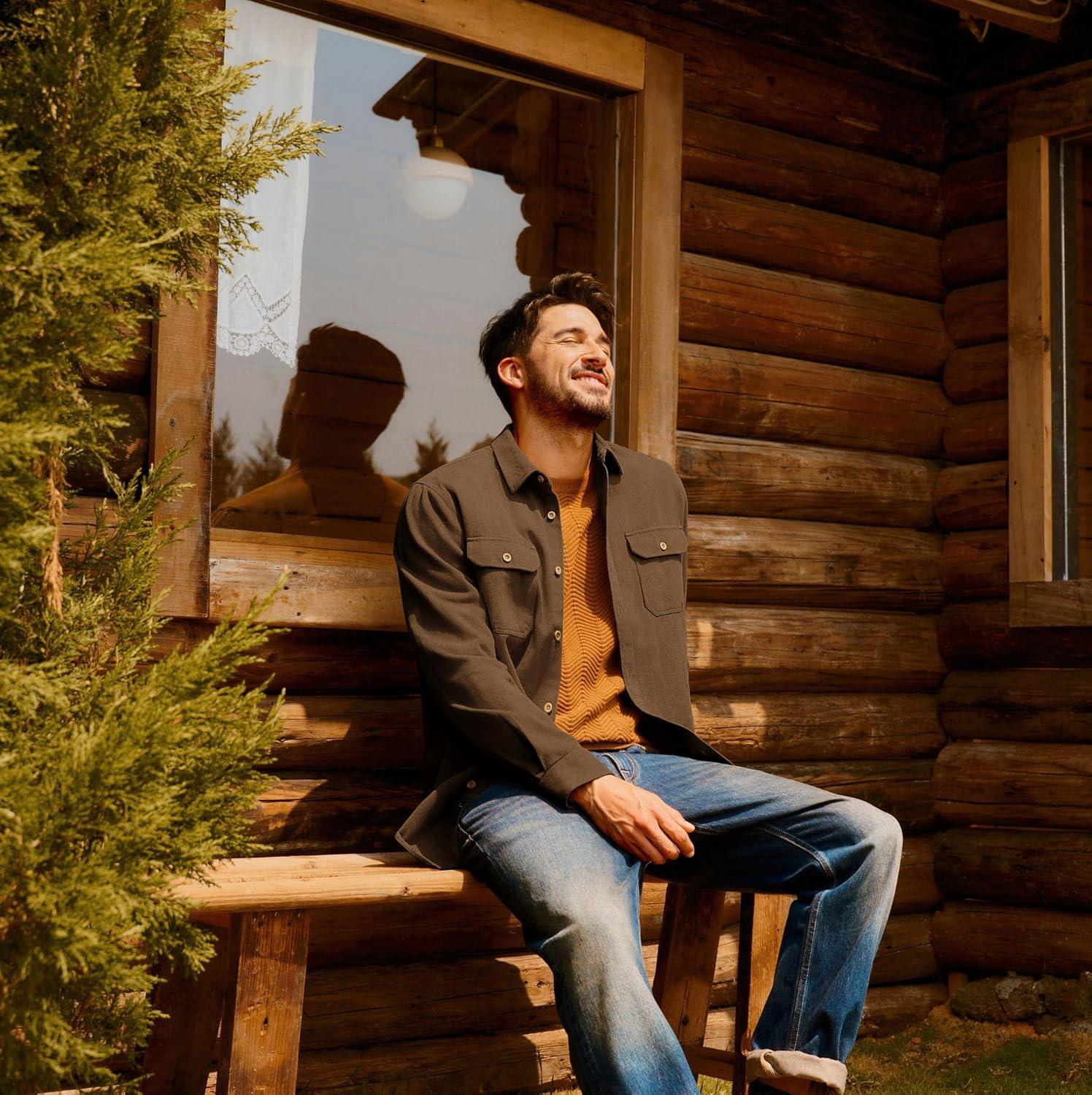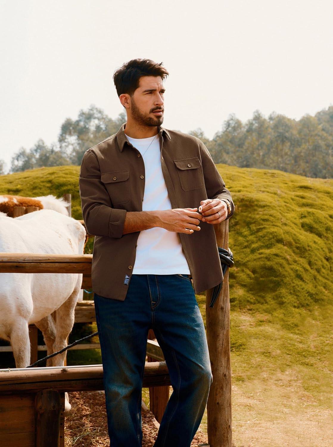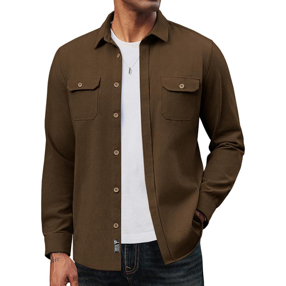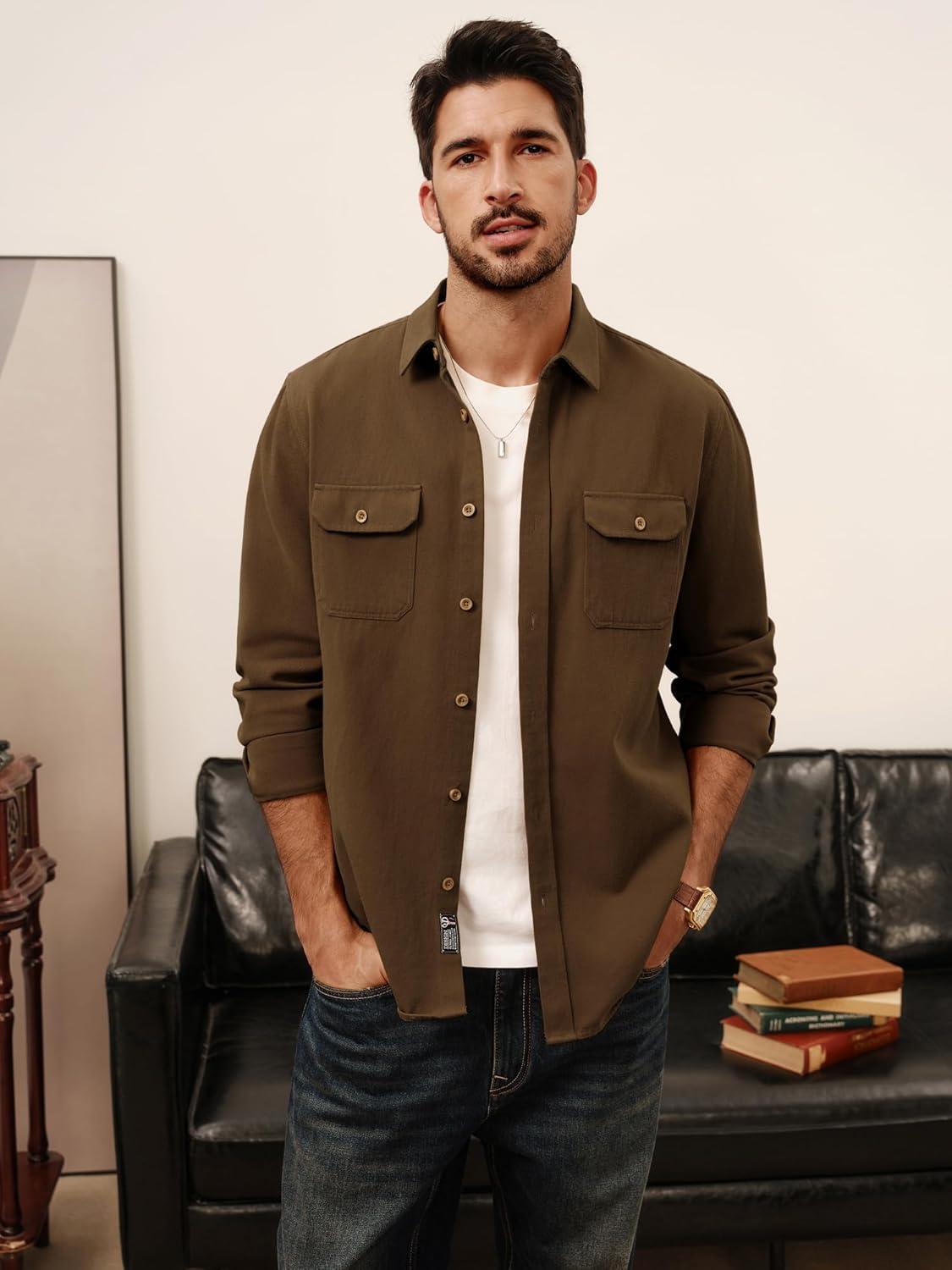 PJ PAUL JONES Mens Casual Shacket Cotton Twill Lightweight Jackets Button Down Shirt Jacket with Pockets(Coffee)