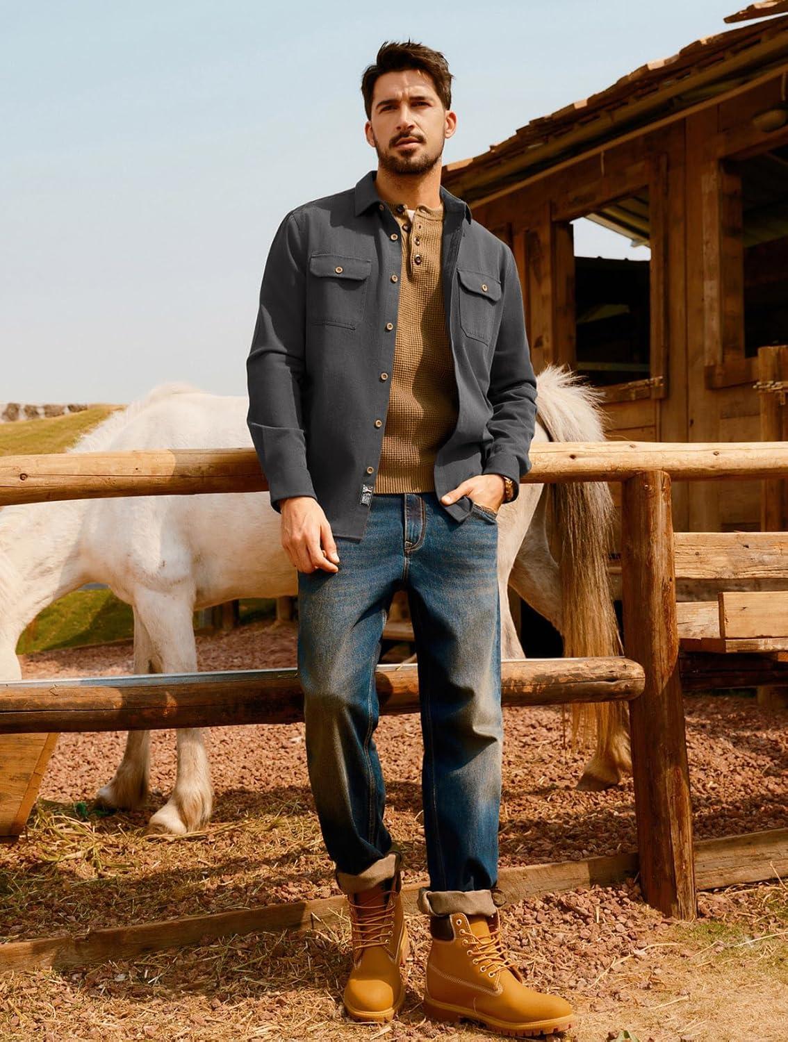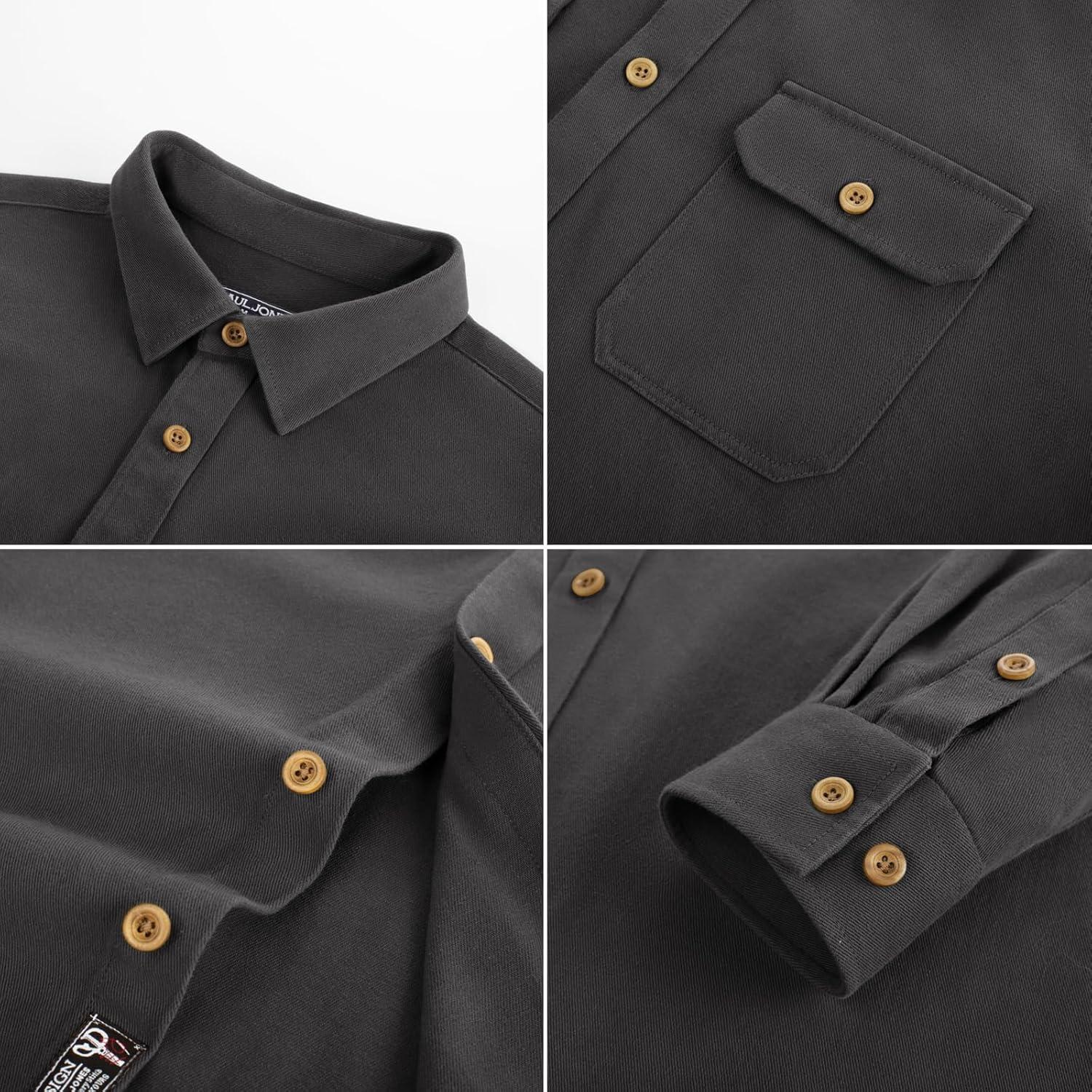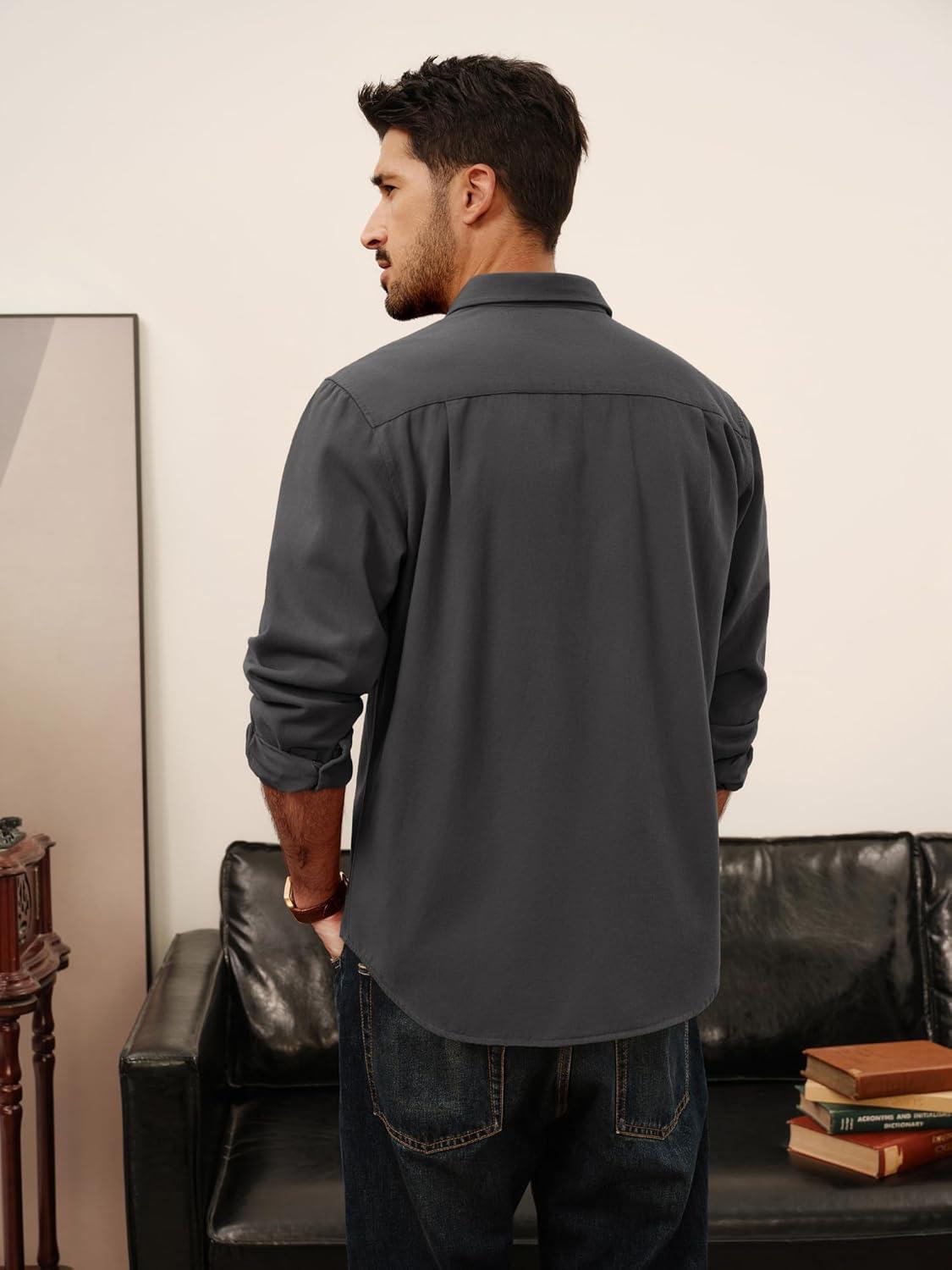 PJ PAUL JONES Mens Casual Shacket Cotton Twill Lightweight Jackets Button Down Shirt Jacket with Pockets(Dark Grey)