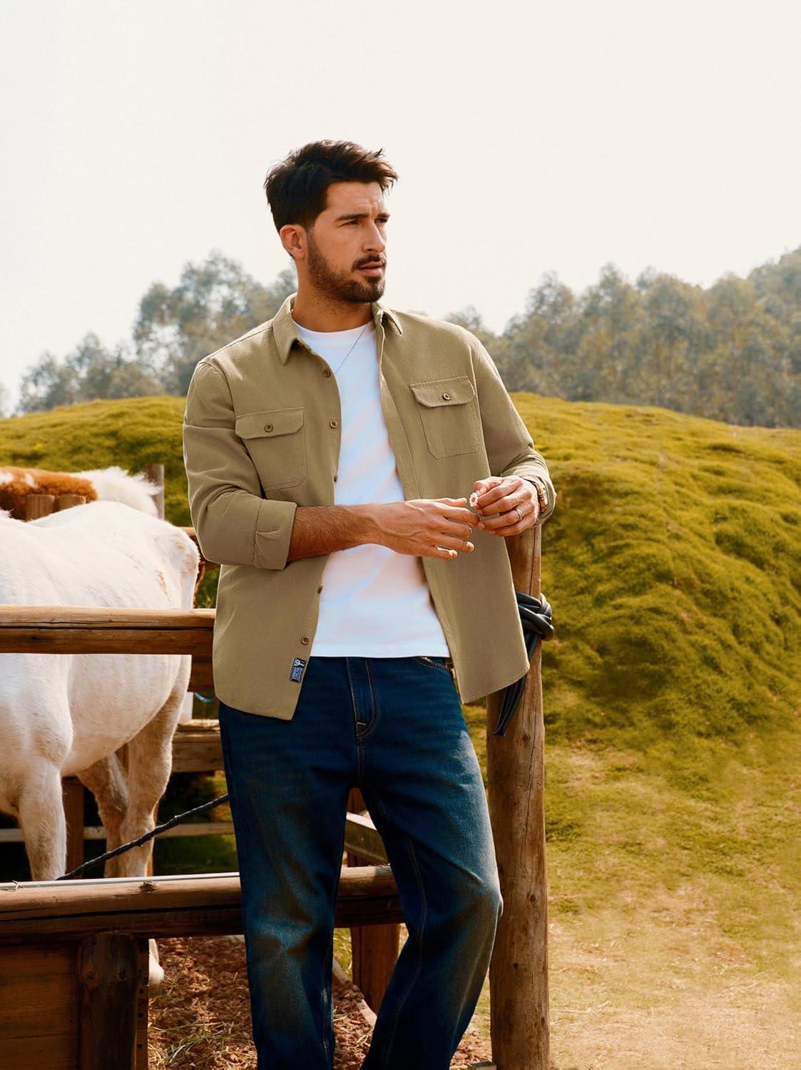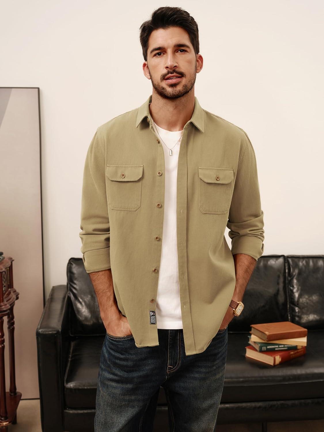 PJ PAUL JONES Mens Casual Shacket Cotton Twill Lightweight Jackets Button Down Shirt Jacket with Pockets(Khaki)