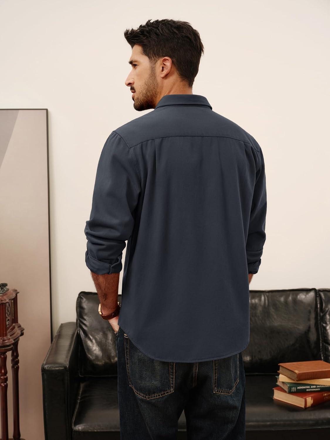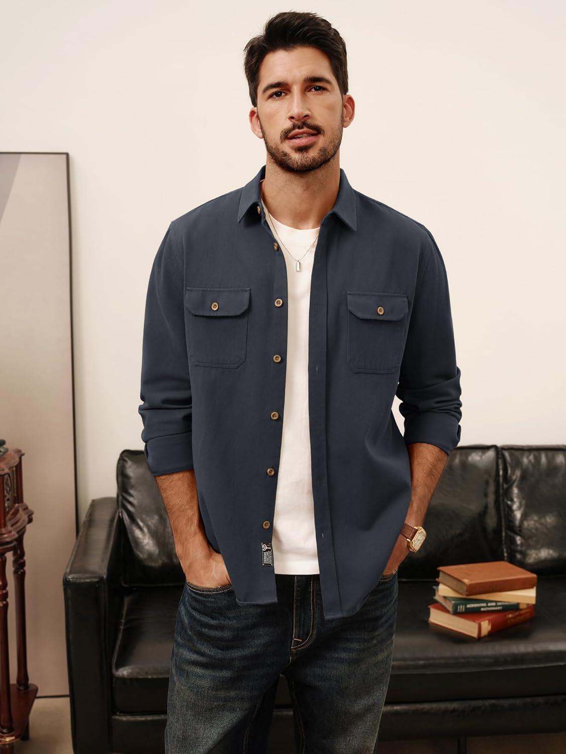 PJ PAUL JONES Mens Casual Shacket Cotton Twill Lightweight Jackets Button Down Shirt Jacket with Pockets(Navy Blue)