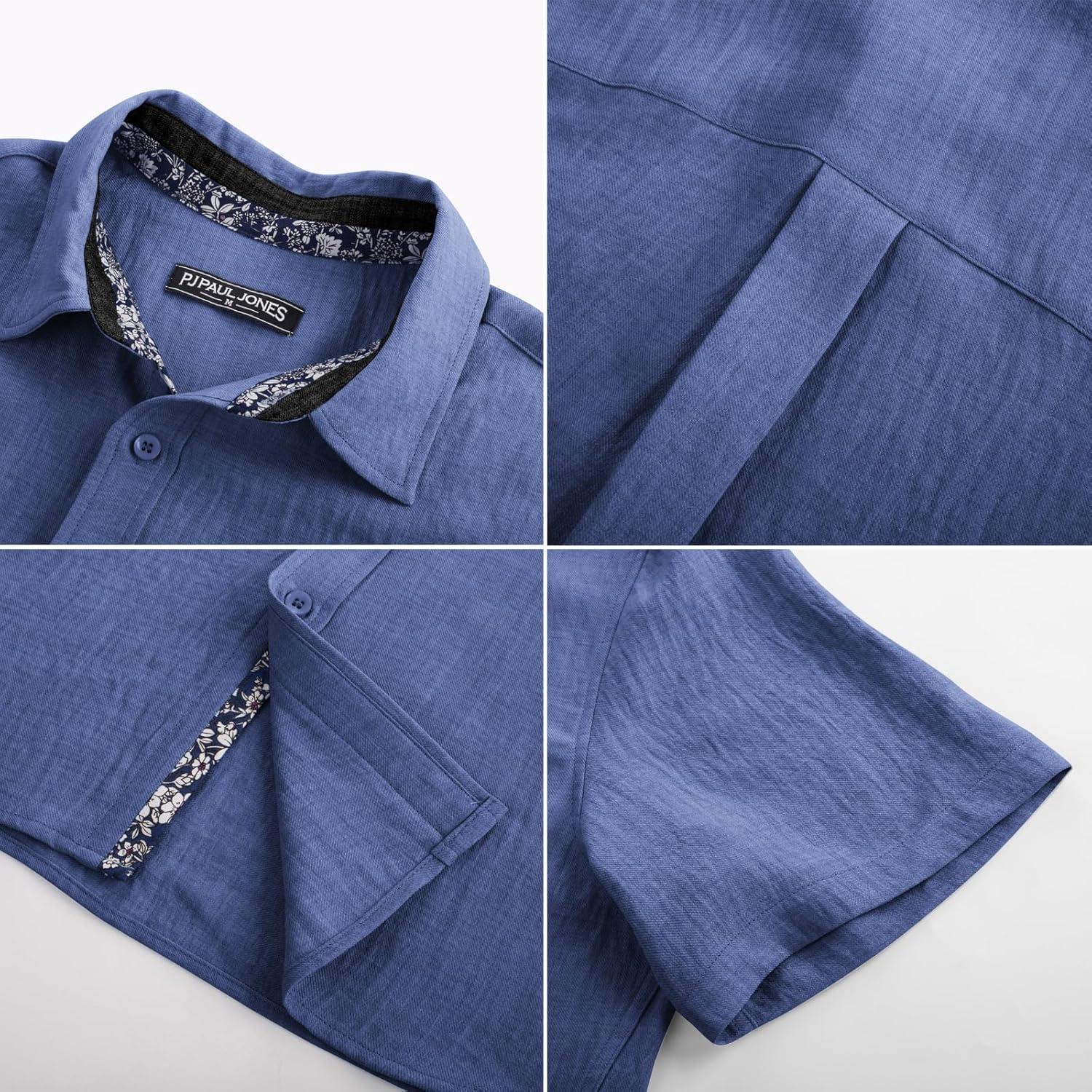 PJ PAUL JONES Men’s Casual Short Sleeve Button Down Shirt Summer Beach Wedding Shirt(Denim Blue)