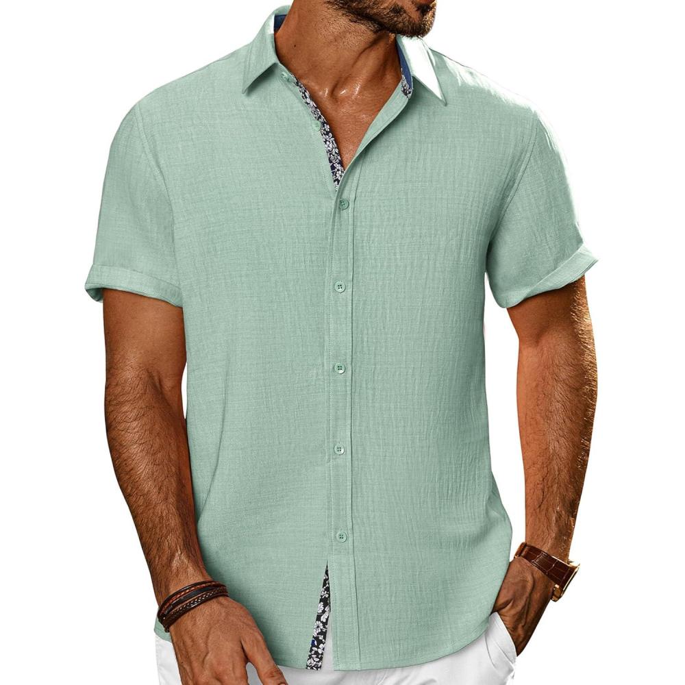 PJ PAUL JONES Men’s Casual Short Sleeve Button Down Shirt Summer Beach Wedding Shirt(Light Green)