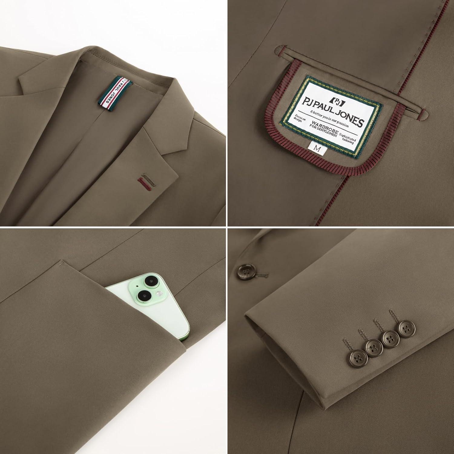PJ PAUL JONES Men’s Casual Sport Coats One Button Slim Fit Blazer Lightweight Notched Lapel Solid Suit Jacket(Khaki)