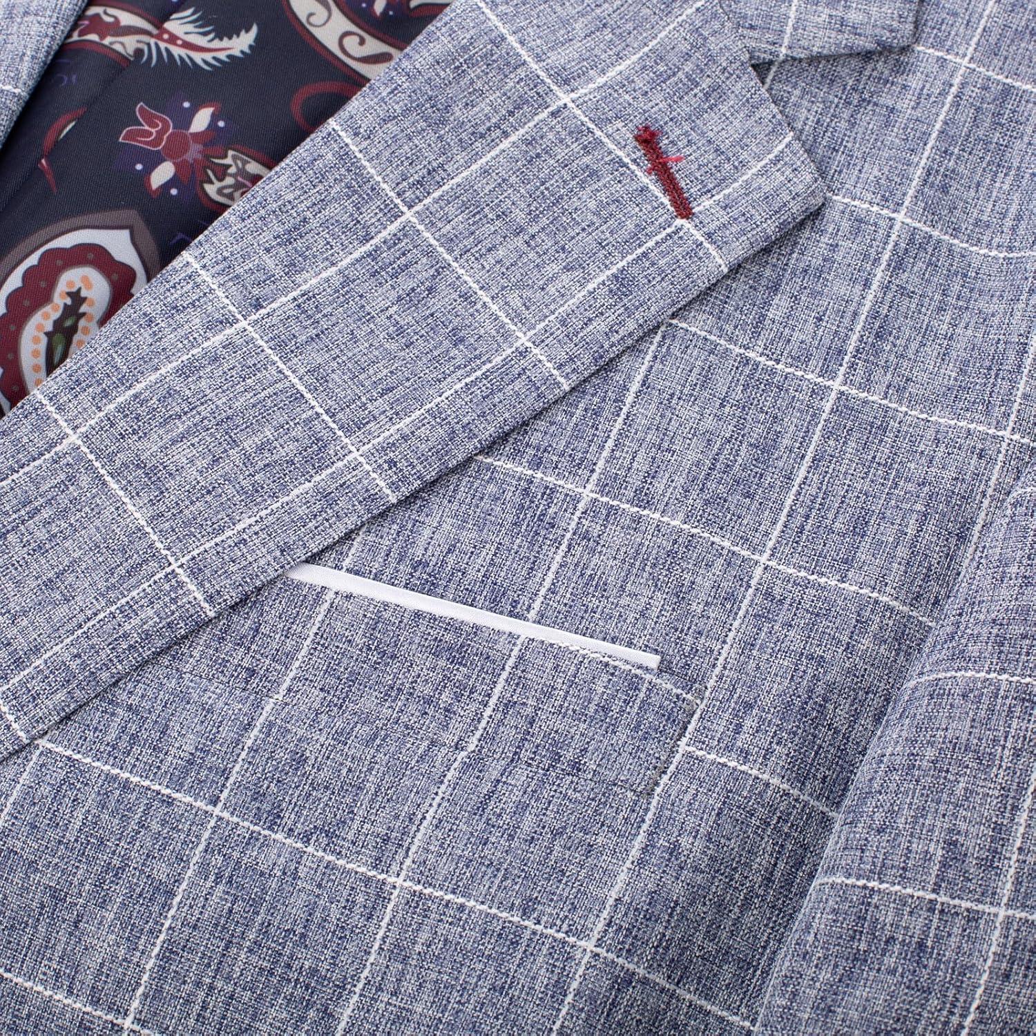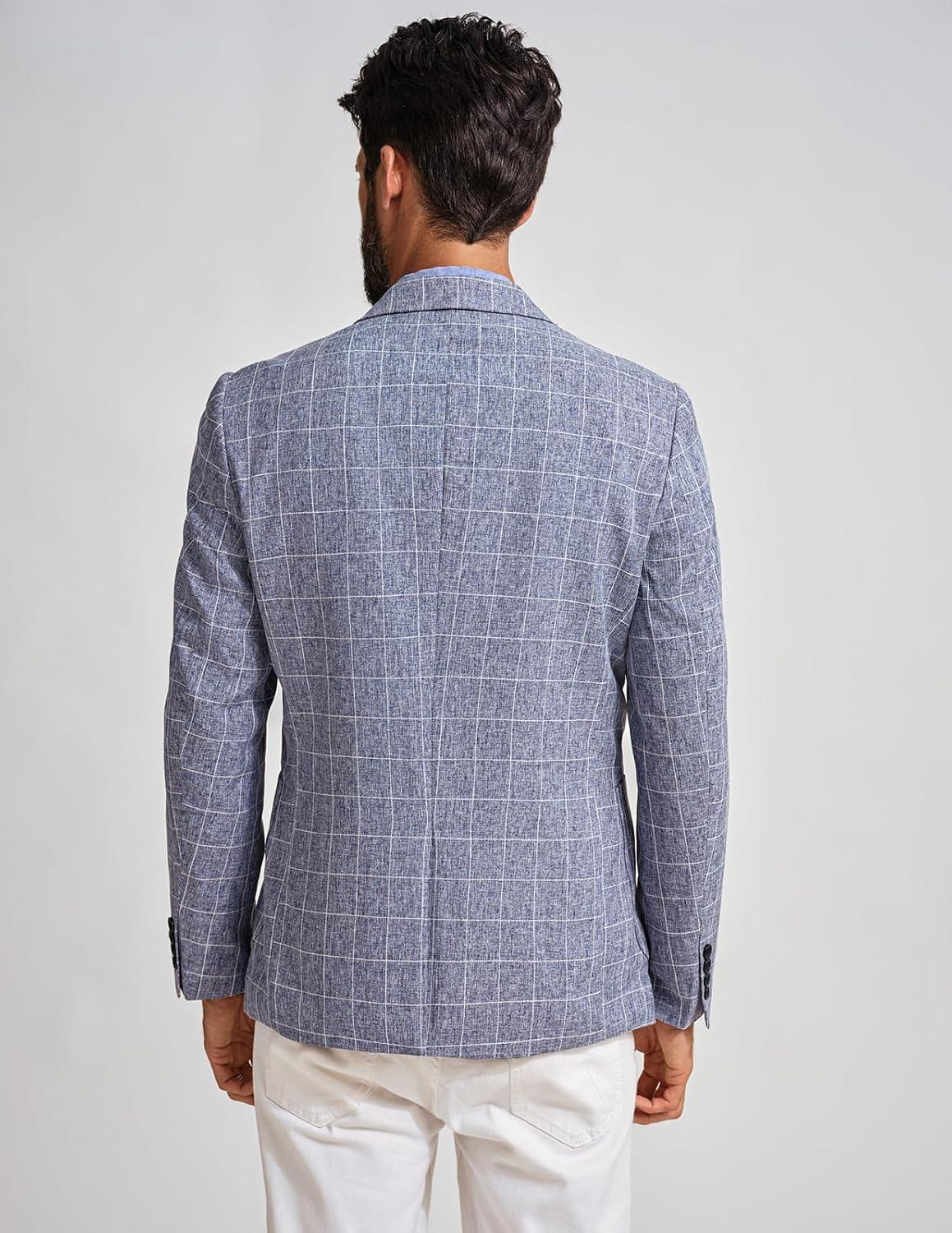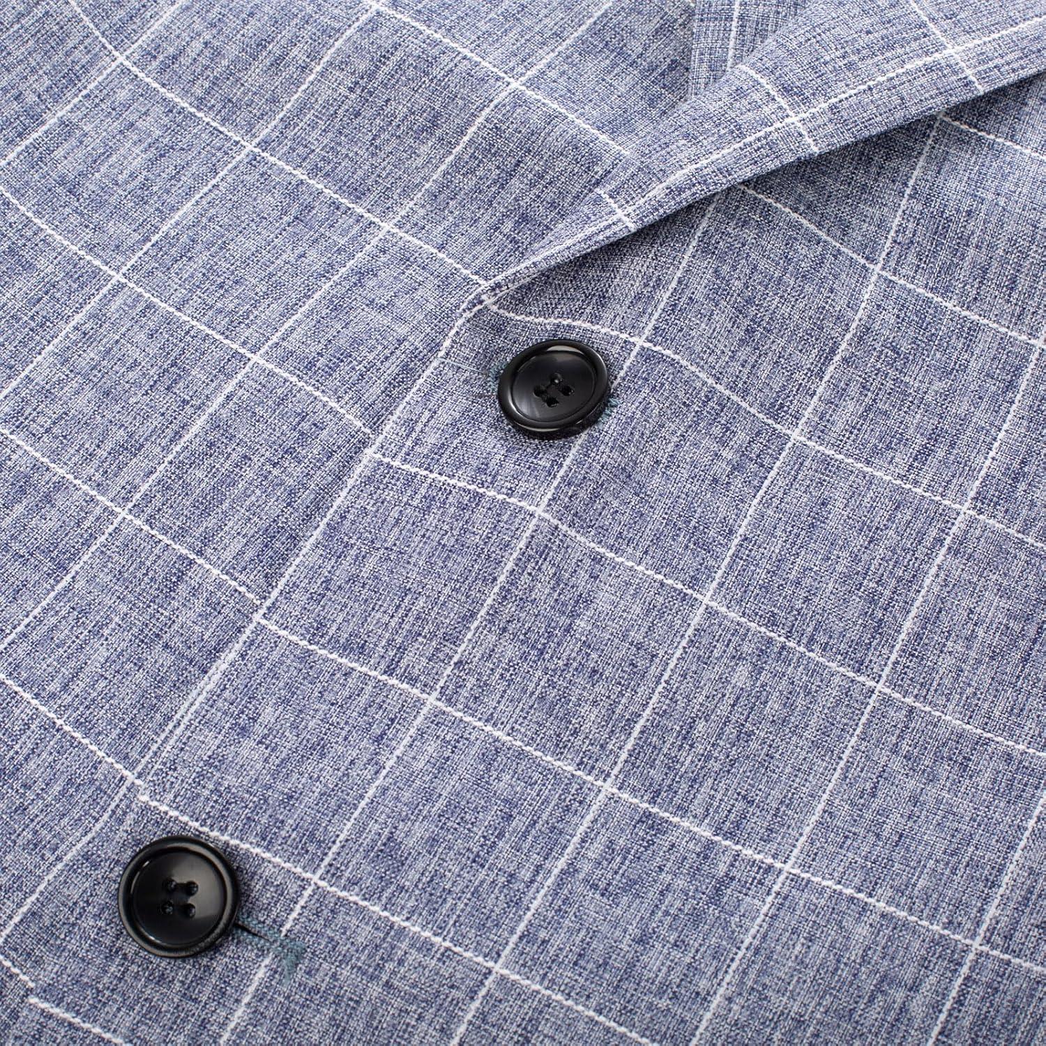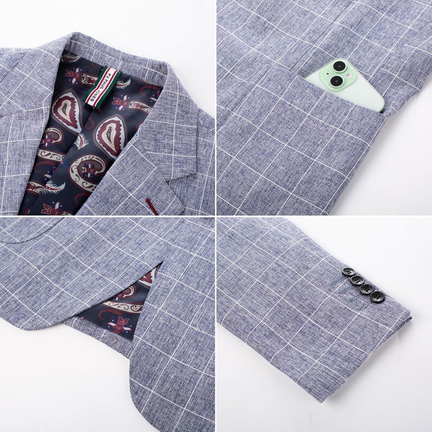 PJ PAUL JONES Mens Casual Sport Coats Two Buttons Lightweight Business Sport Blazer(Plaid- Grey Blue)