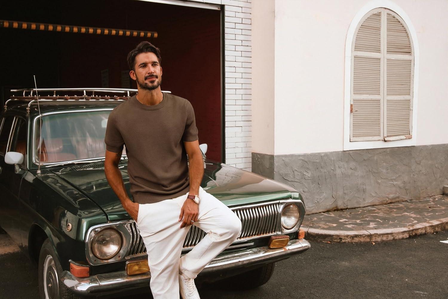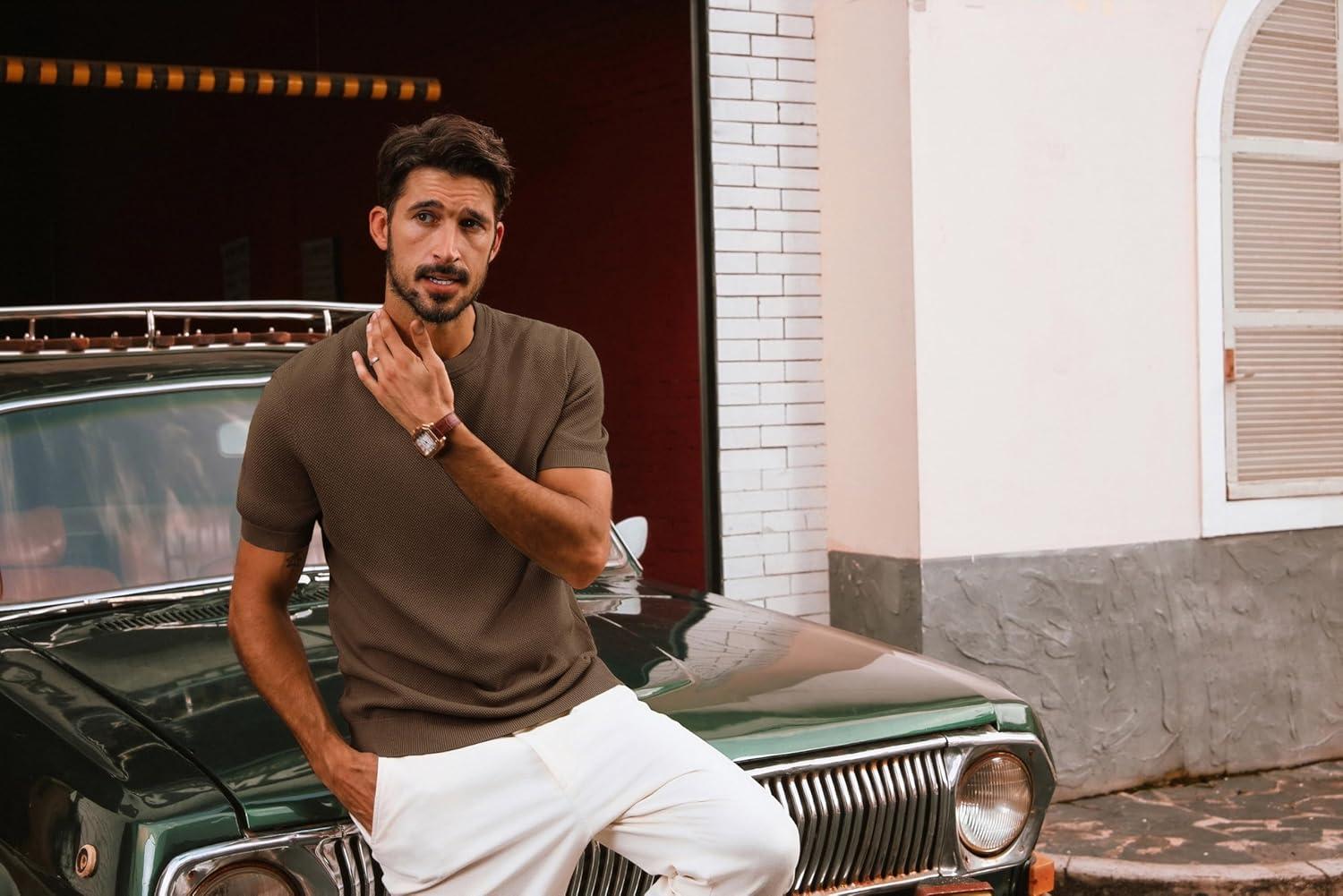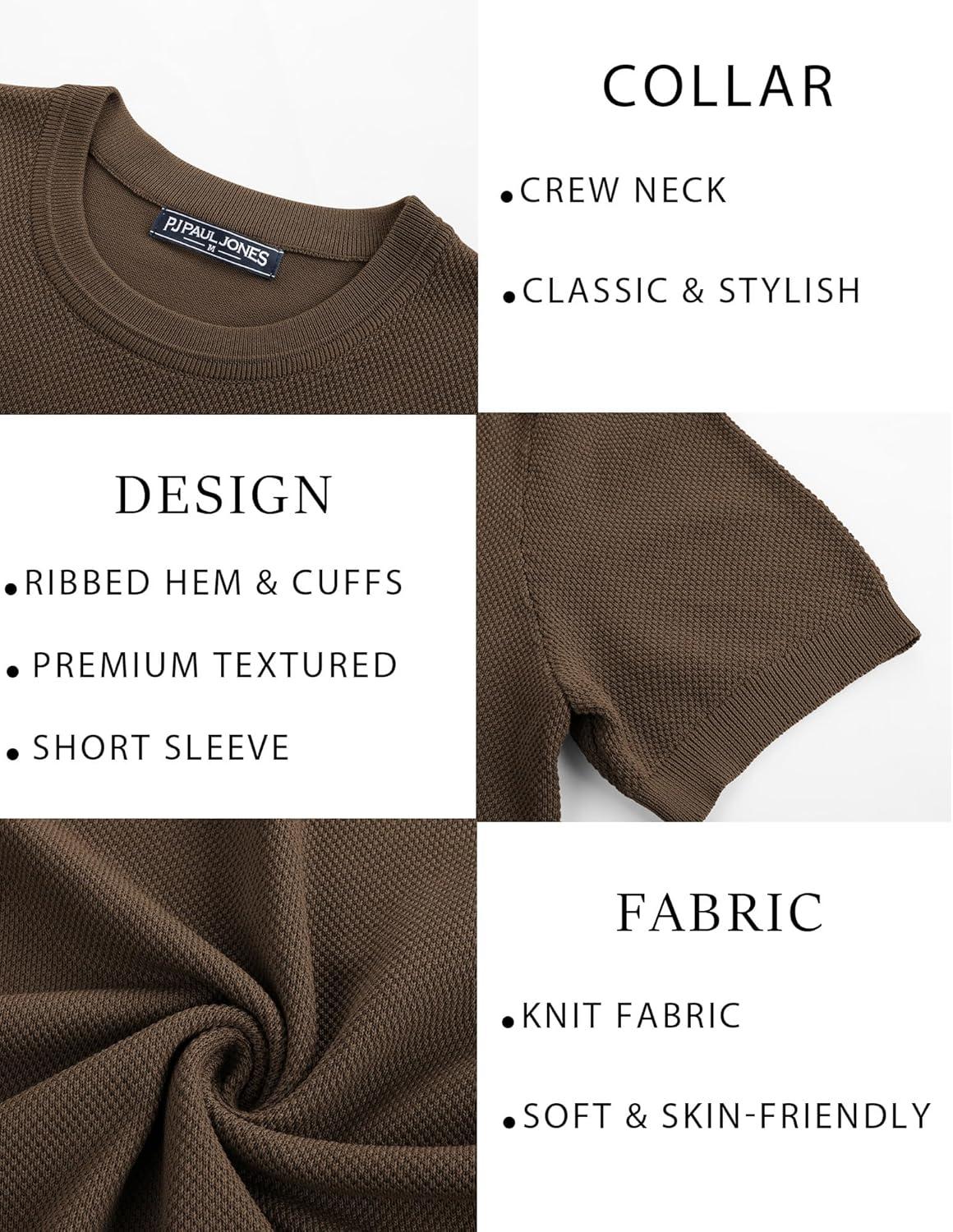PJ PAUL JONES Mens Casual T-Shirts Classic Short Sleeve Knit Tees Crewneck Solid Tee Shirts(Coffee)