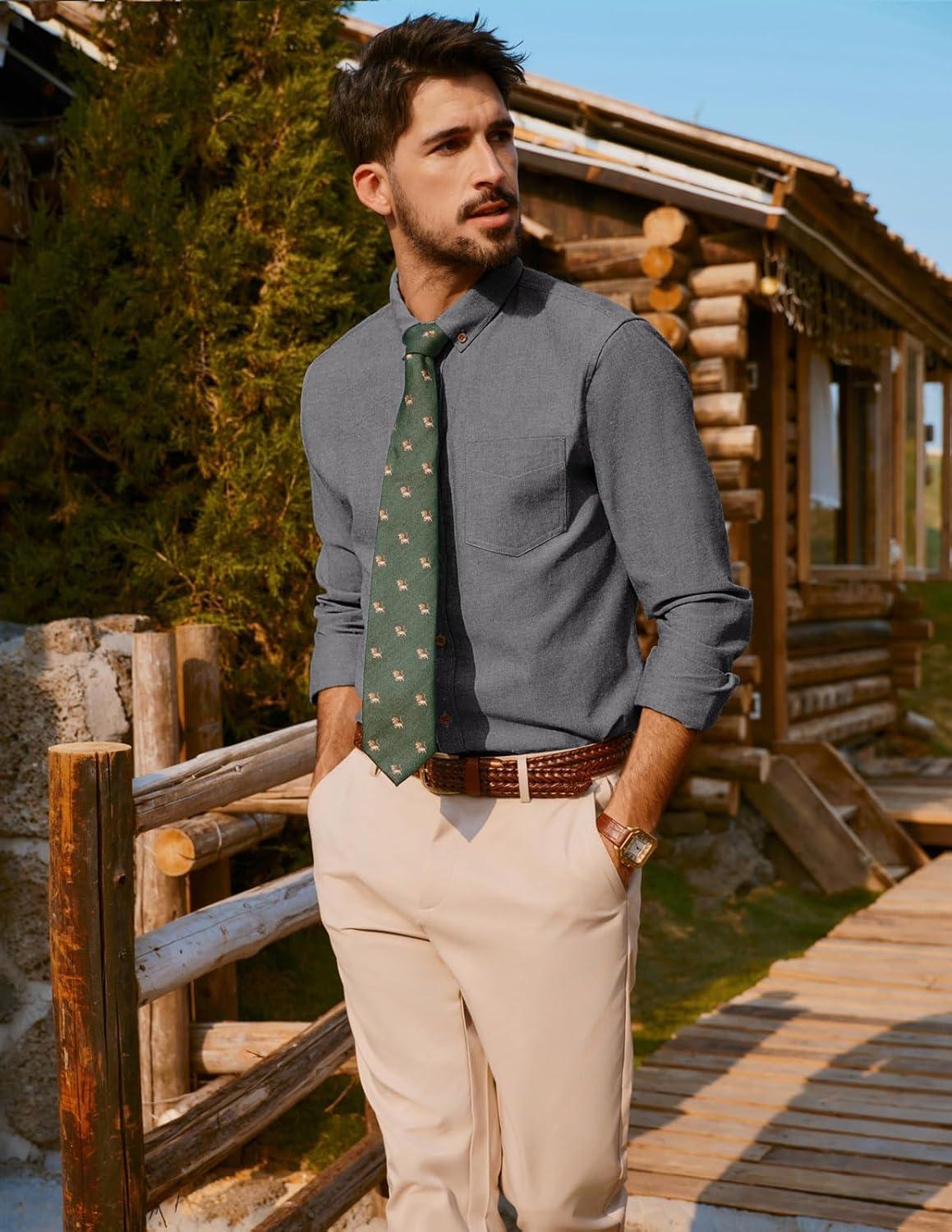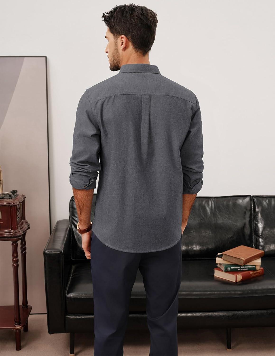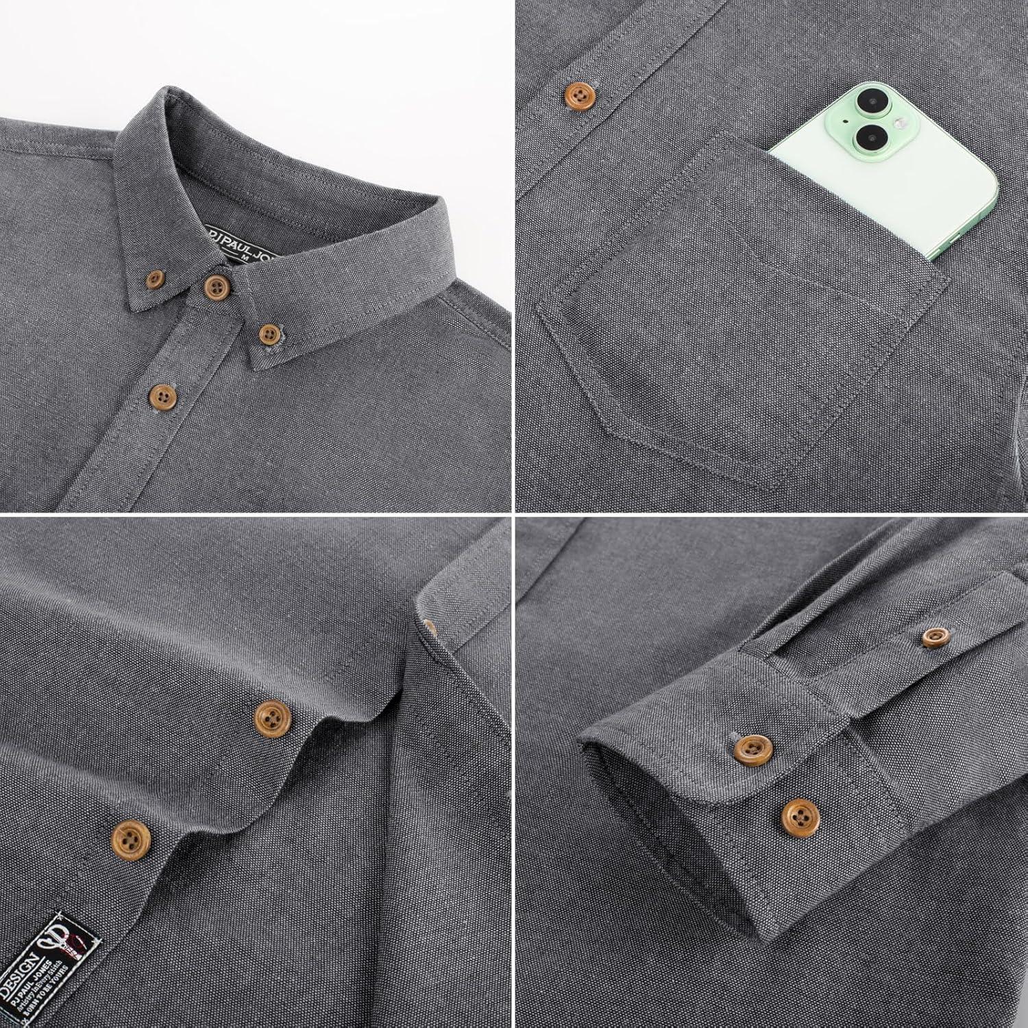 PJ PAUL JONES Mens Classic Fit Linen-Cotton Shirt Button Down Long Sleeve Casual Business Shirts(Black)