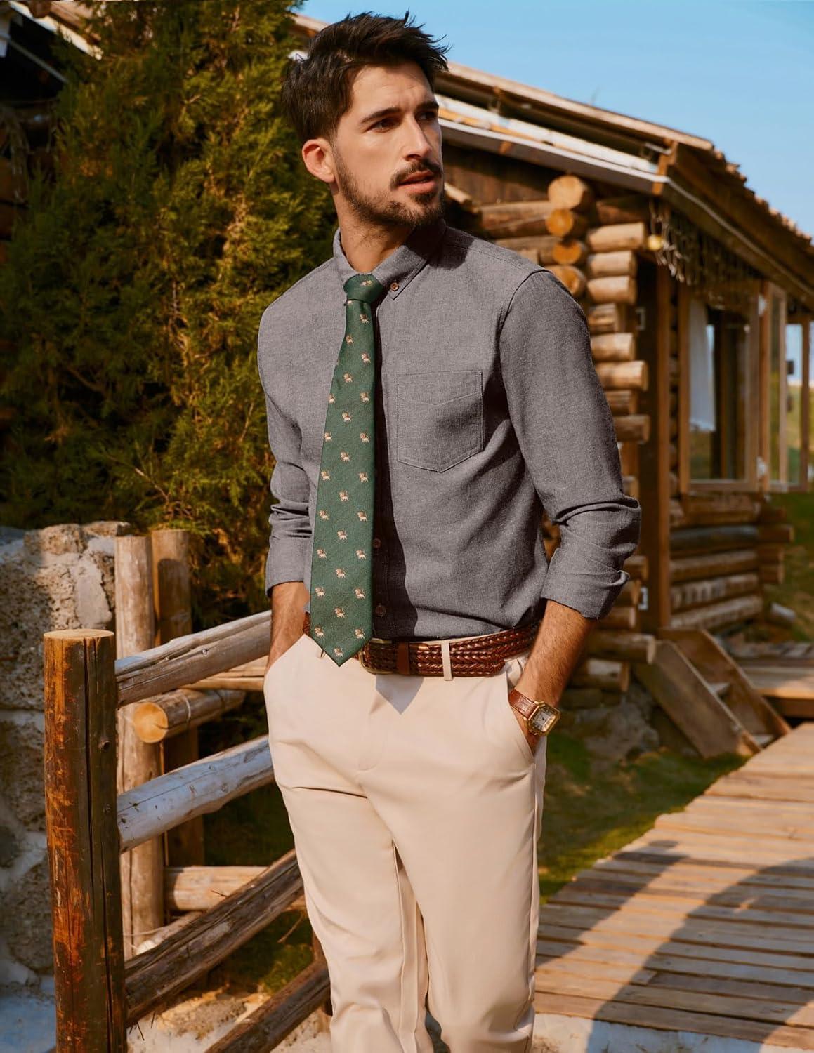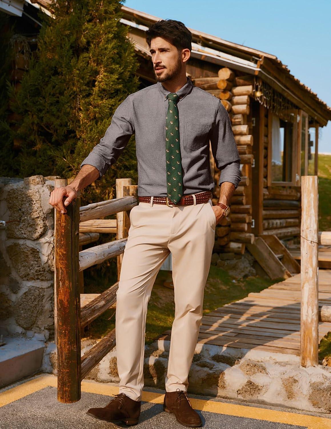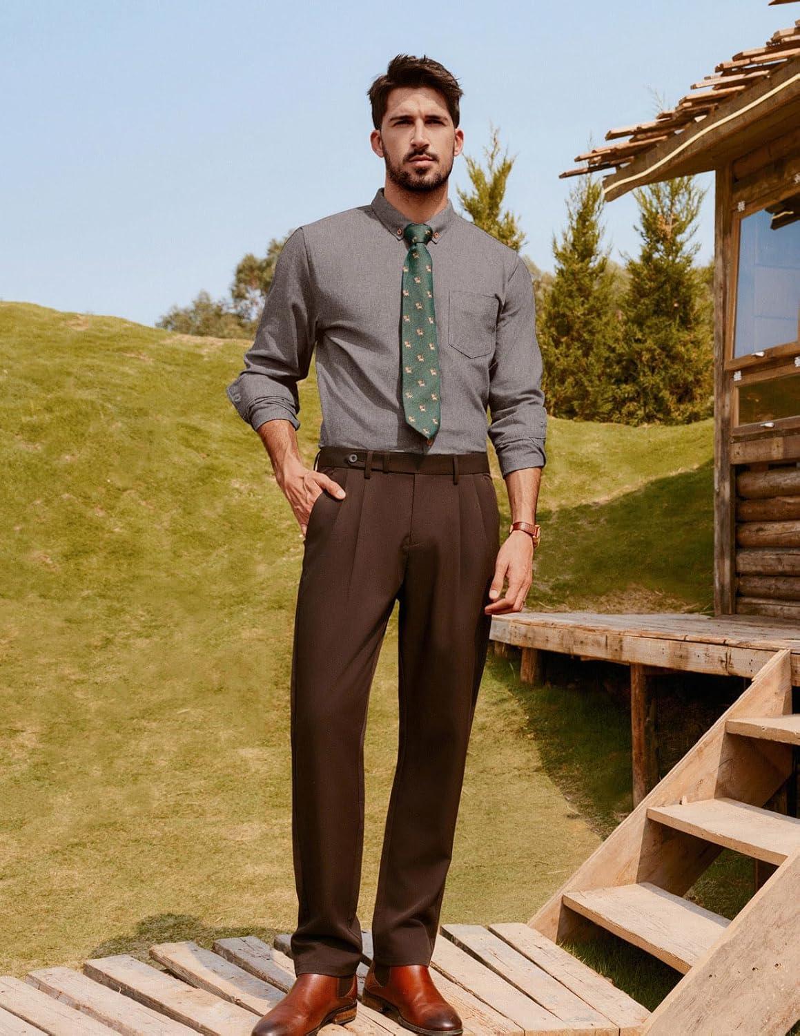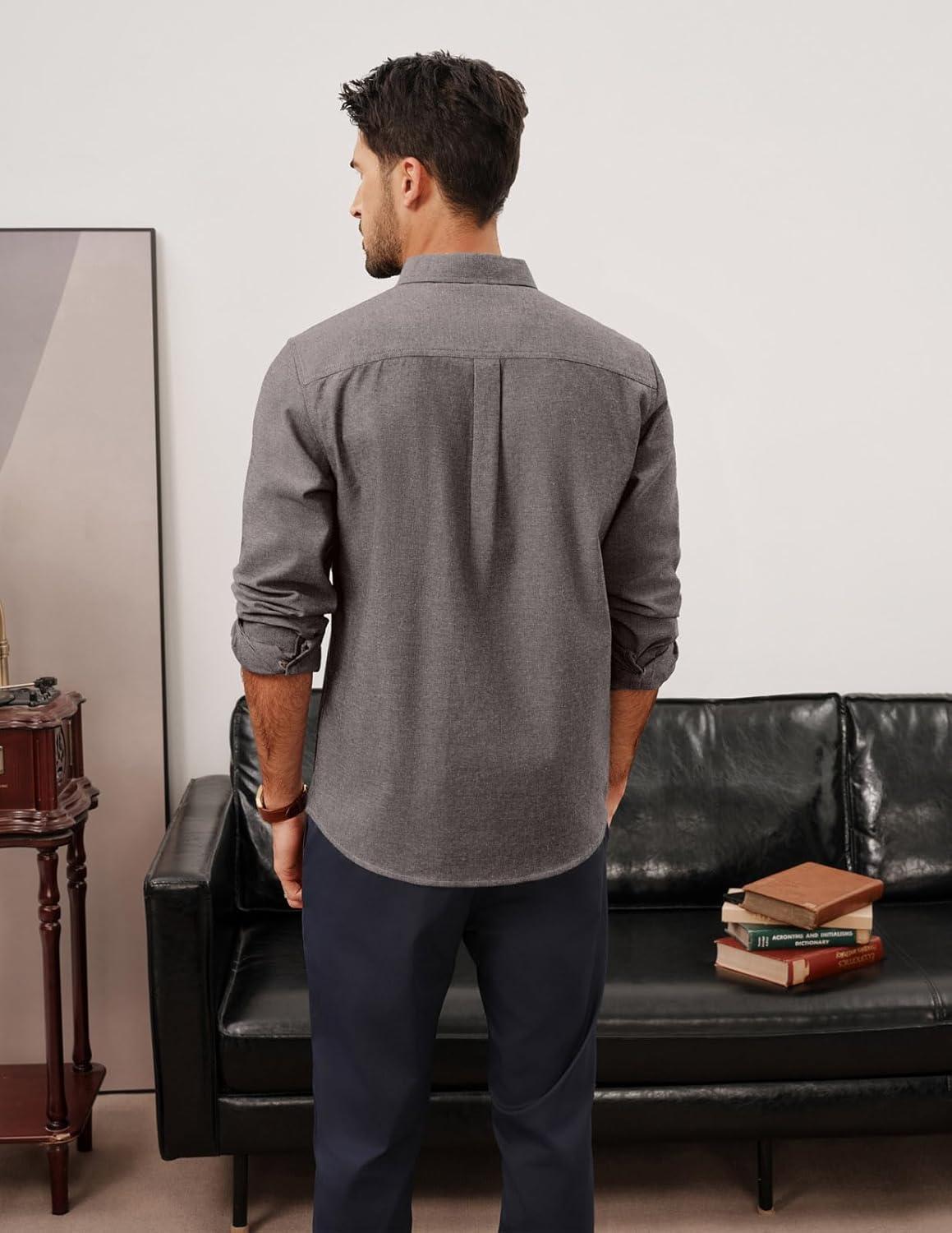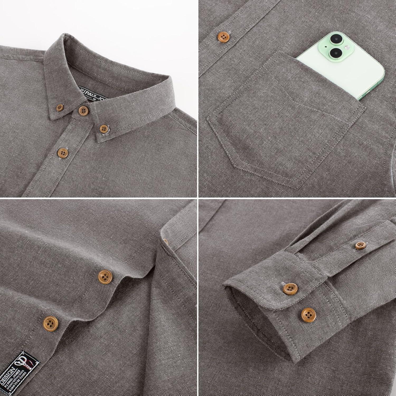 PJ PAUL JONES Mens Classic Fit Linen-Cotton Shirt Button Down Long Sleeve Casual Business Shirts(Coffee)