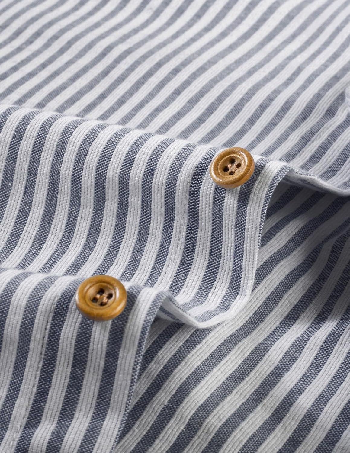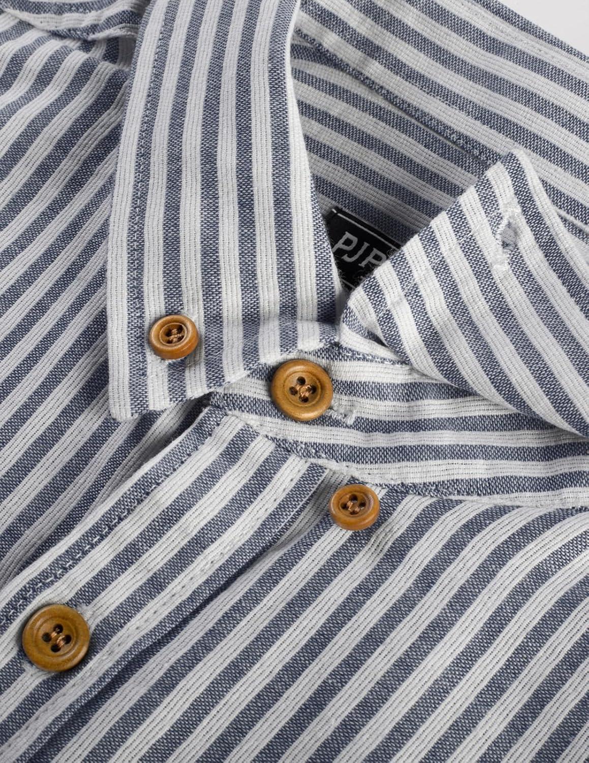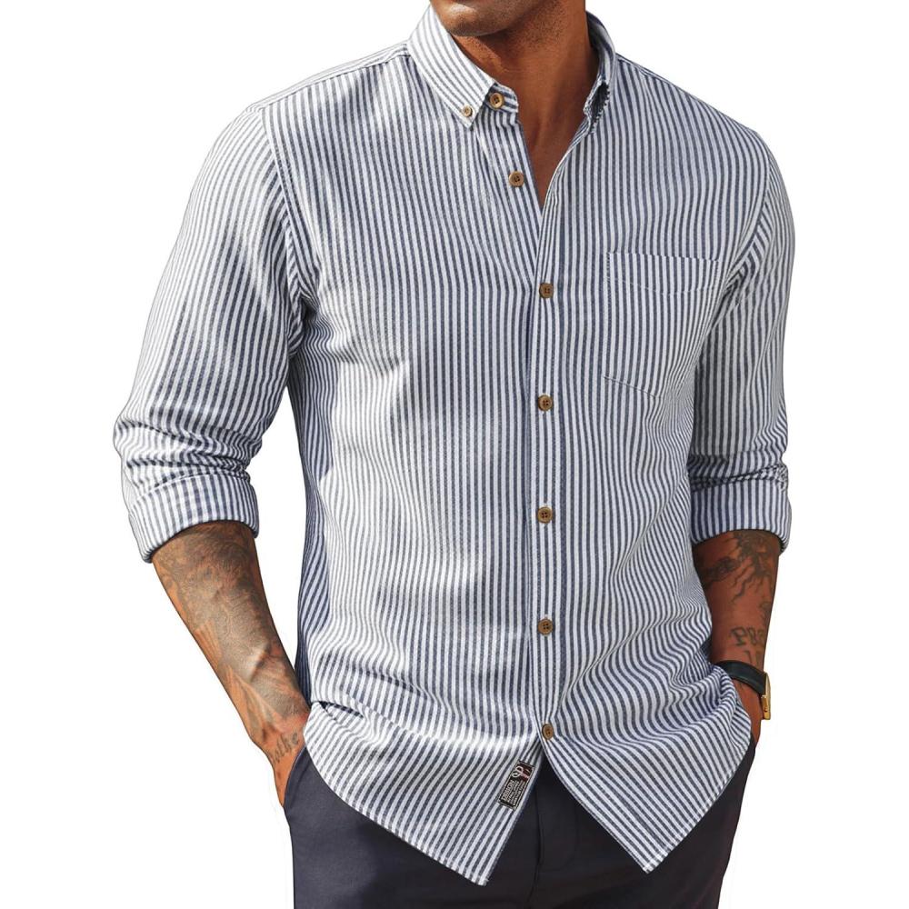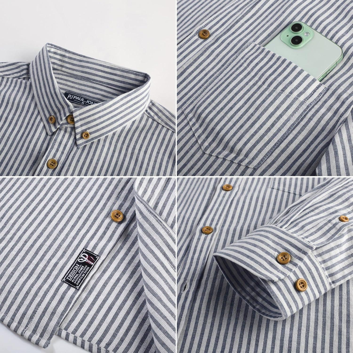 PJ PAUL JONES Mens Classic Fit Linen-Cotton Shirt Button Down Long Sleeve Casual Business Shirts(Dark Blue Stripes)