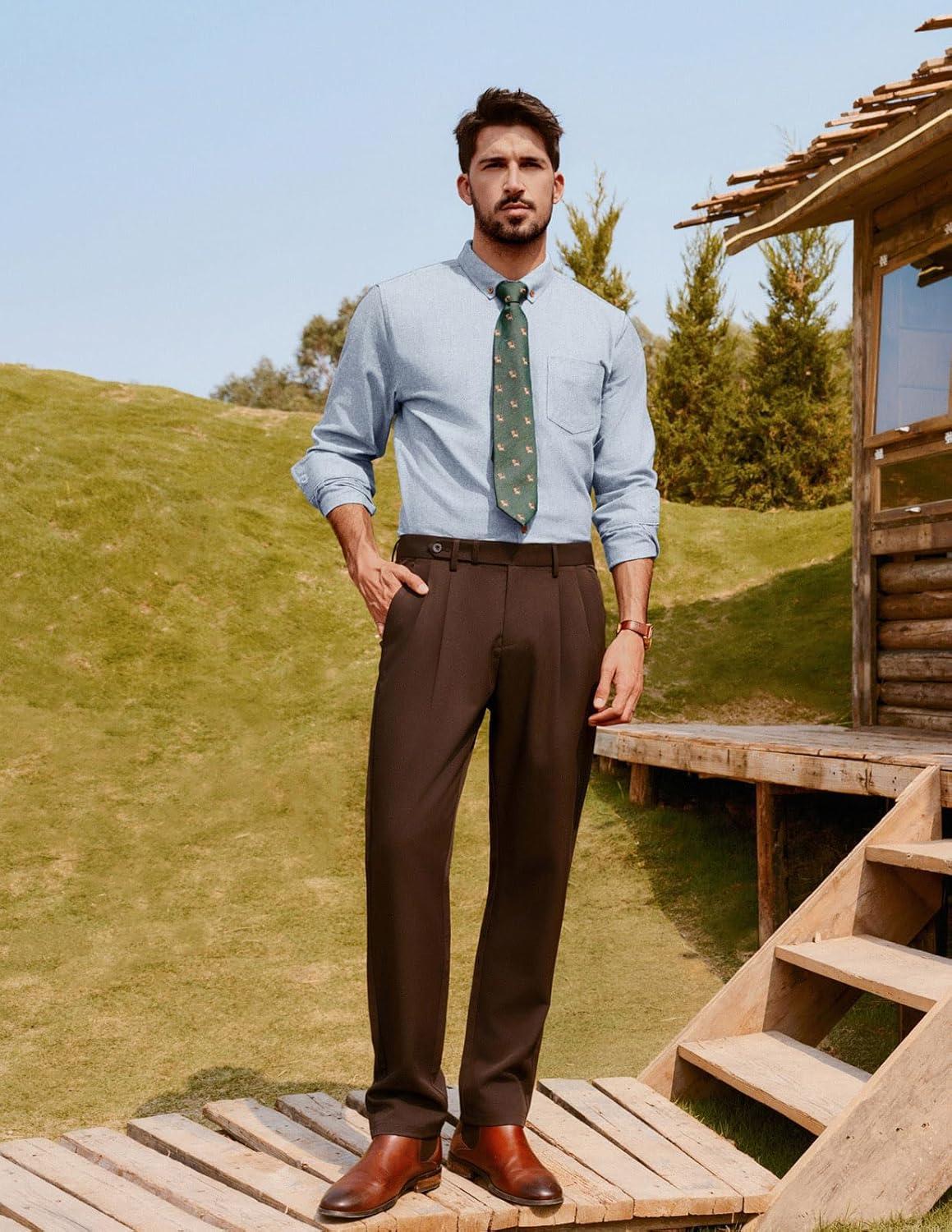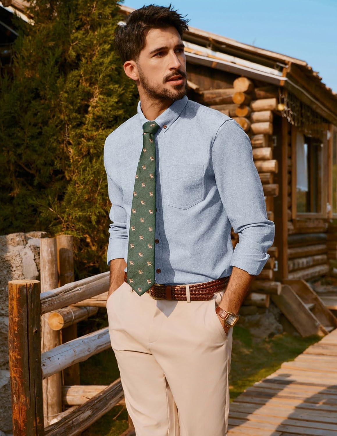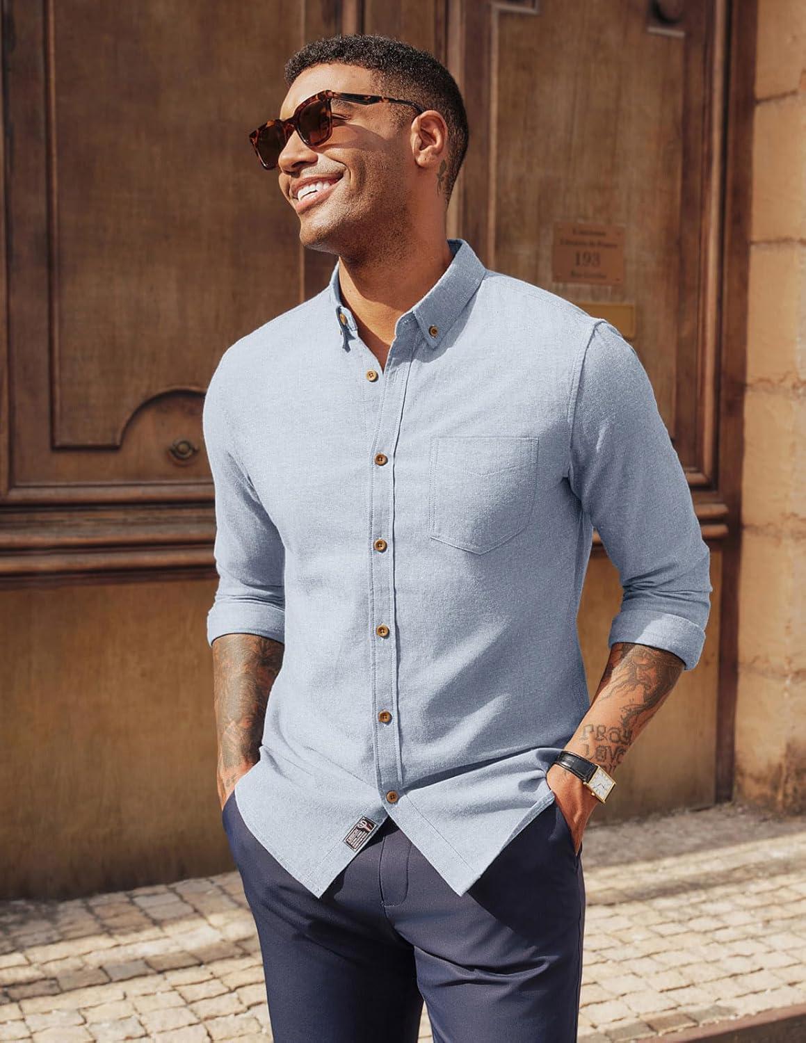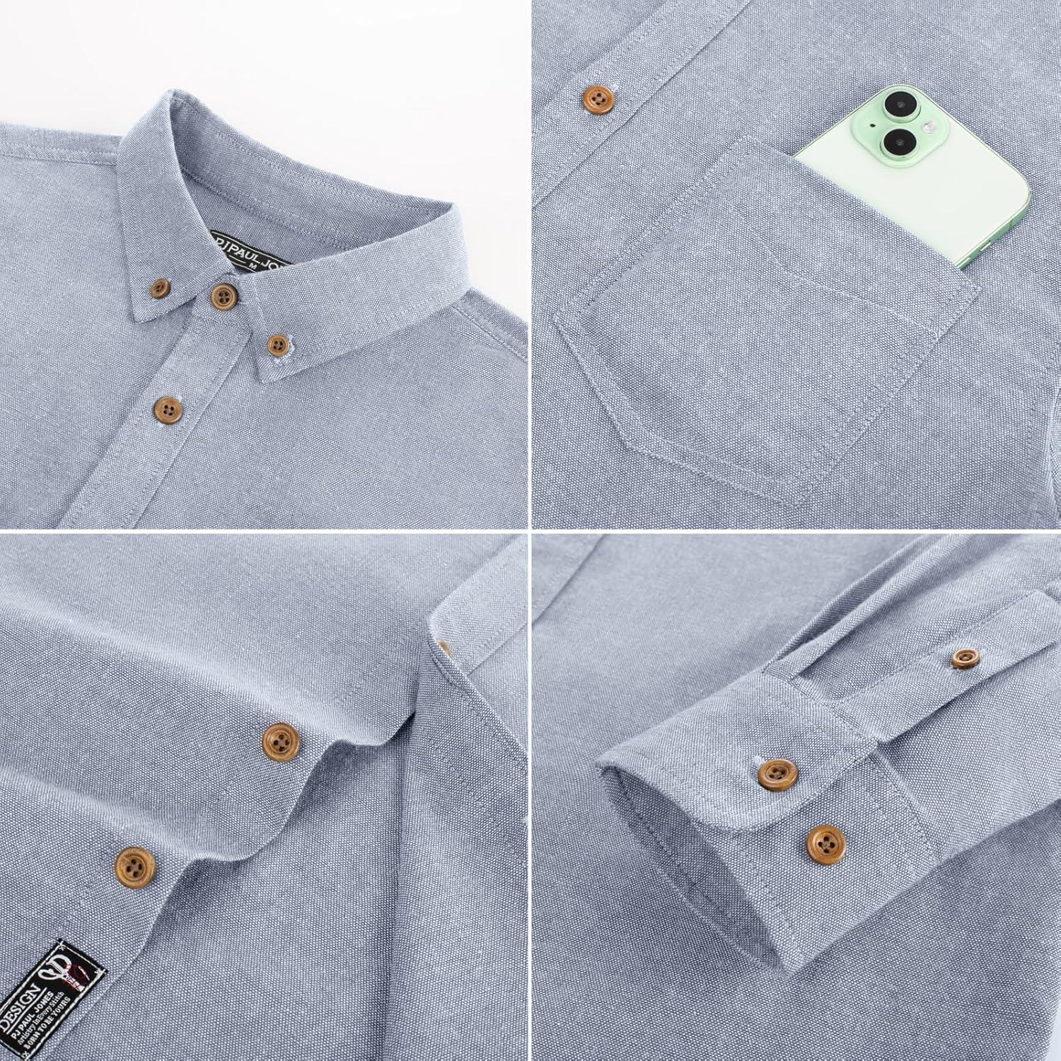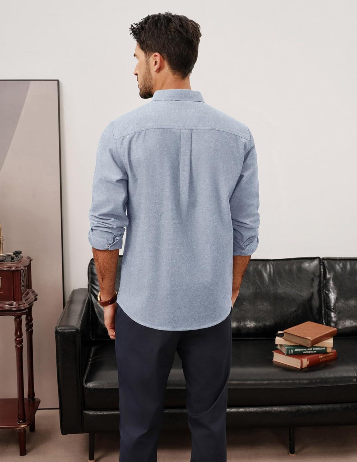 PJ PAUL JONES Mens Classic Fit Linen-Cotton Shirt Button Down Long Sleeve Casual Business Shirts(Light Blue)