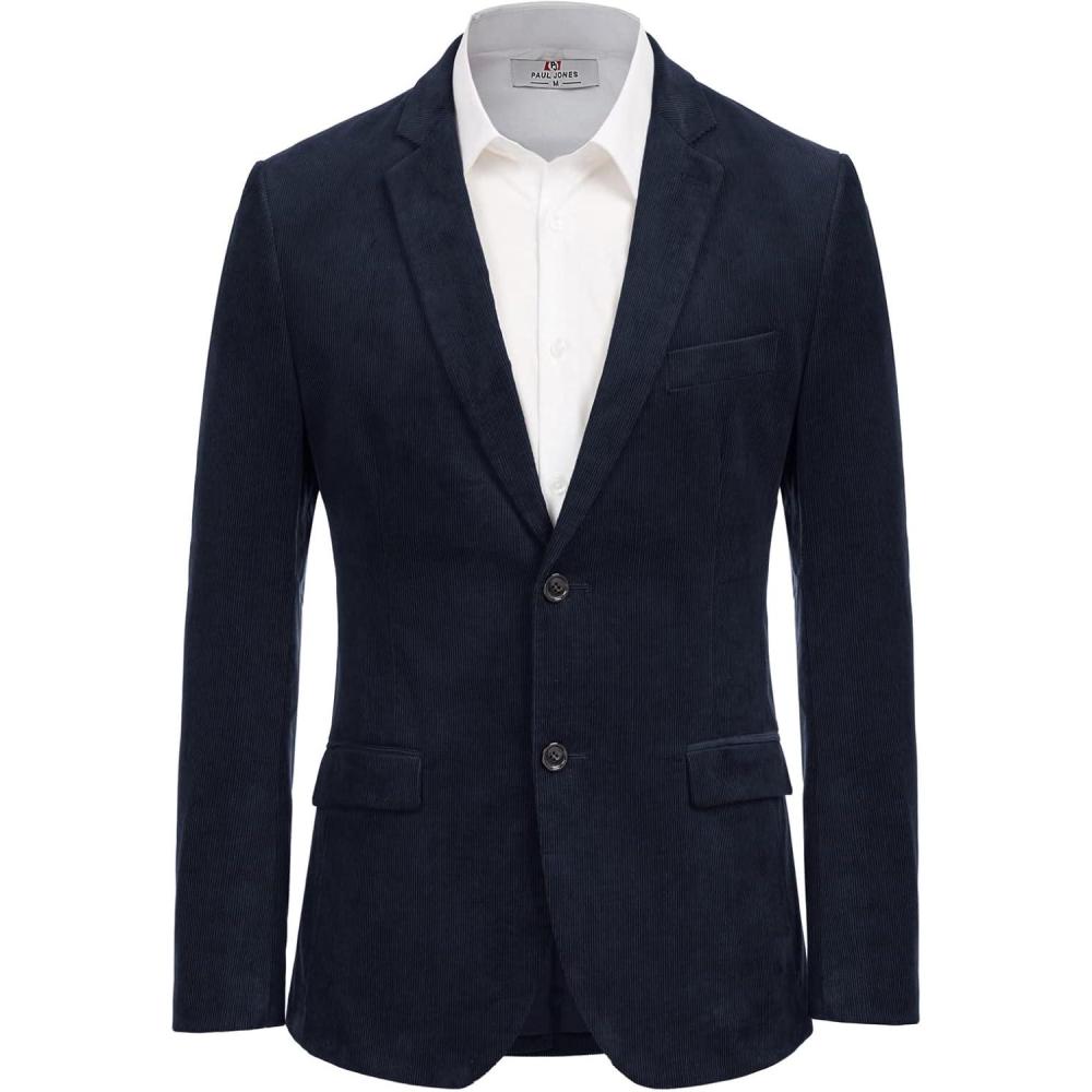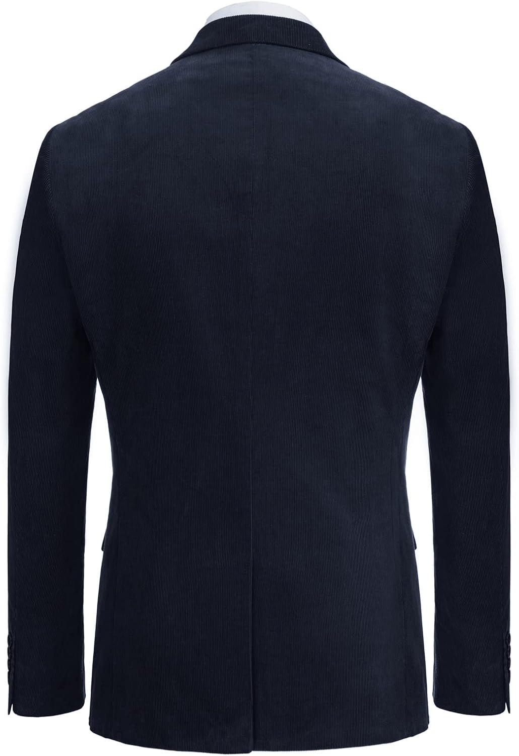 PJ PAUL JONES Mens Corduroy Blazer Jackets Slim Fit Two Button Casual Sports Coat(Dark Blue)