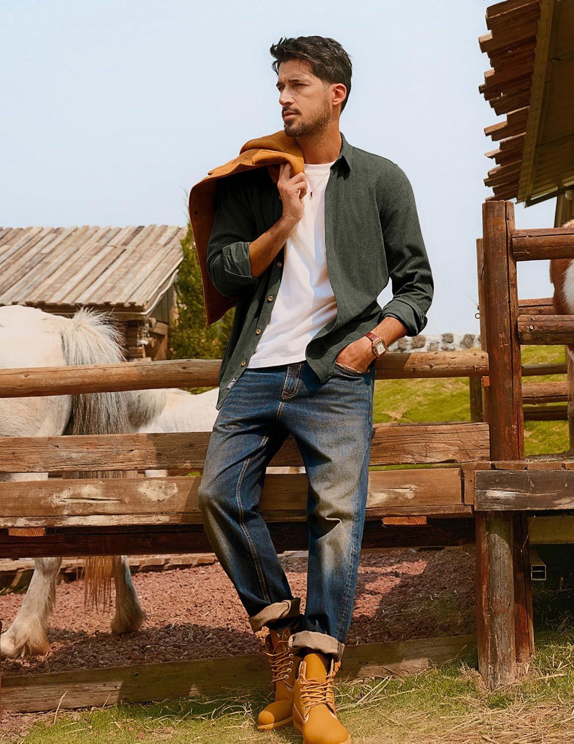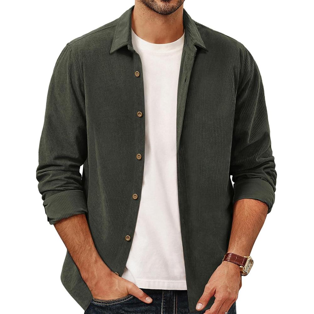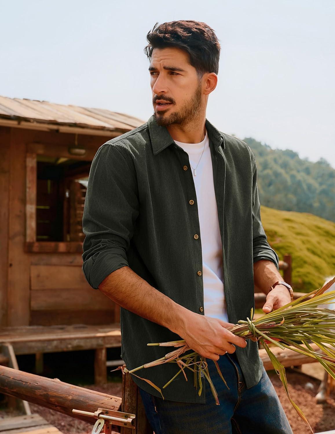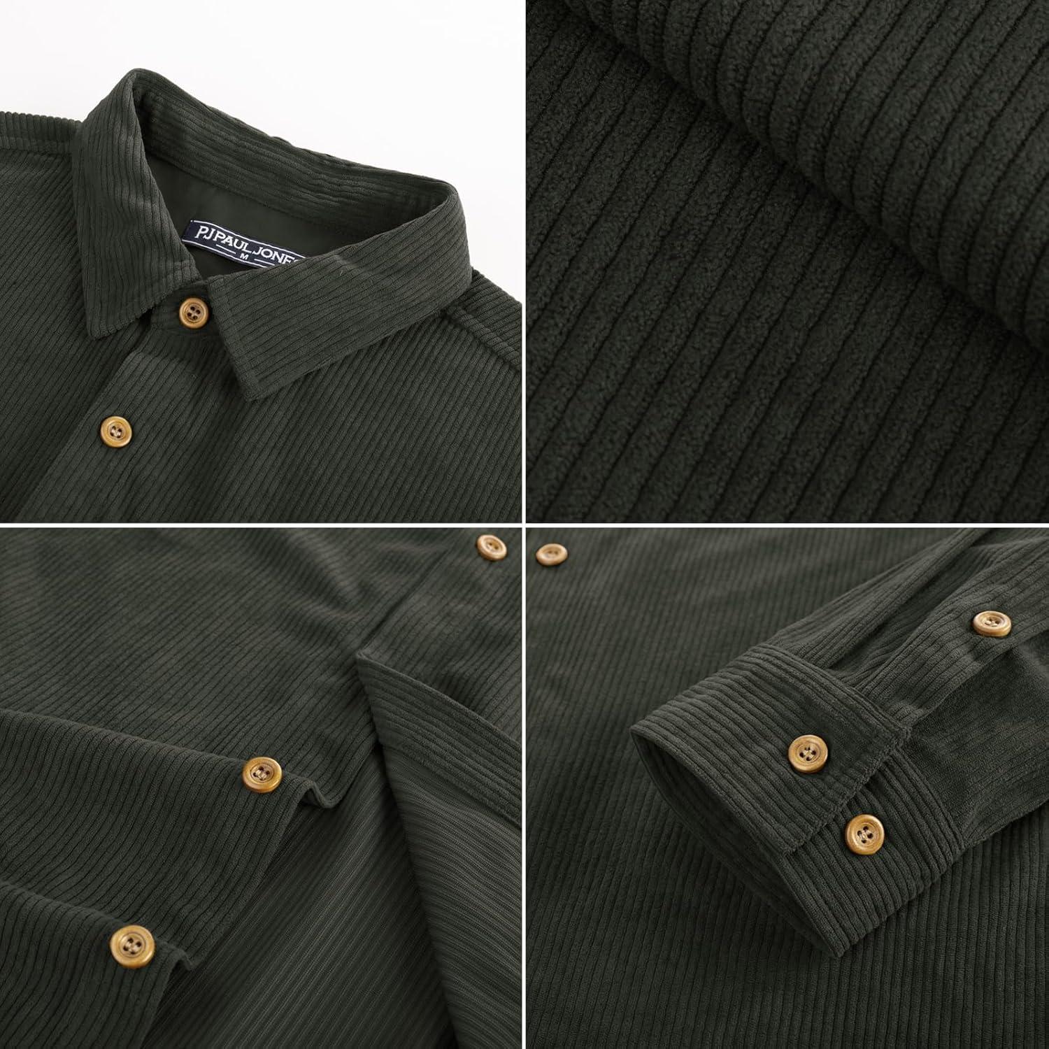 PJ PAUL JONES Men’s Corduroy Shirts Casual Button Down Shirt Jacket Lightweight Shacket(Army Green)