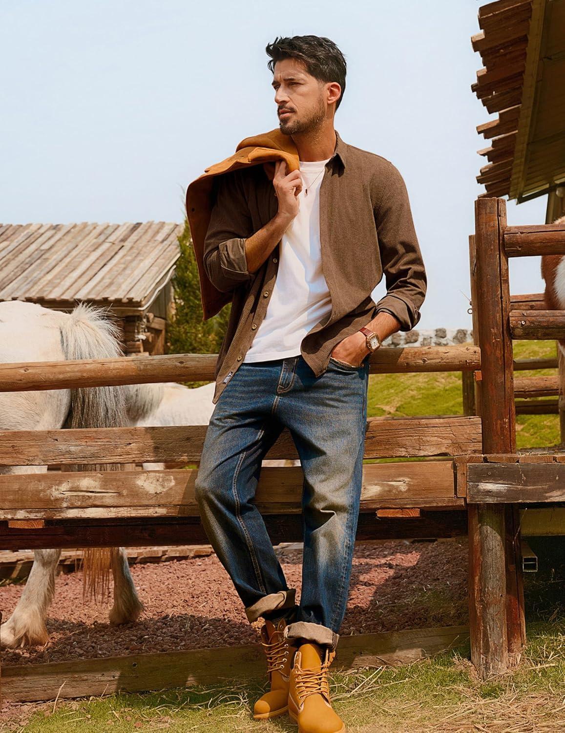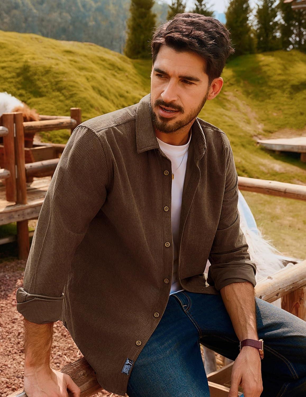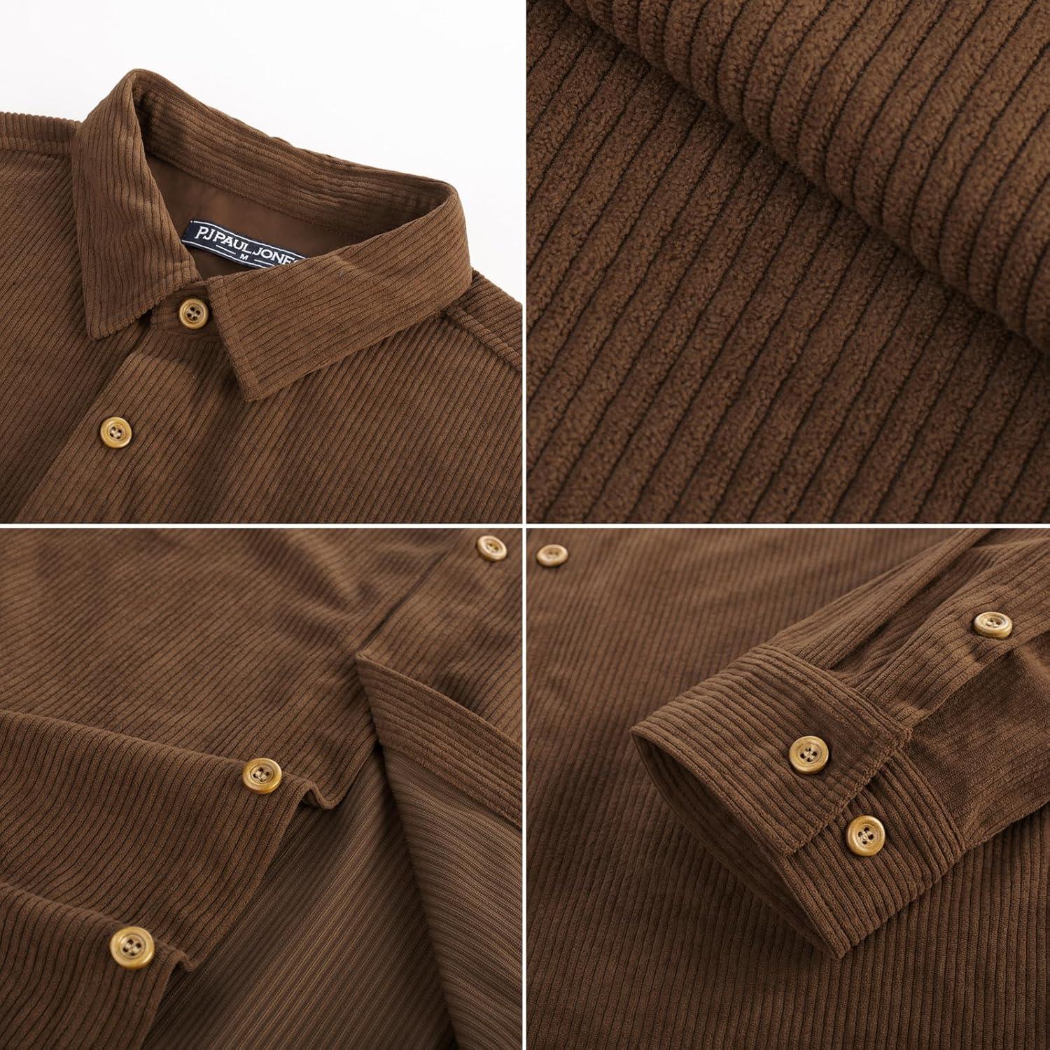 PJ PAUL JONES Men’s Corduroy Shirts Casual Button Down Shirt Jacket Lightweight Shacket(Brown)