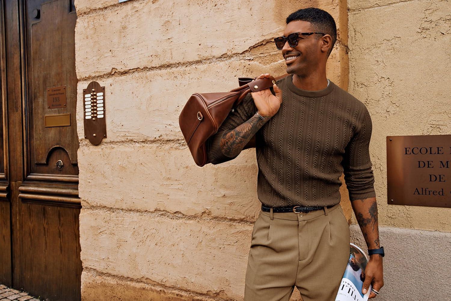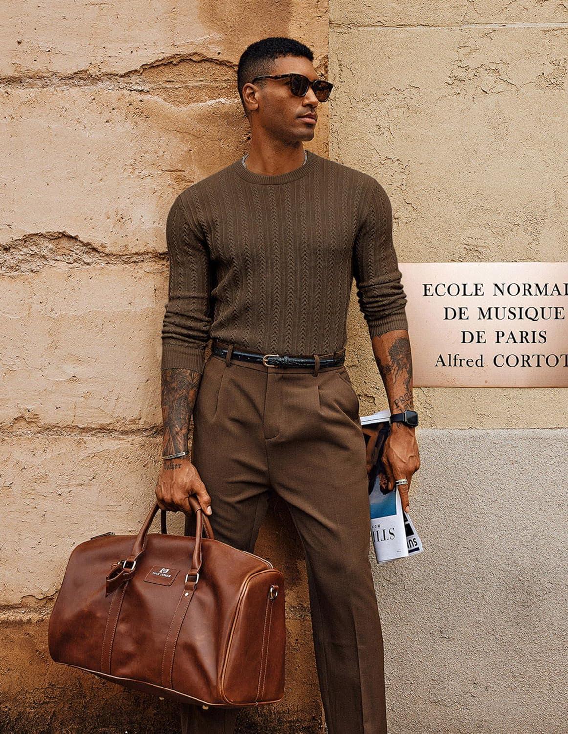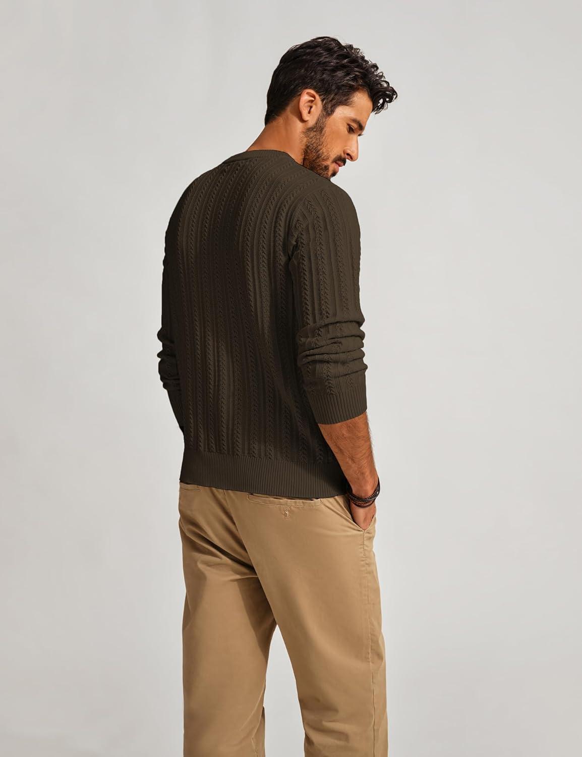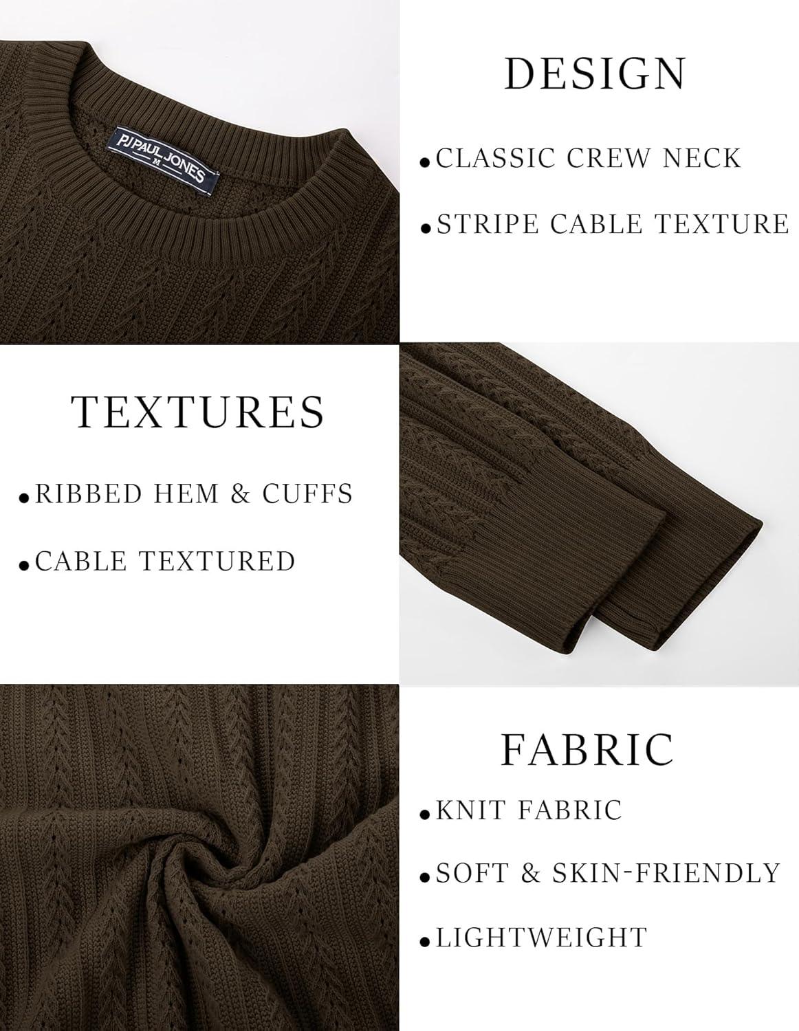 PJ PAUL JONES Mens Crew Neck Sweater Lightweight Cable Knitted Pullover Sweaters(Coffee)