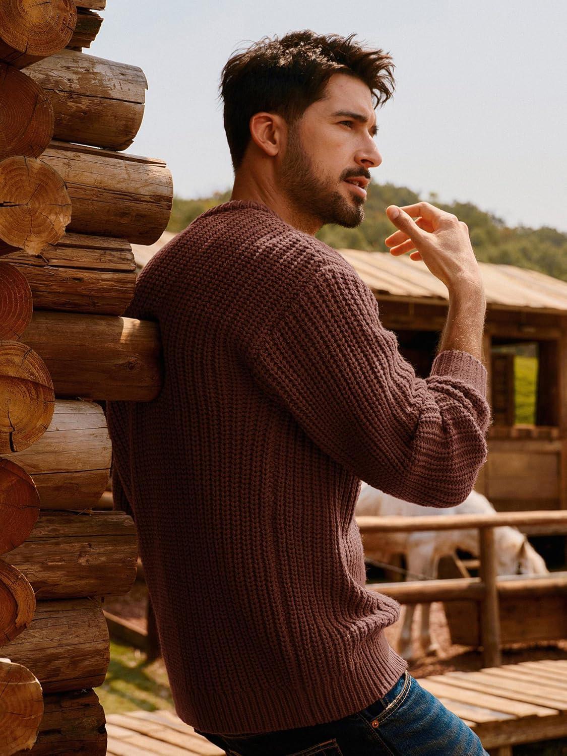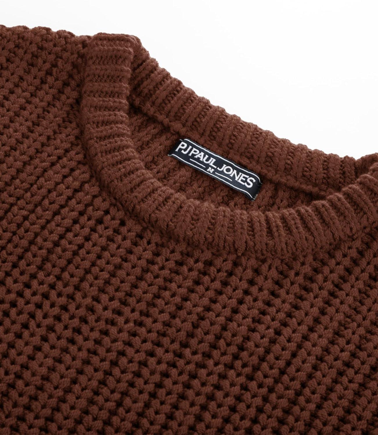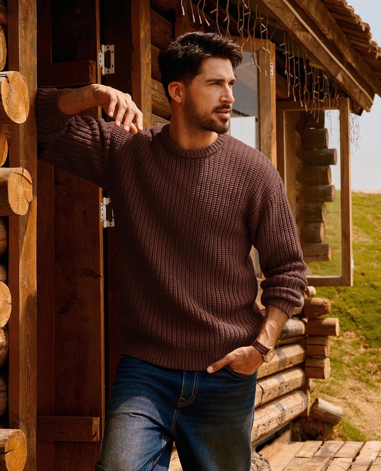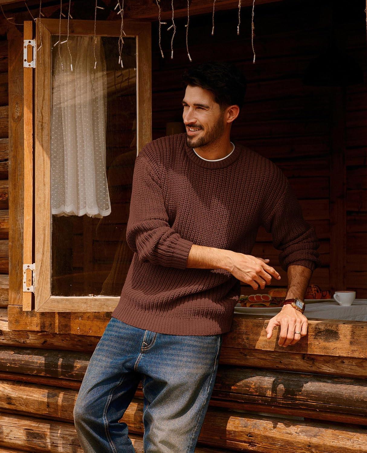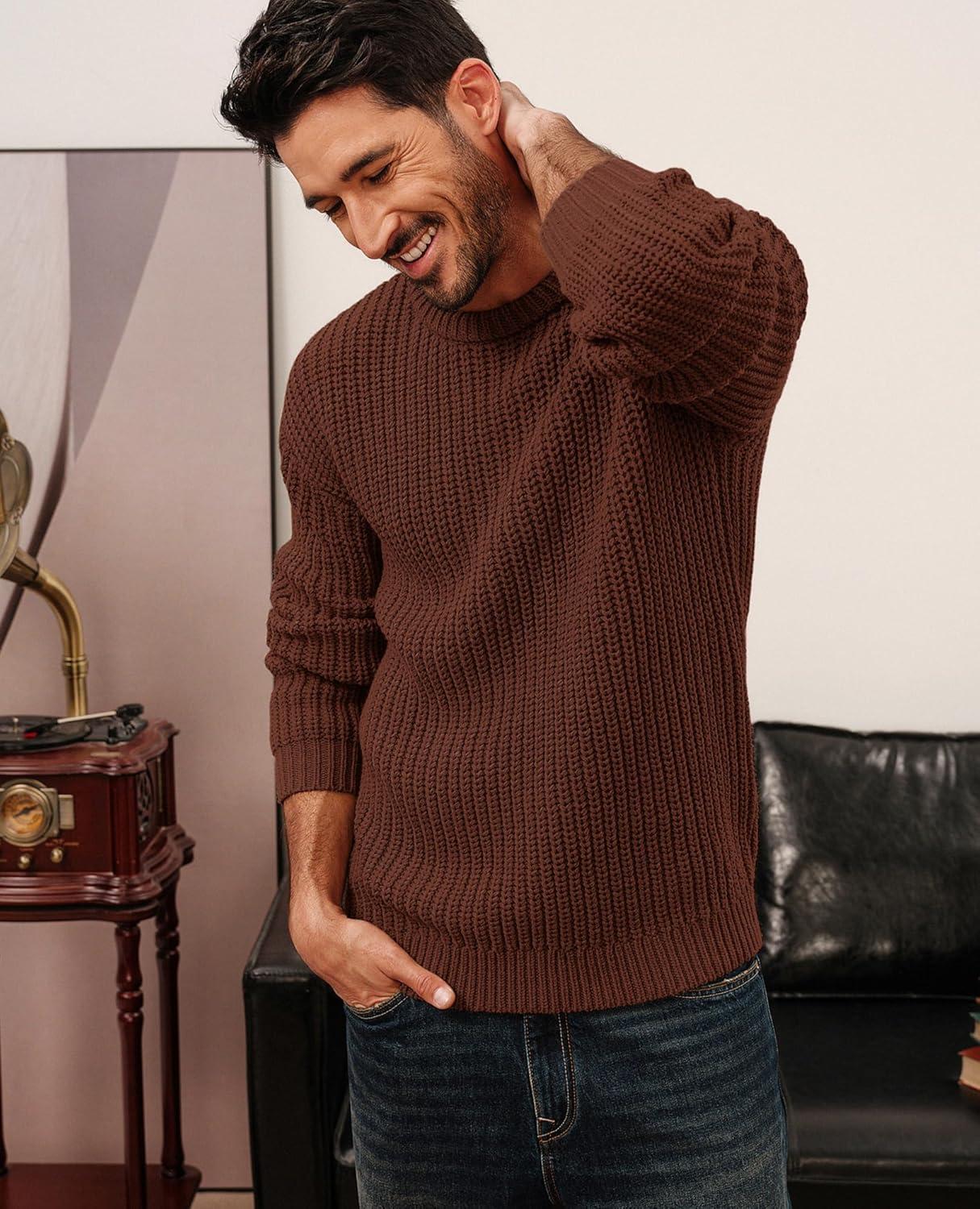 PJ PAUL JONES Men‘s Crewneck Sweater Knitted Textured Casual Pullover for Winter(Coffee)