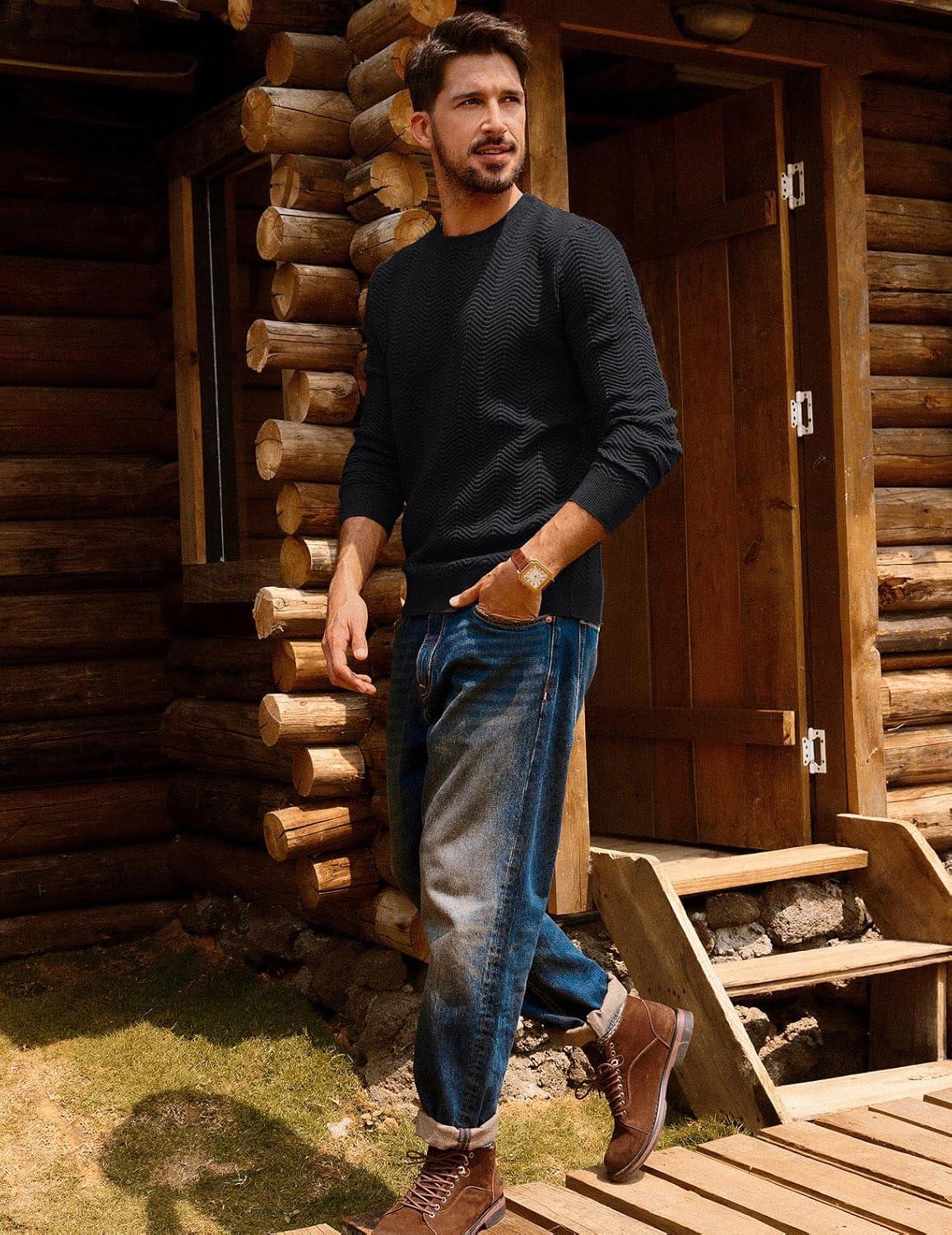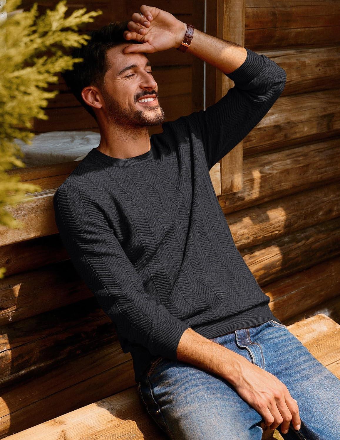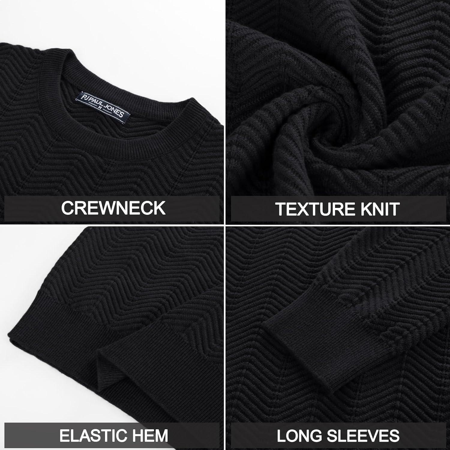 PJ PAUL JONES Mens Crewneck Sweater Lightweight Casual Long Sleeve Knit Pullover Sweaters(Black)