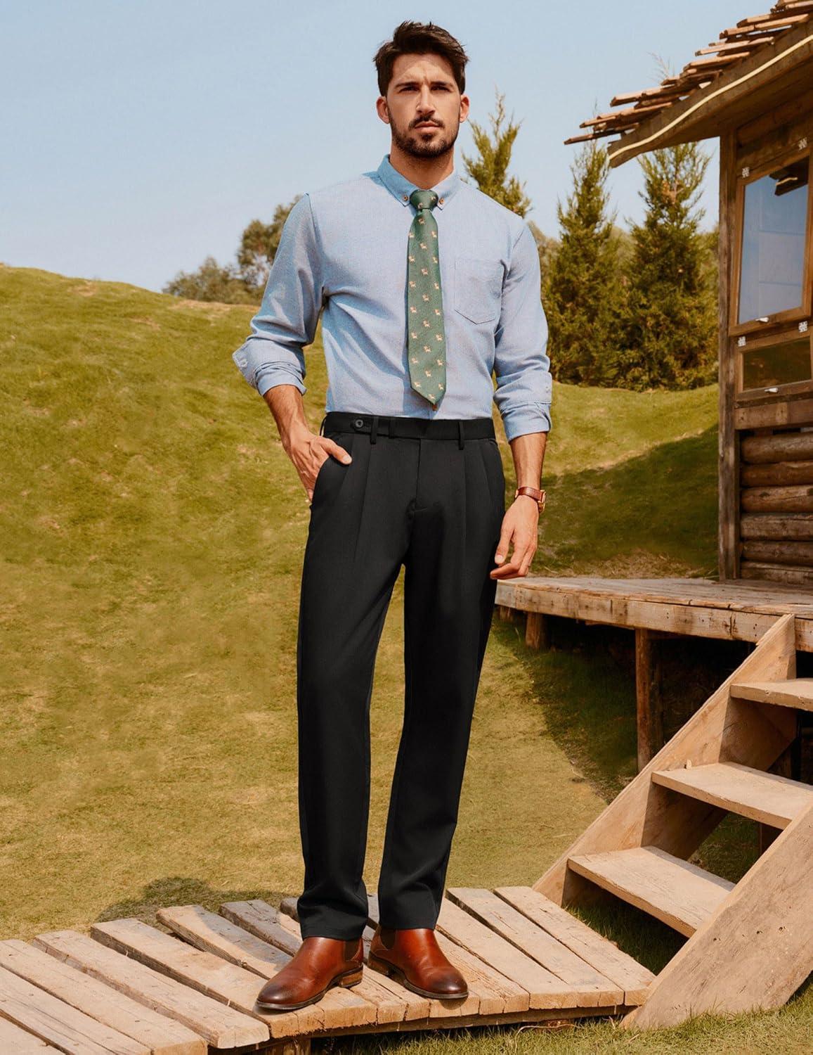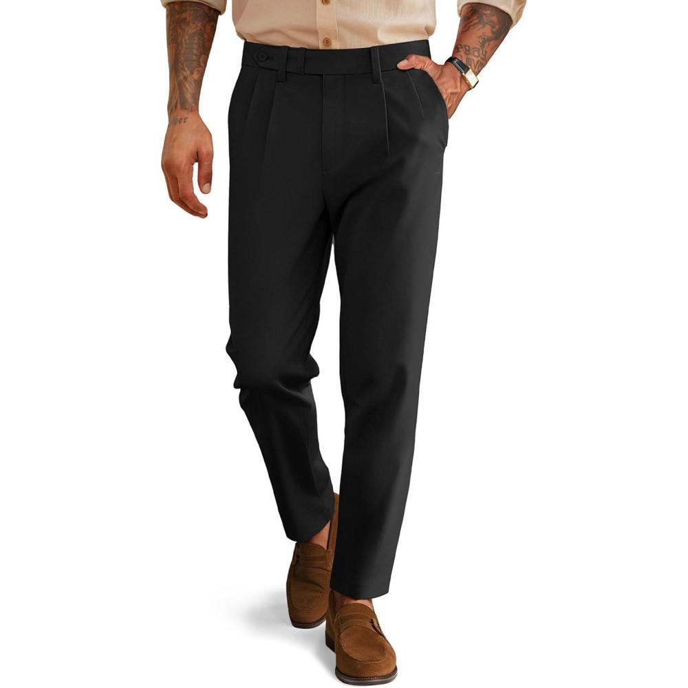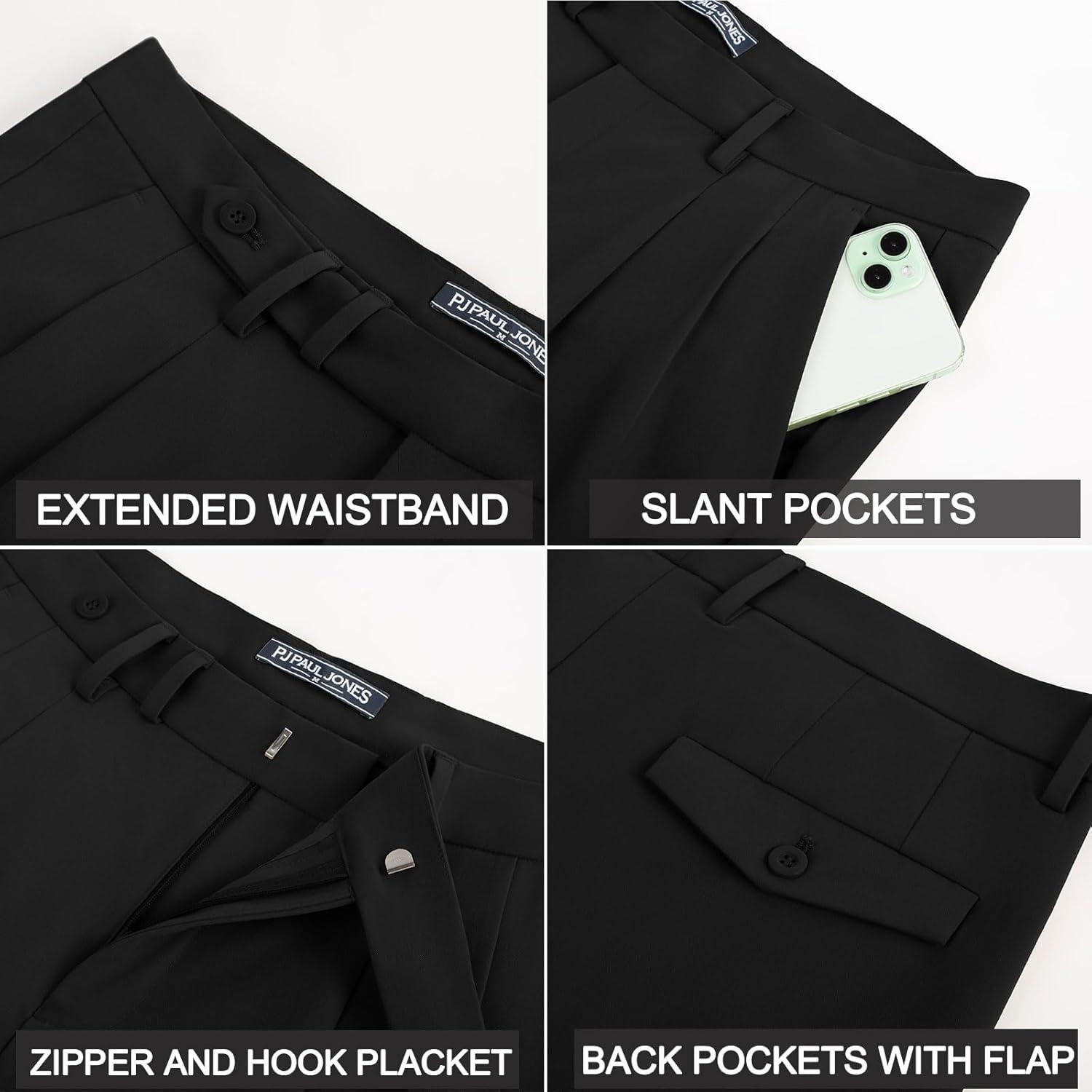 PJ PAUL JONES Mens Dress Pants Vintage Pleated Tapered Cropped Trousers Extended Waist Dress Pant Casual Slacks(Black)